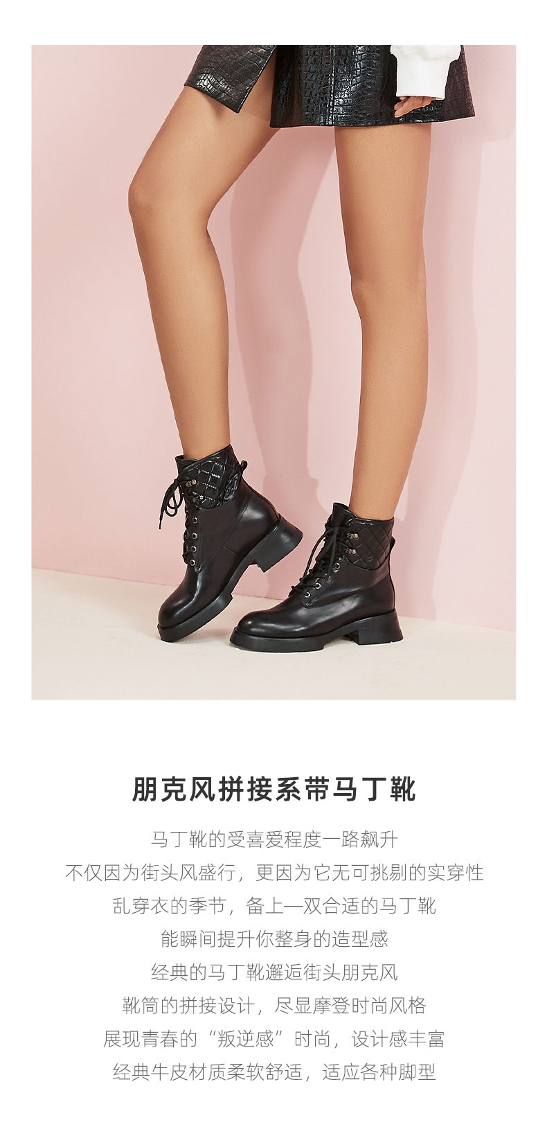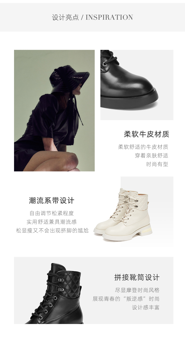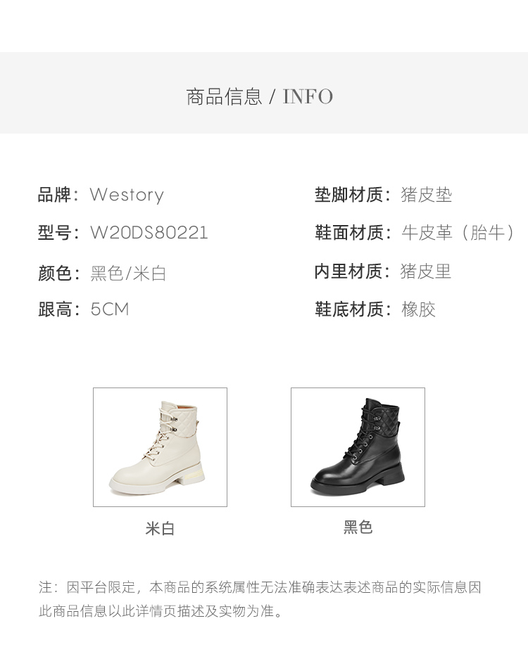 westory真皮漆皮系带增高厚底马丁靴W20DS80221