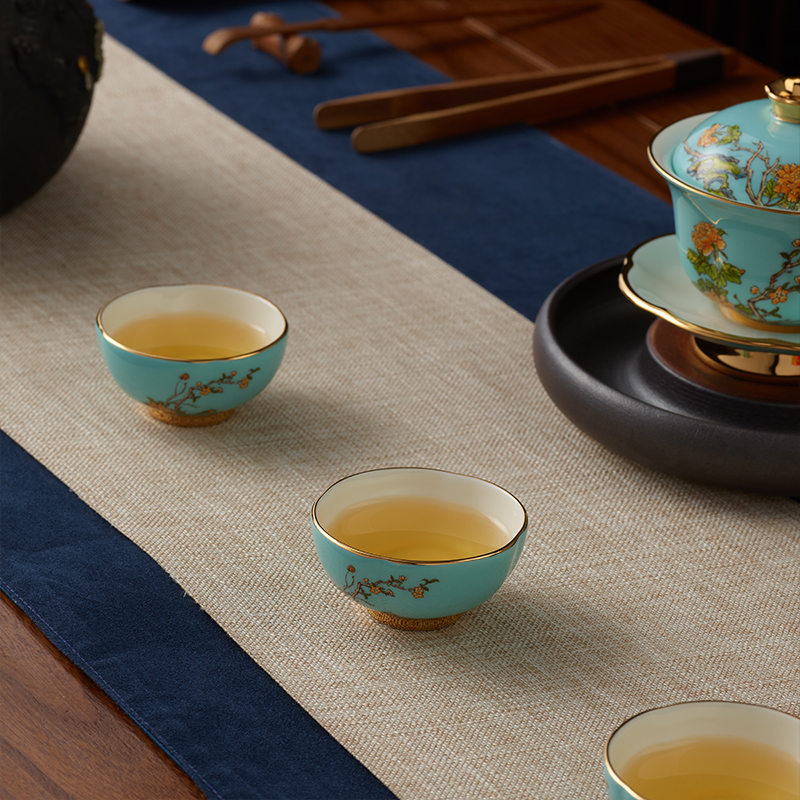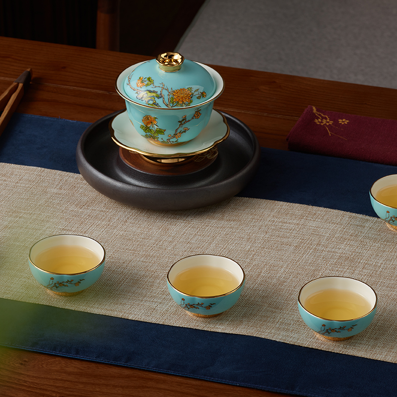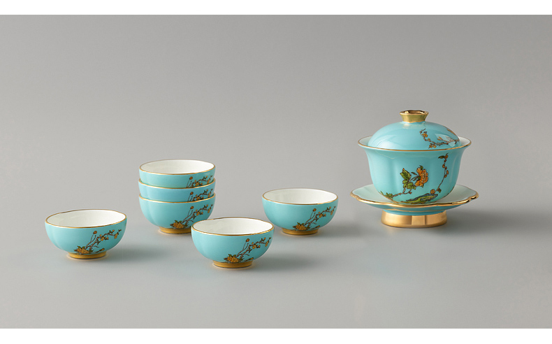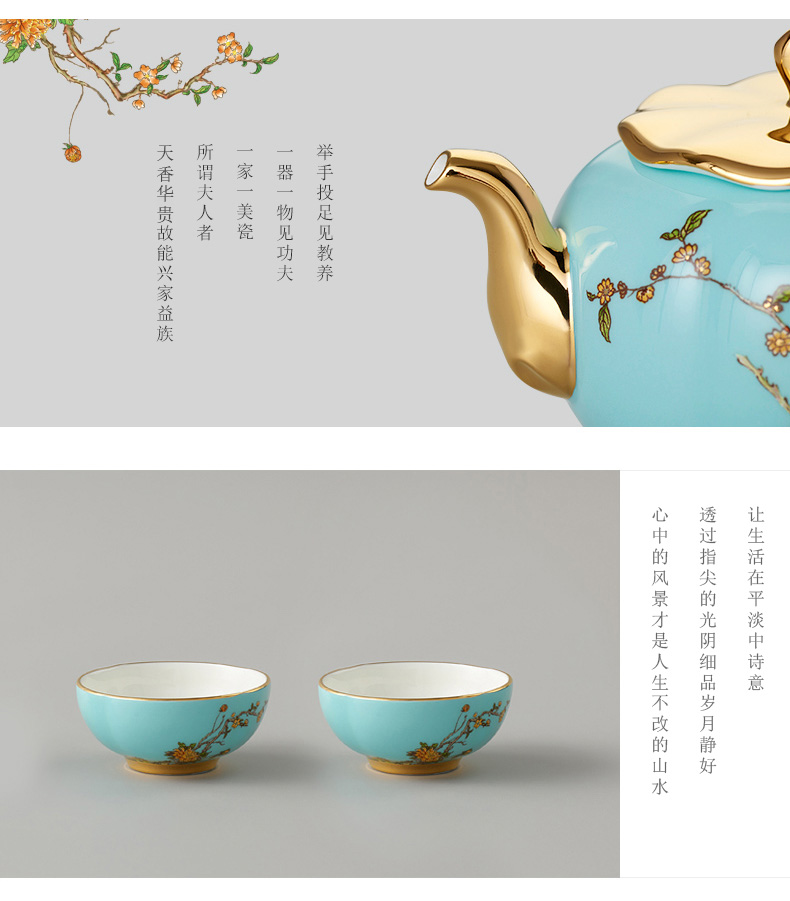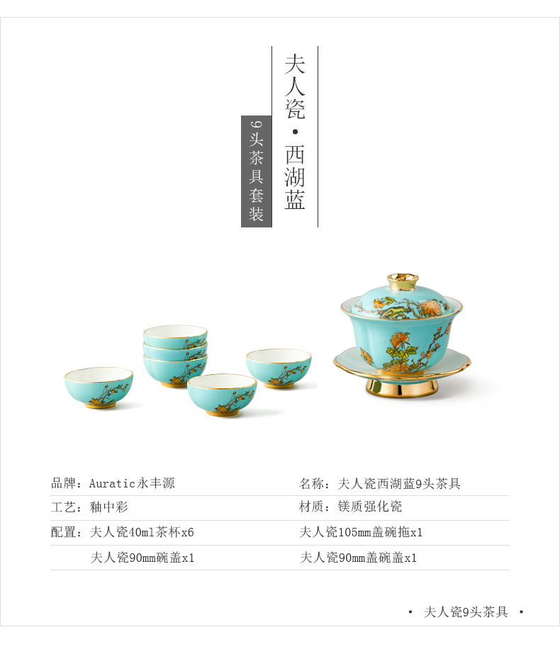 【国瓷·永丰源】夫人瓷西湖蓝9头陶瓷茶具 陶瓷茶杯茶壶套装