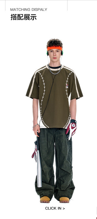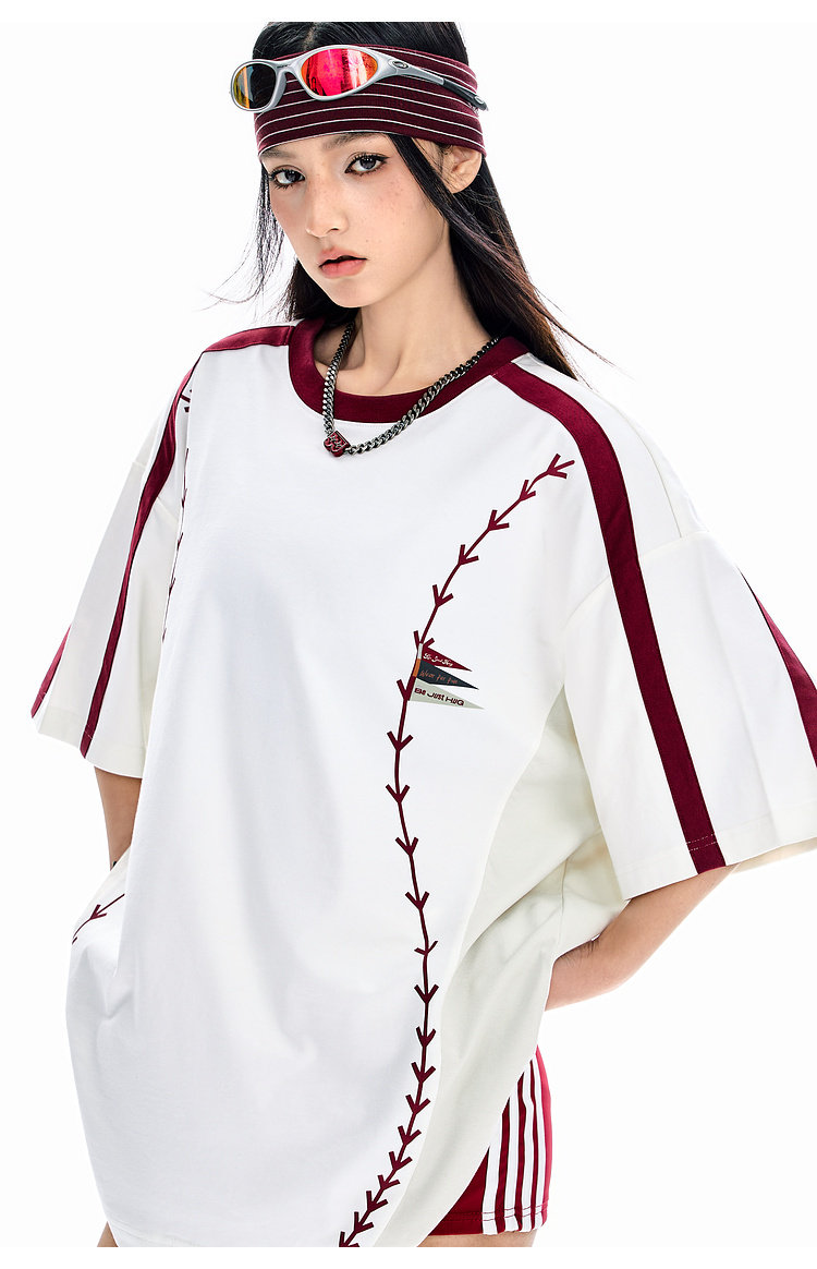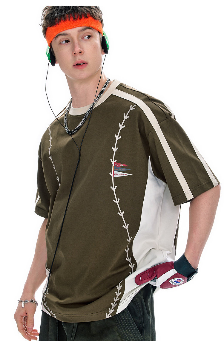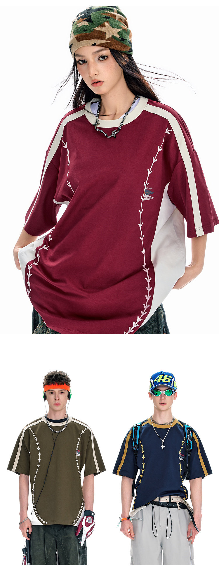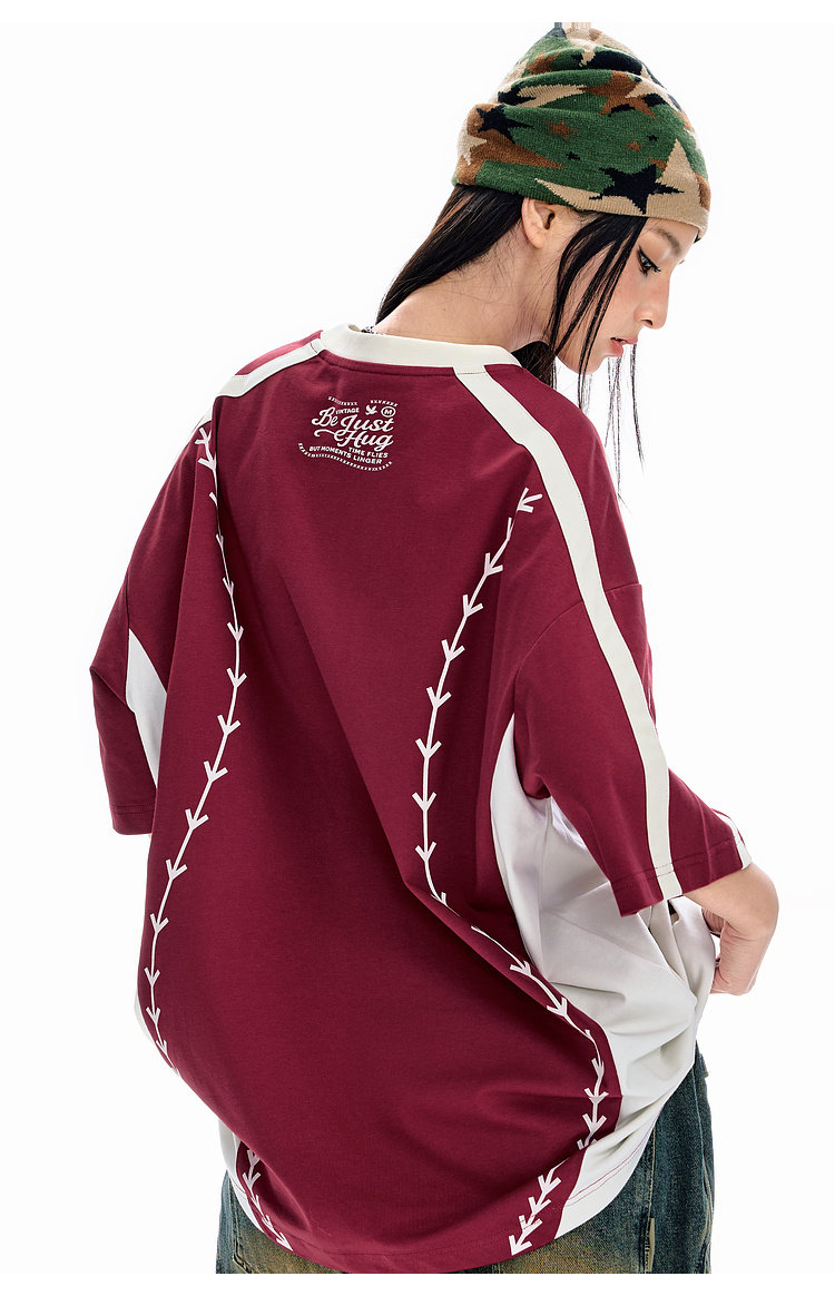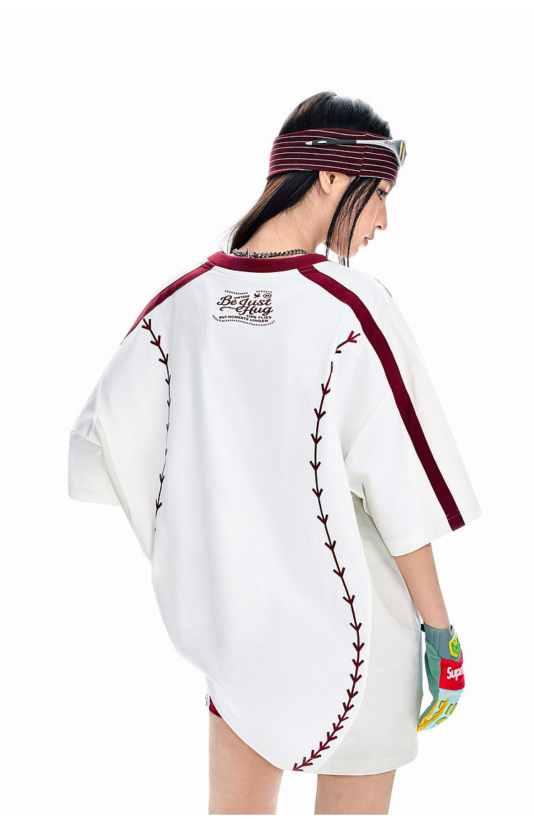 BJHG不计后果 棒球短袖T恤男款夏美式潮牌休闲运动印花宽松上衣女