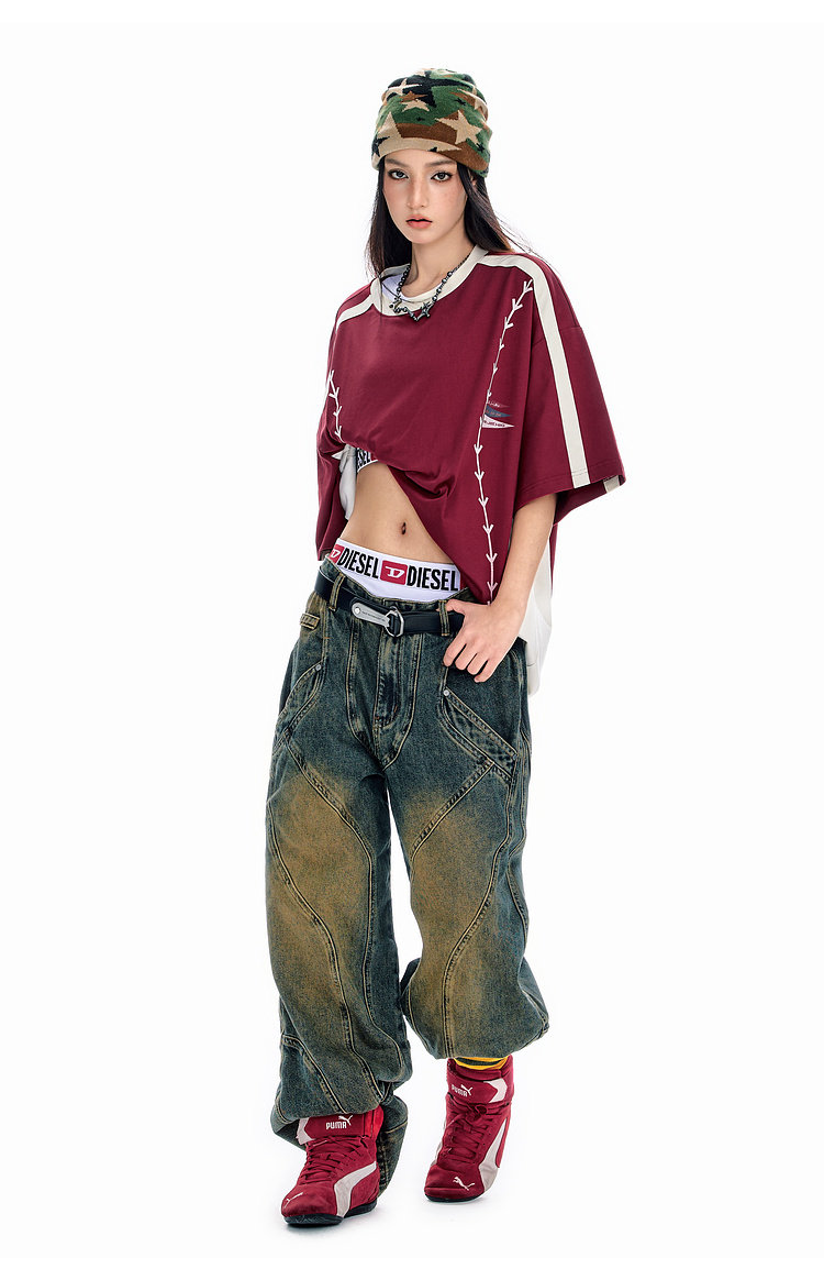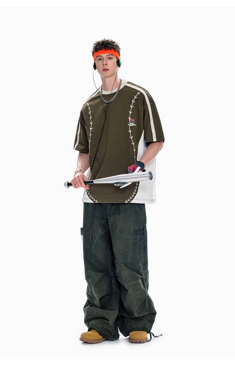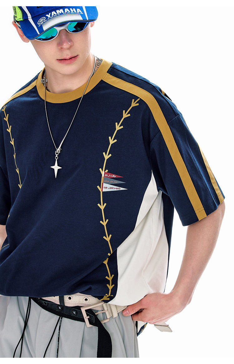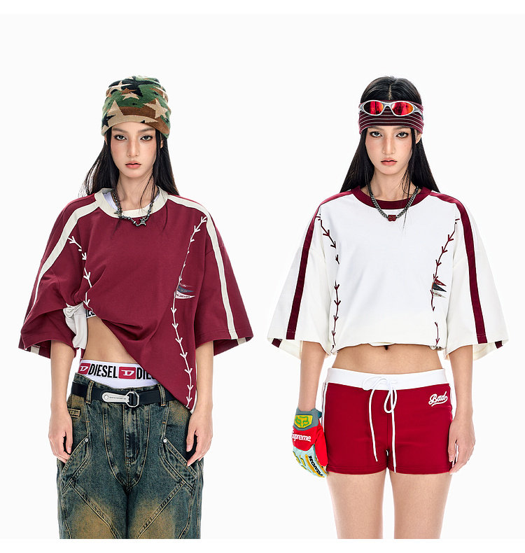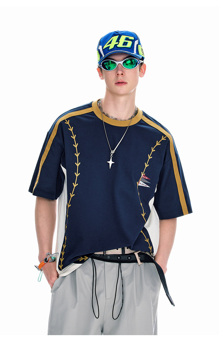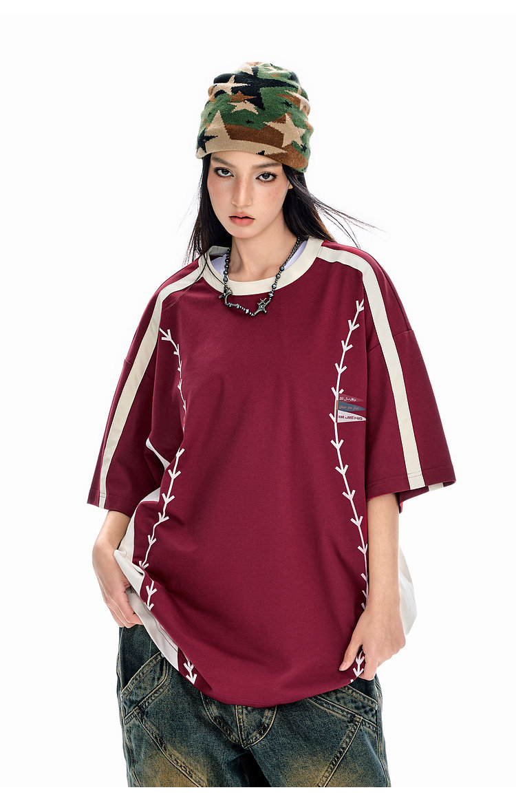 BJHG不计后果 棒球短袖T恤男款夏美式潮牌休闲运动印花宽松上衣女