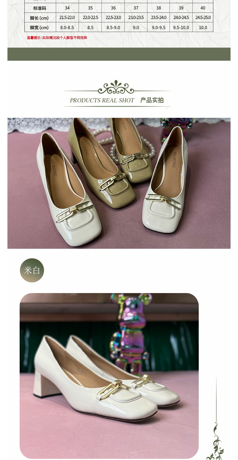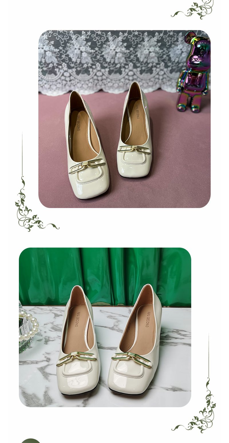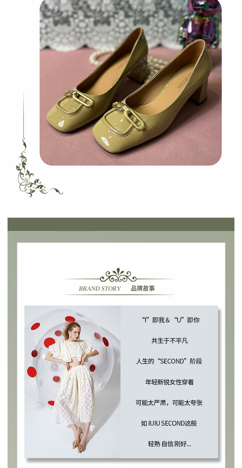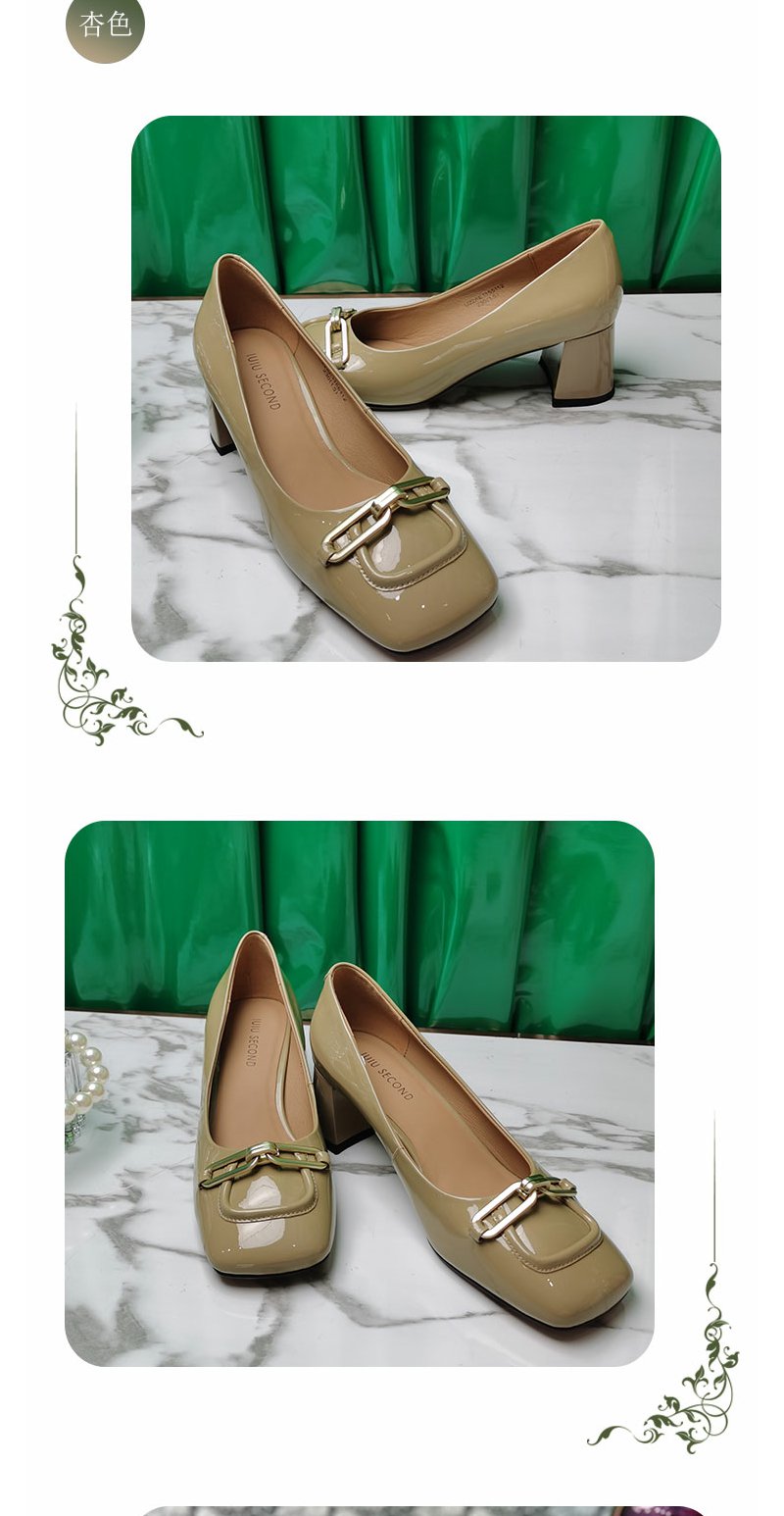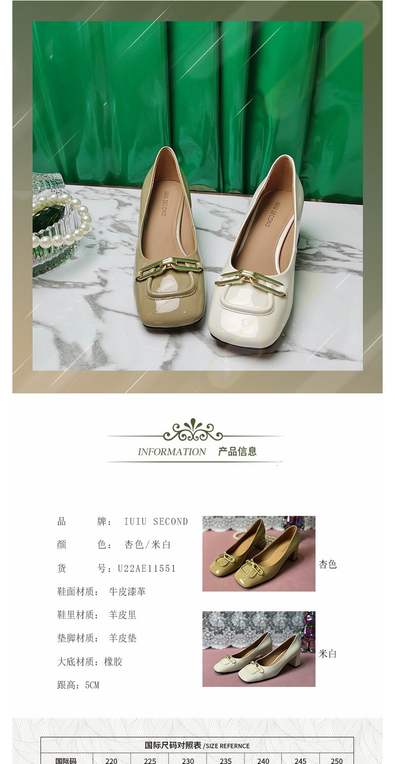IUIU SECOND商场同款方头链条扣中跟舒适百搭单鞋女