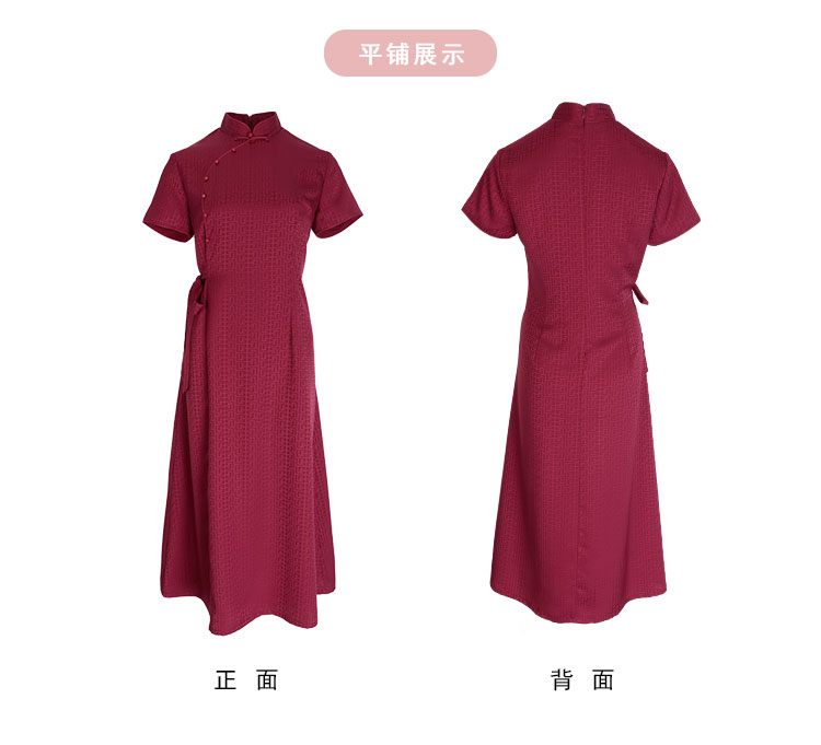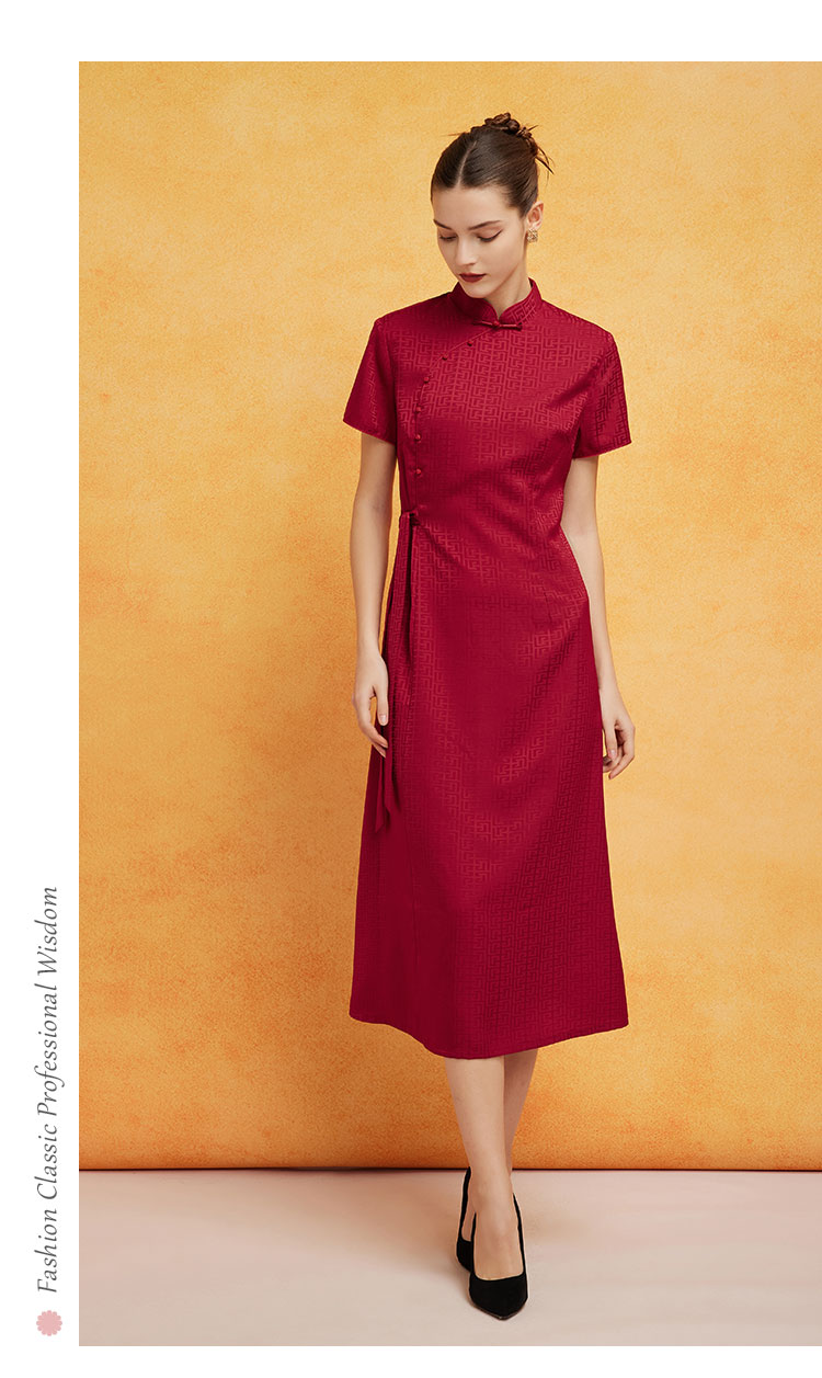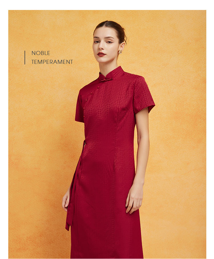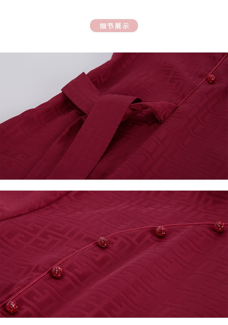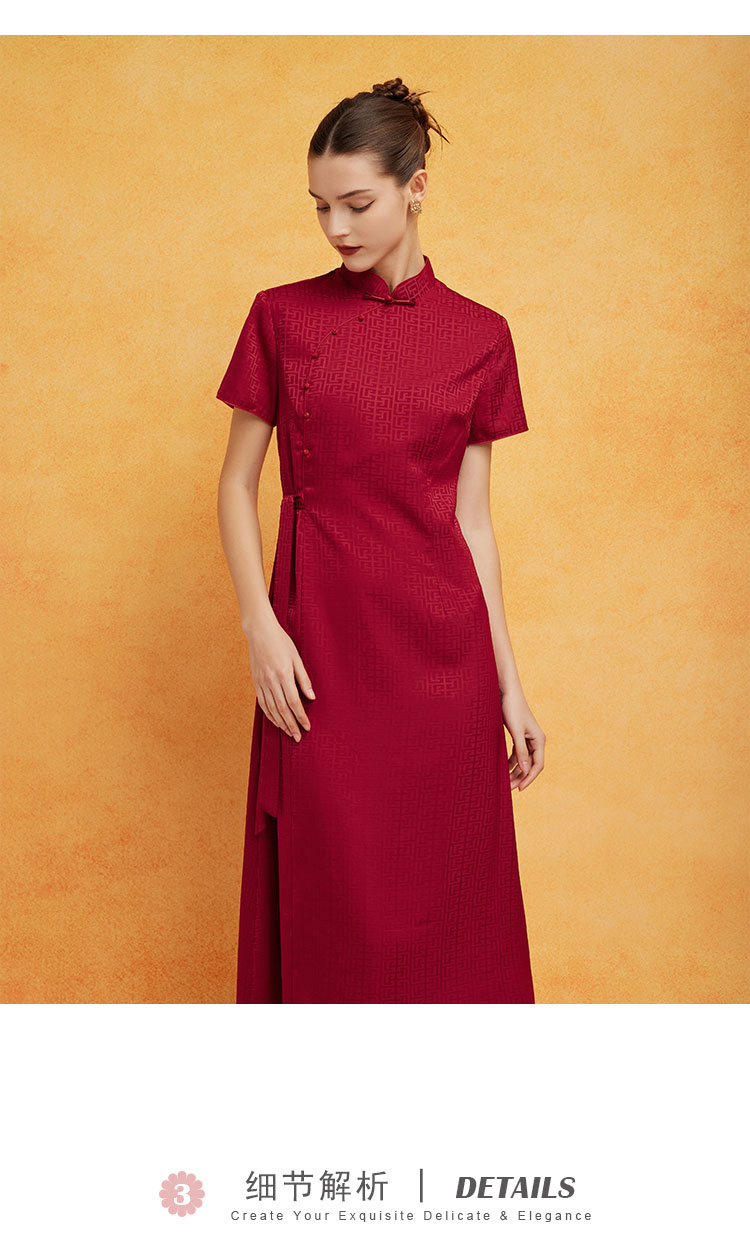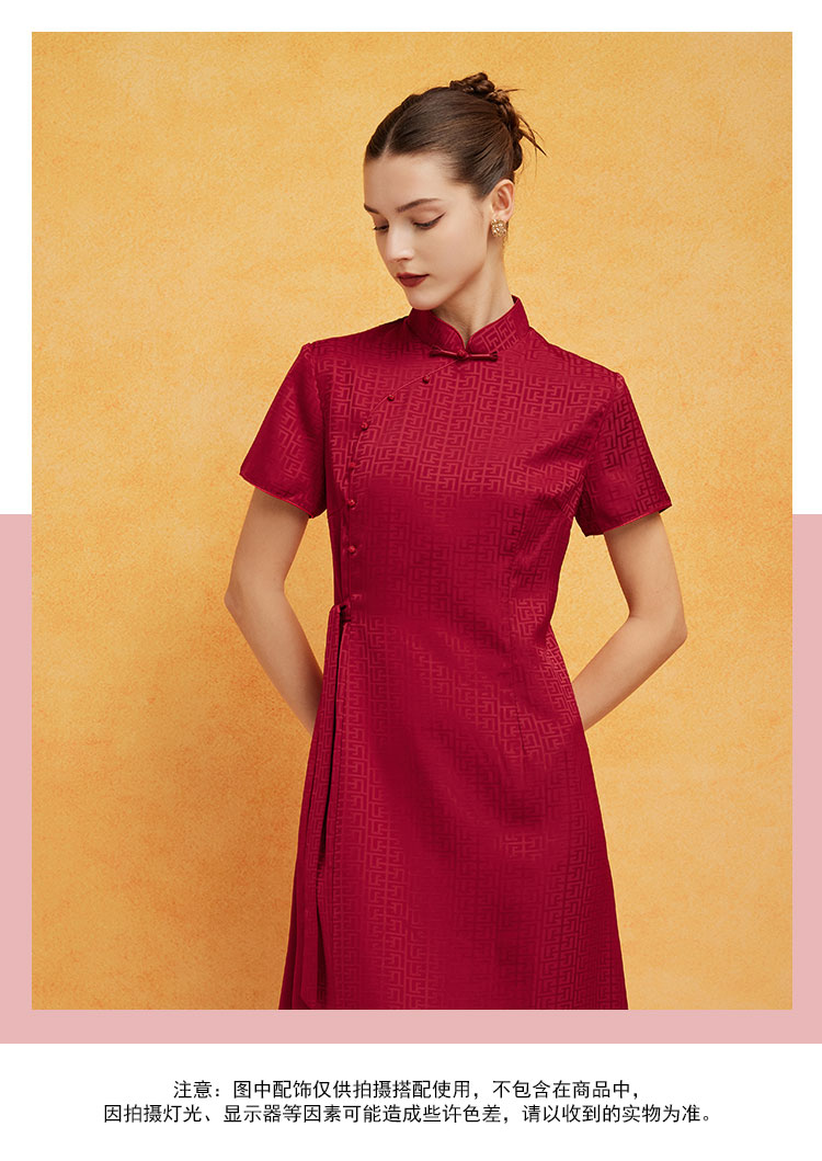 PF8H1斯尔丽2024新款旗开得胜提花改良腰间收褶挡肚放摆改良旗袍连衣裙