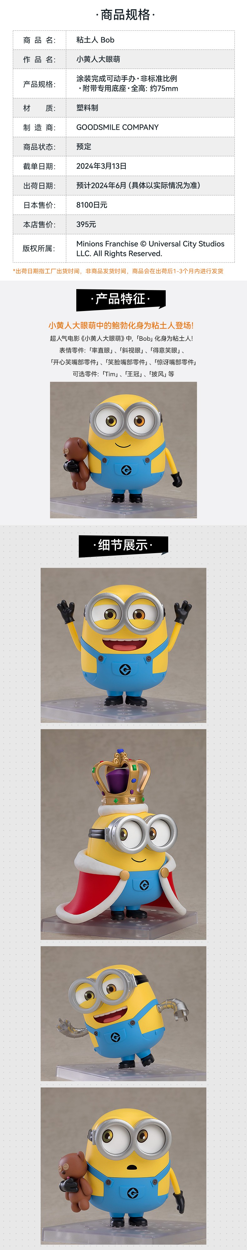 【GSC现货】粘土人 Bob 小黄人大眼萌