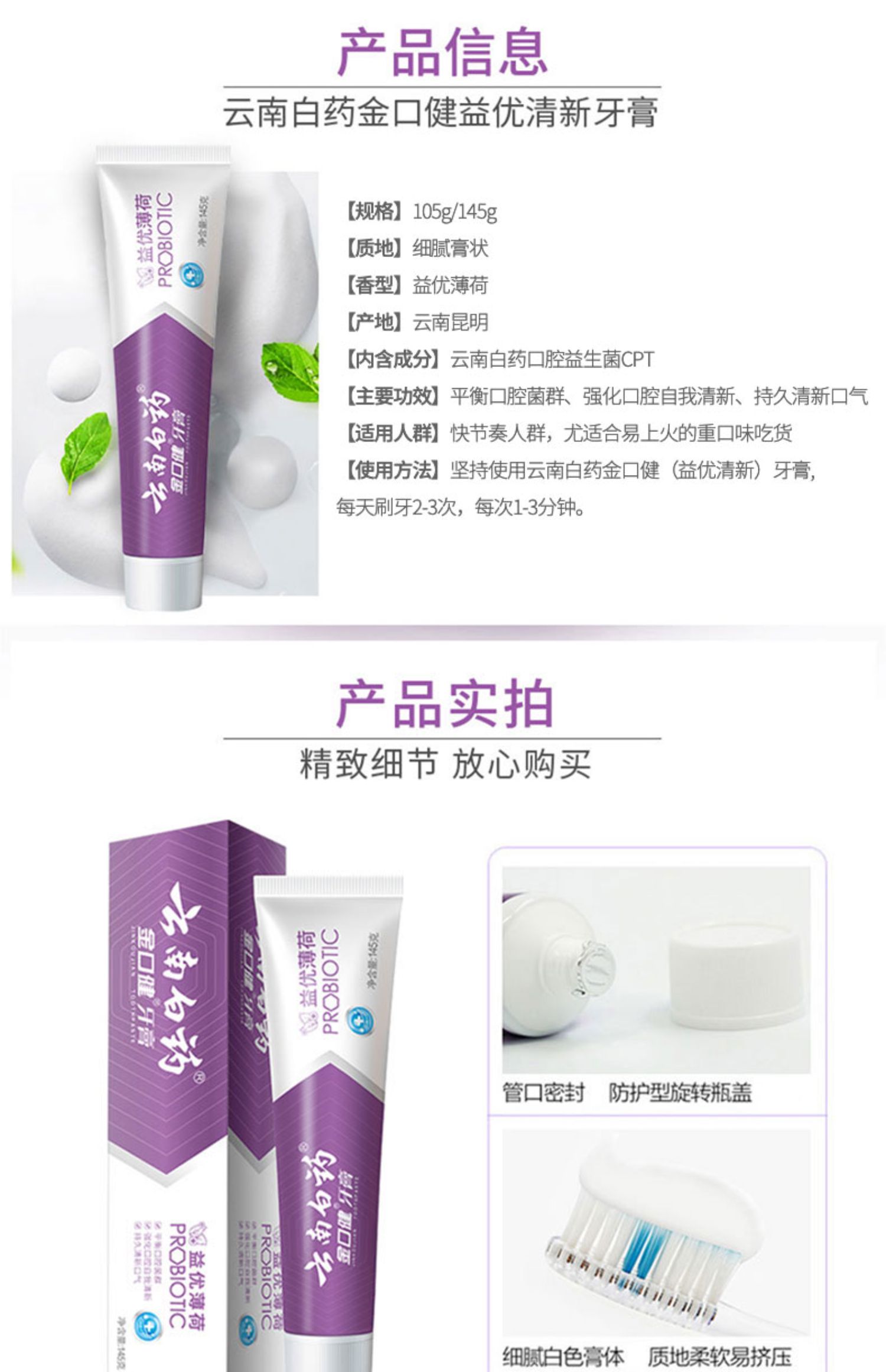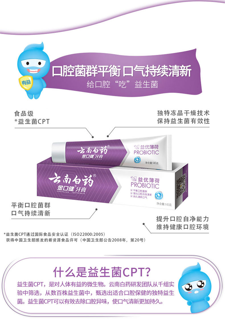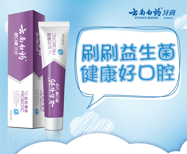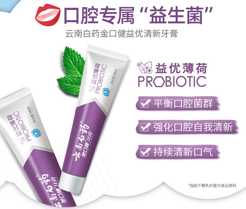 【白药精选】云南白药牙膏金口健益优薄荷牙膏3支含益生菌平衡口腔菌群祛除口腔异味