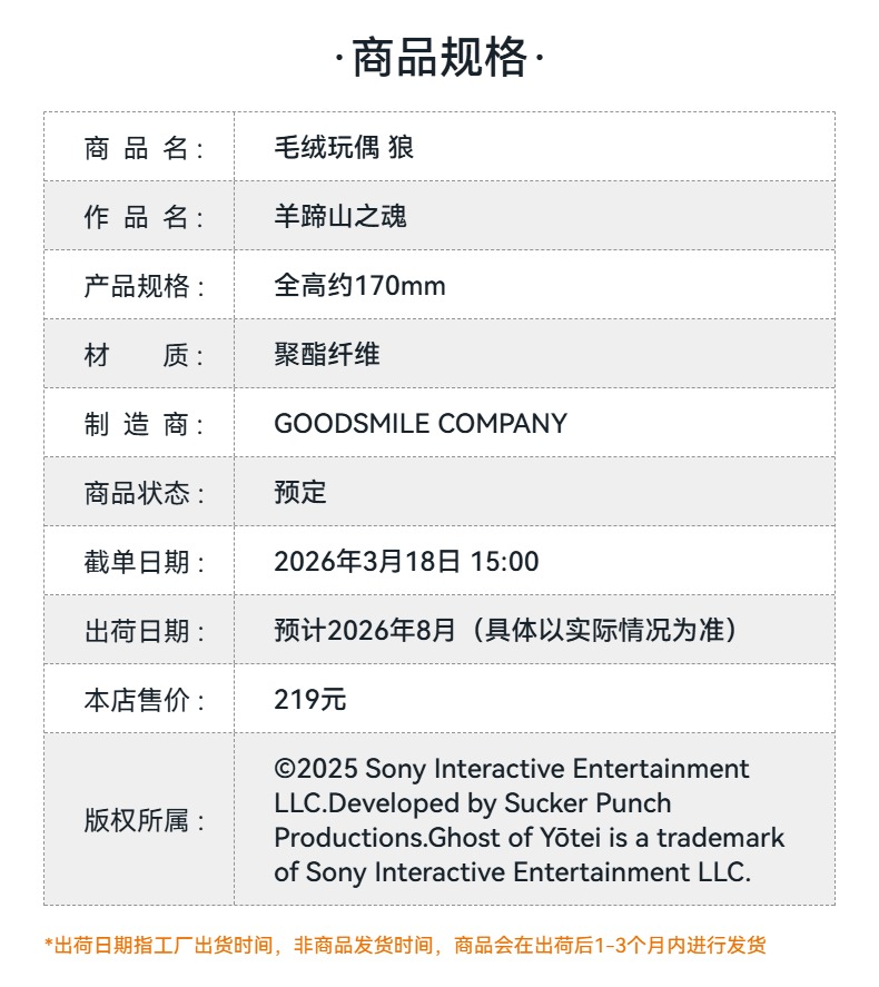 【GSC预售定金】毛绒玩偶 狼 羊蹄山之魂 手办模玩周边