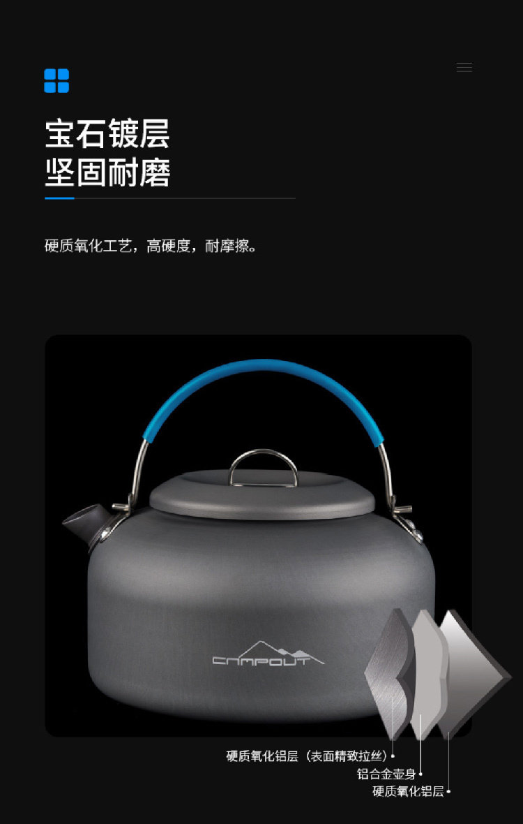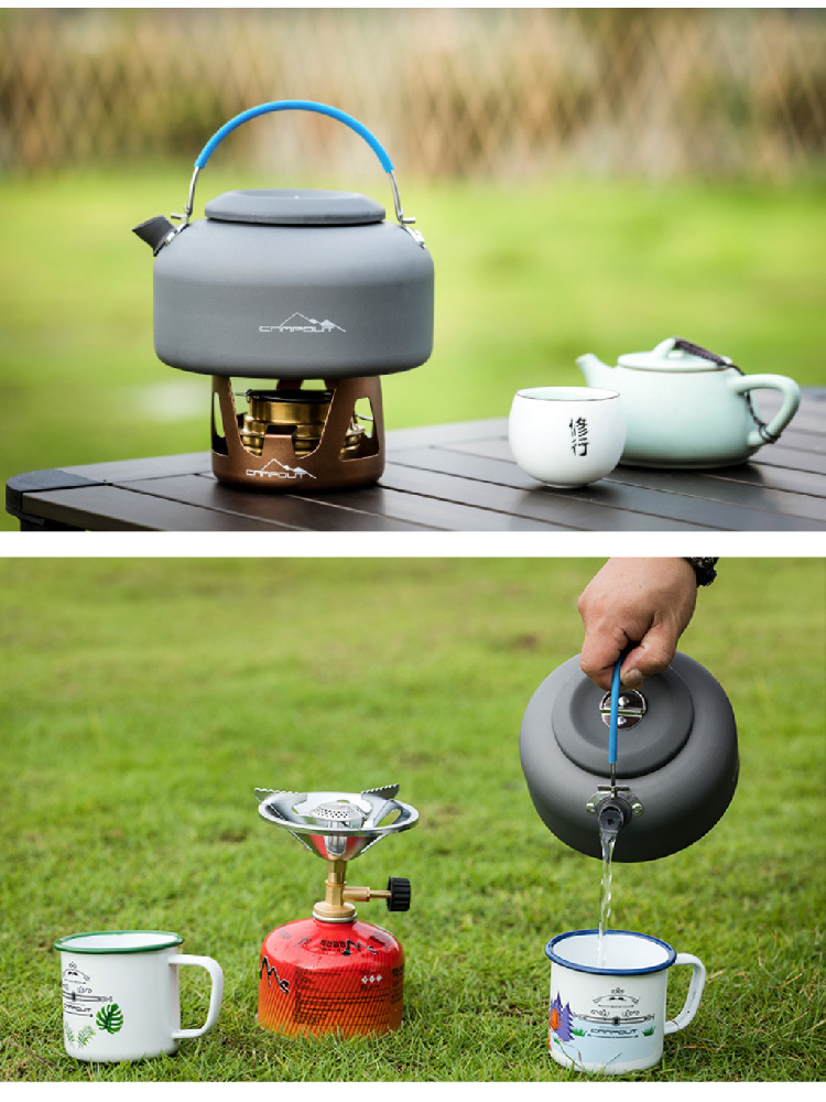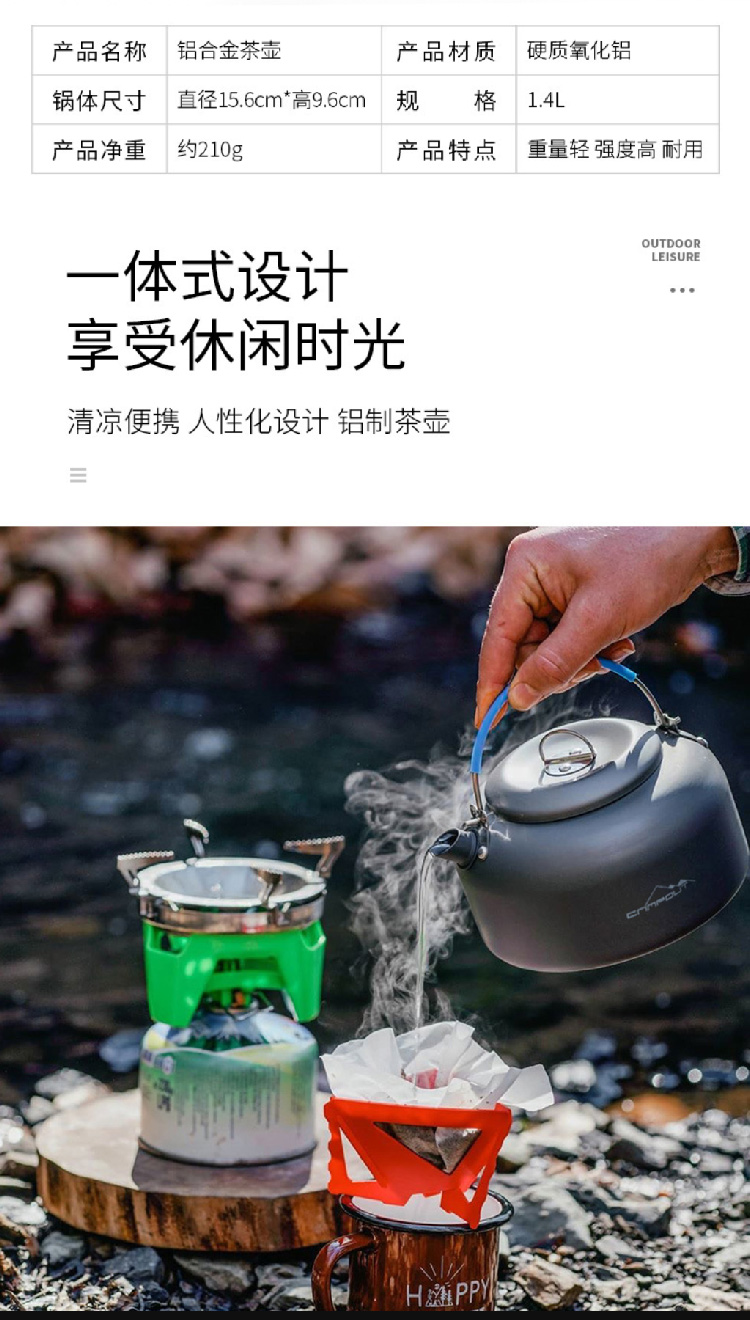 户外烧水壶野营茶壶野外炉具便携烧水燃气水壶1.4L铝壶