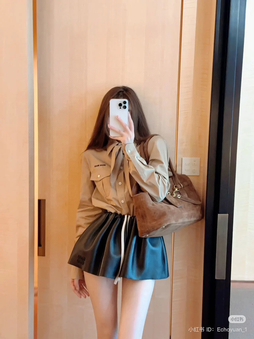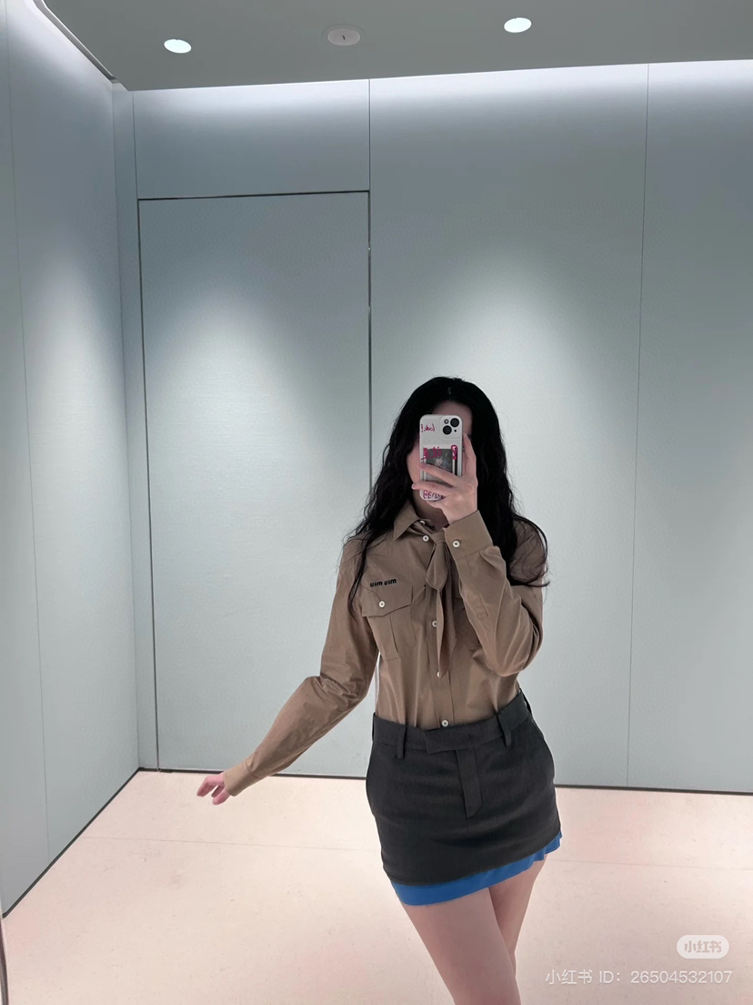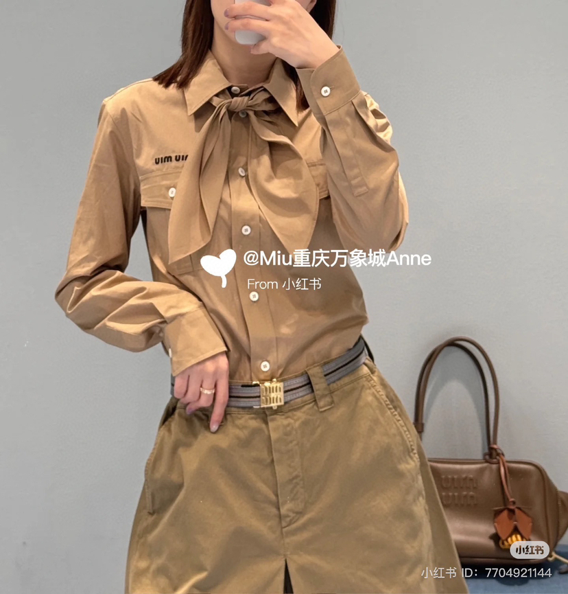 渠道圆正 356款 甜美帅气 猎装风 miu高支棉 小领巾 长袖衬衫 我穿40不宽裕