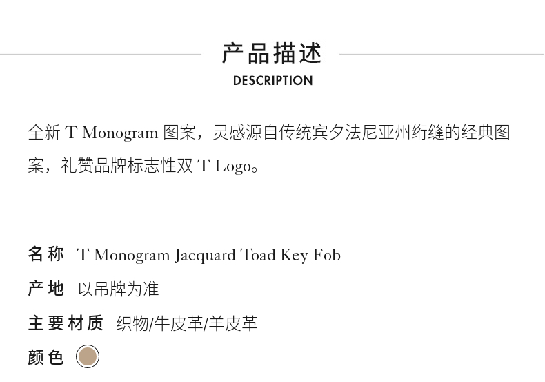 TORY BURCH 汤丽柏琦 T MONOGRAM提花钥匙扣 可放耳机