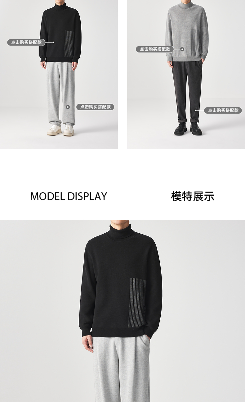 墨麦客男装 远红外升温 高领毛衣冬季新款蓄热保暖套头针织衫。