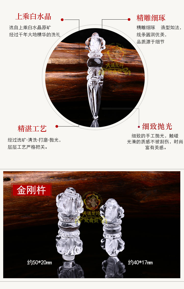 佛教用品 白水晶金刚橛金刚杵吊坠挂坠供品法器支持国检