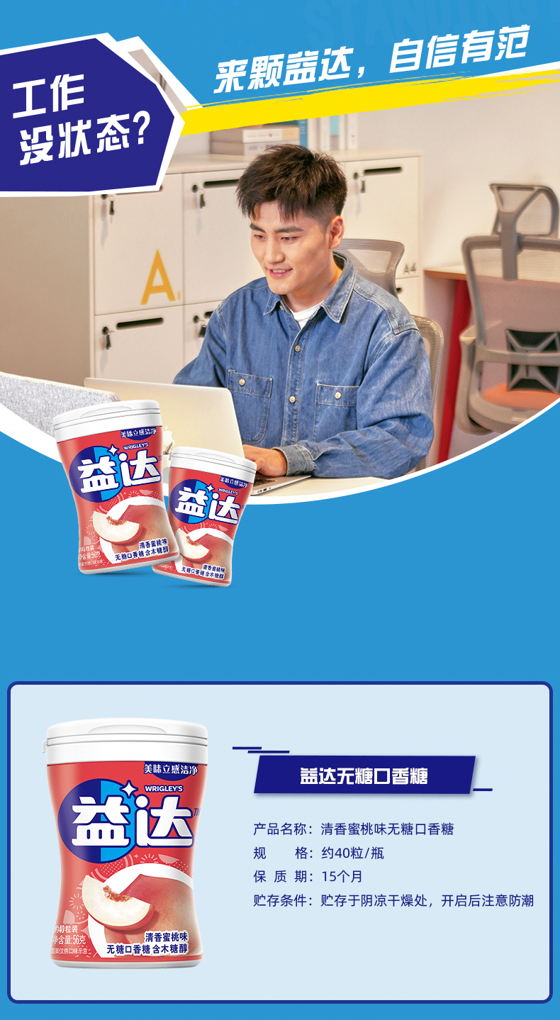益达木糖醇清香蜜桃40粒56g