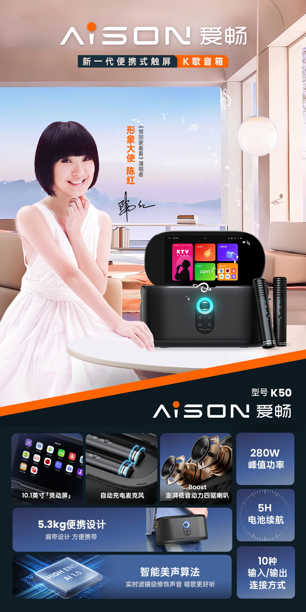爱畅(AISON)K50智能K歌音箱 家庭KTV户外卡拉OK功放蓝牙触屏智能点歌机音箱节日礼物