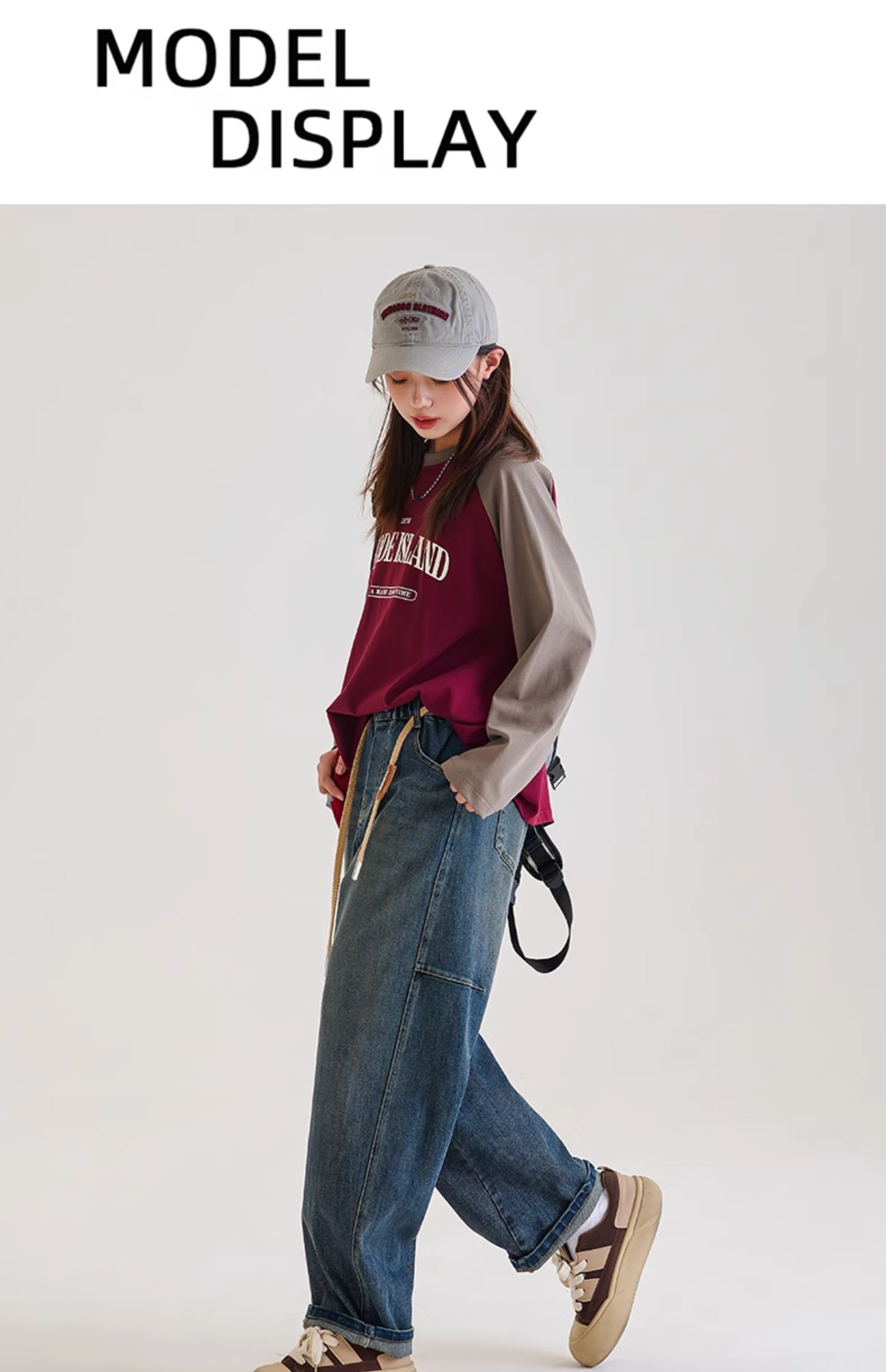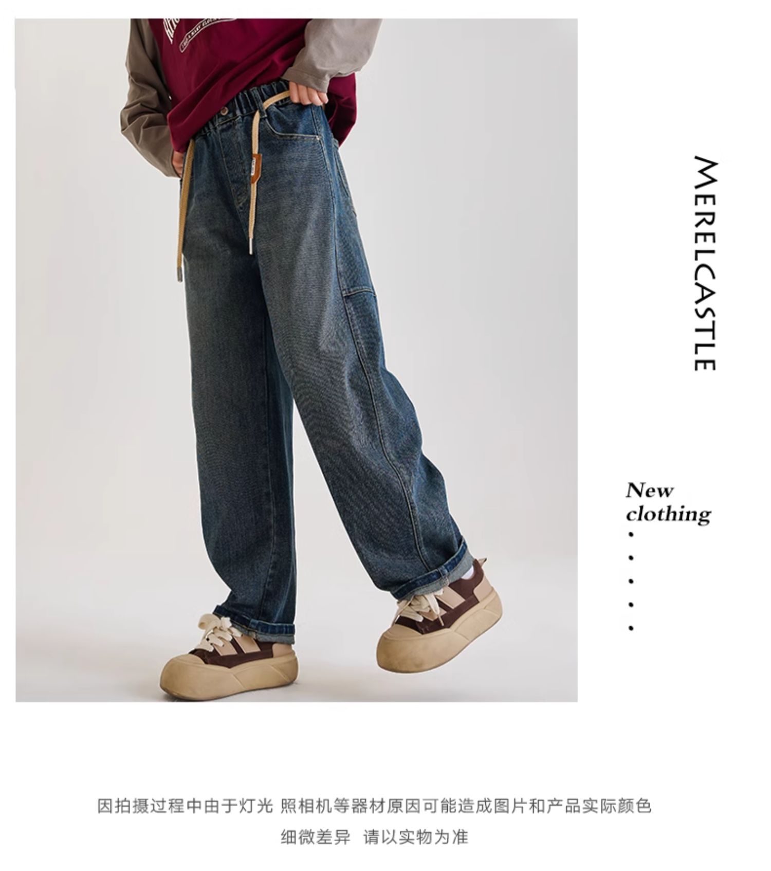 女童牛仔裤春秋款2024新款儿童初中生秋季长裤女大童秋装直筒裤子