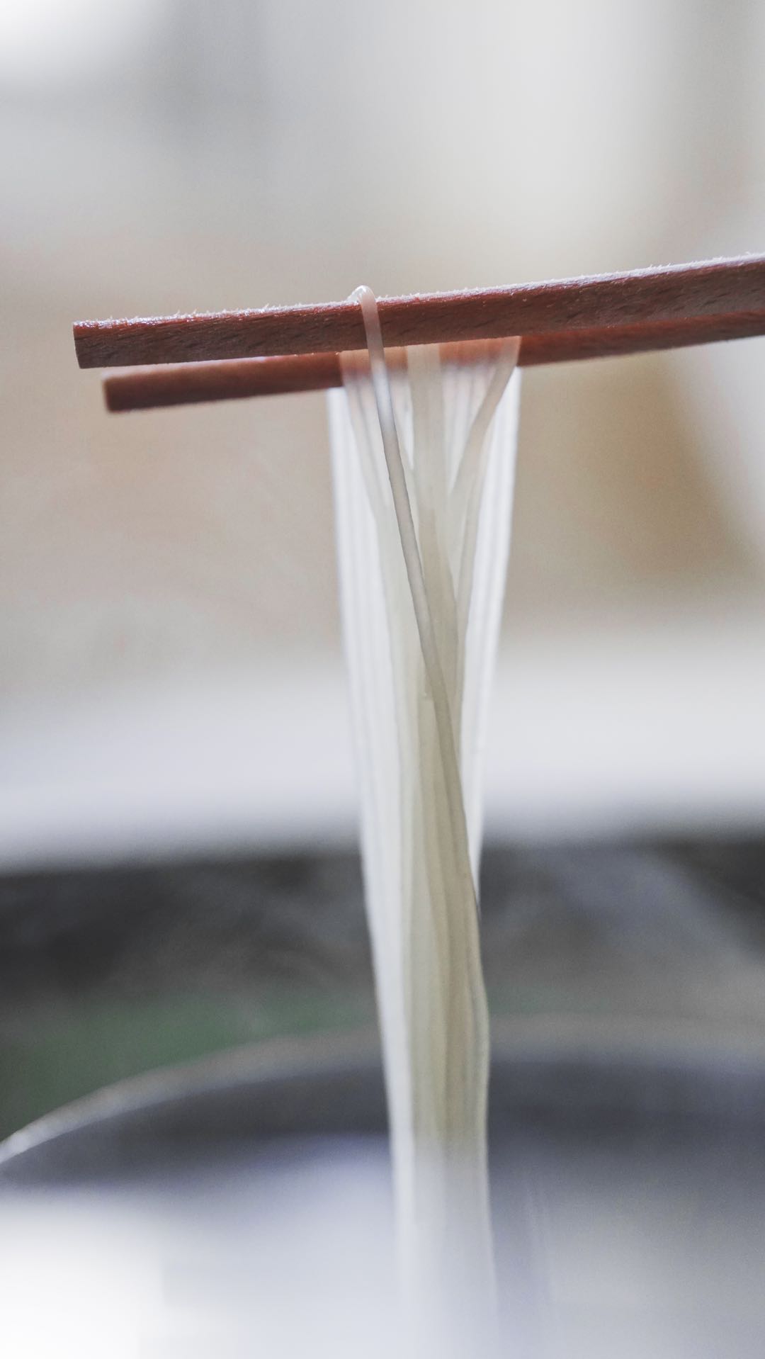1.将米线用凉水浸泡30秒(除去米线天然碱味)捞出后开水煮2分钟左右