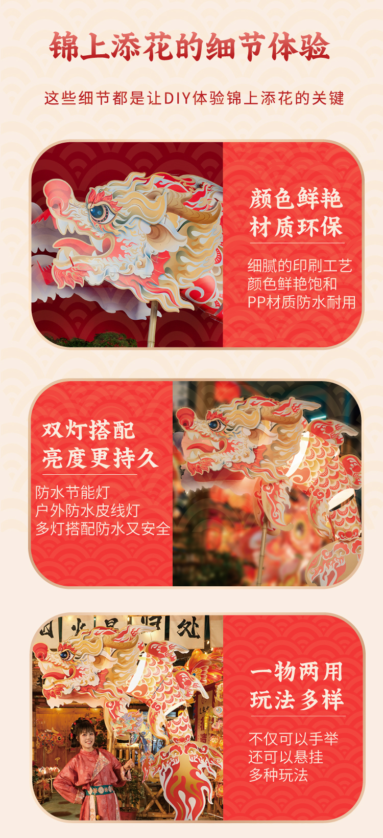 新年春节元旦盛彩福运鳌龙灯手工diy商场装饰儿童灯笼制作材料包