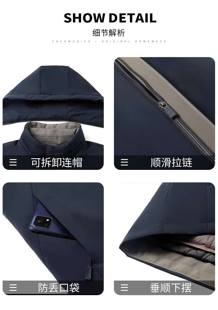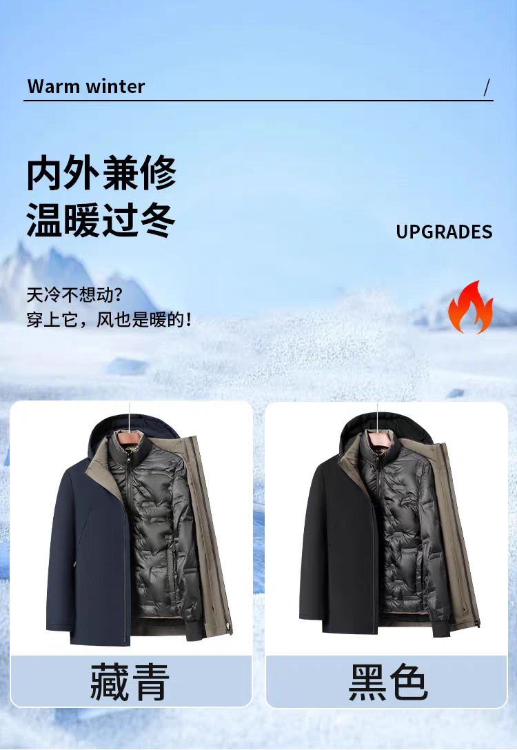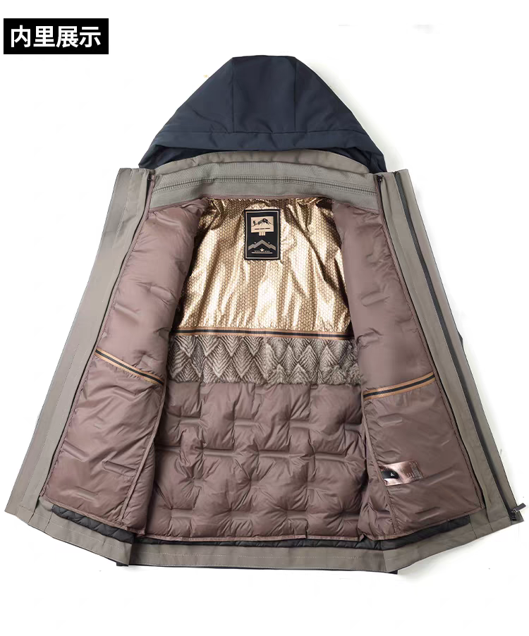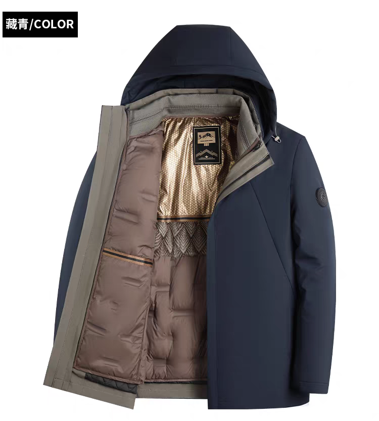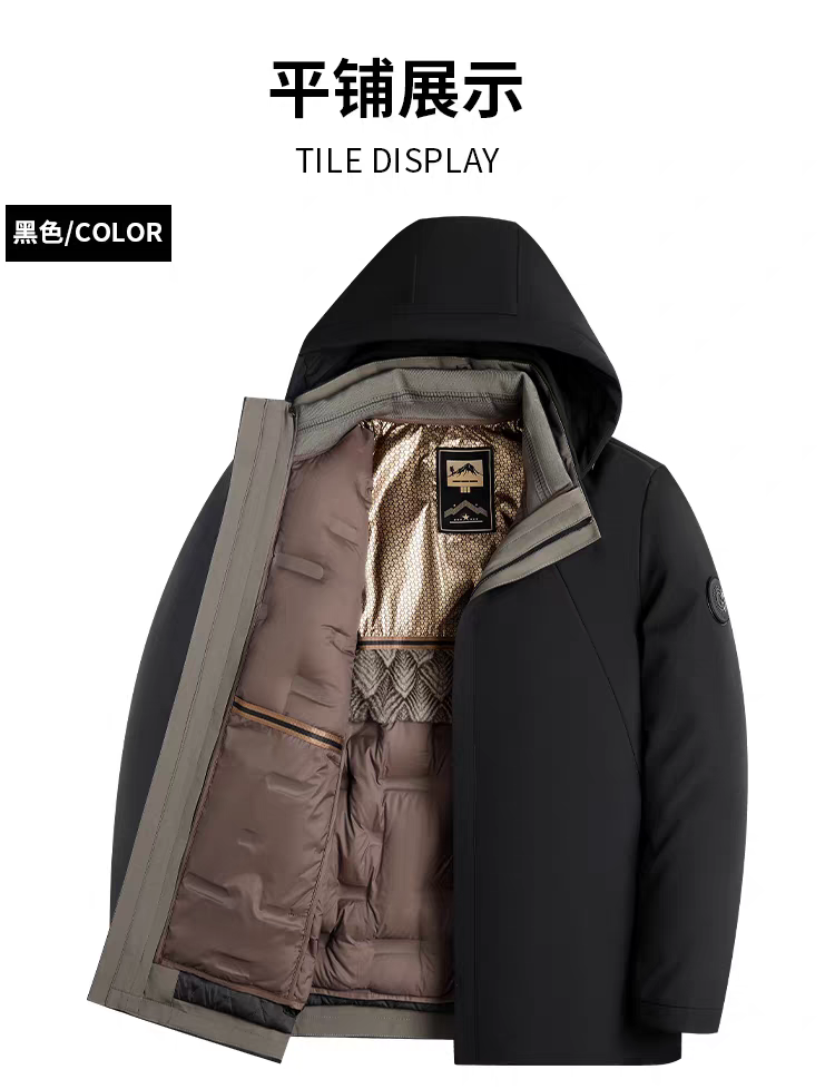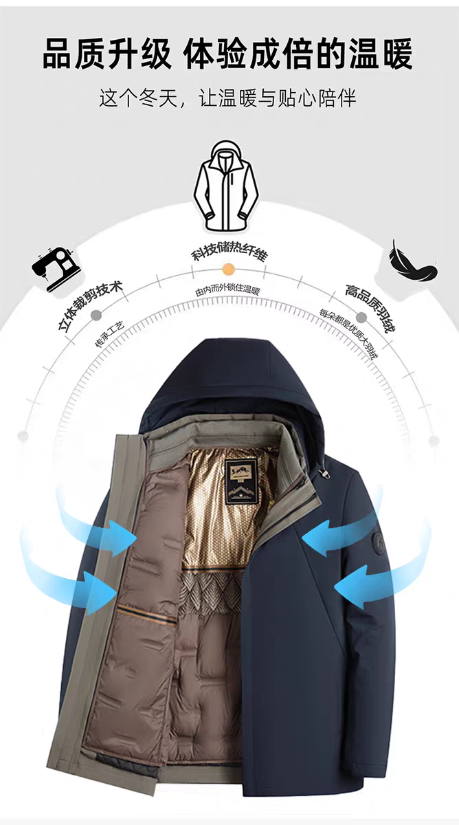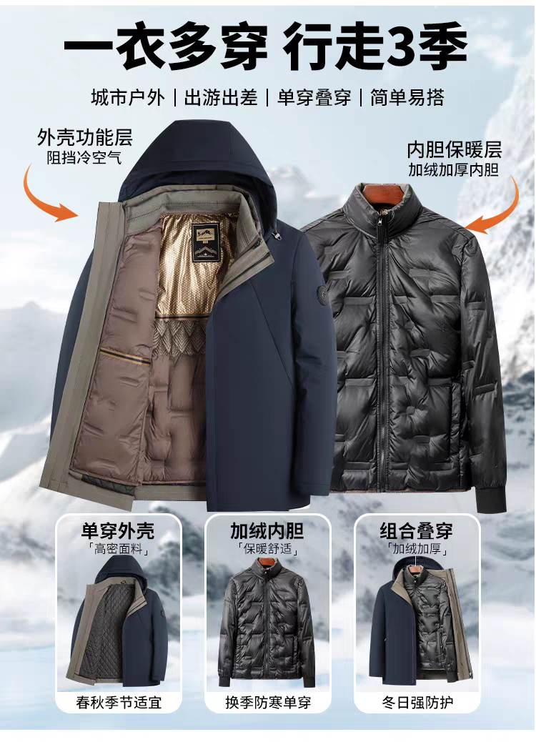 罗蒙 90白鹅绒兔毛皮羊毛夹克外套 一衣多穿 冬季款兔毛护腰 羊毛保暖加绒加厚鹅绒服外套男士中老年爸爸装968