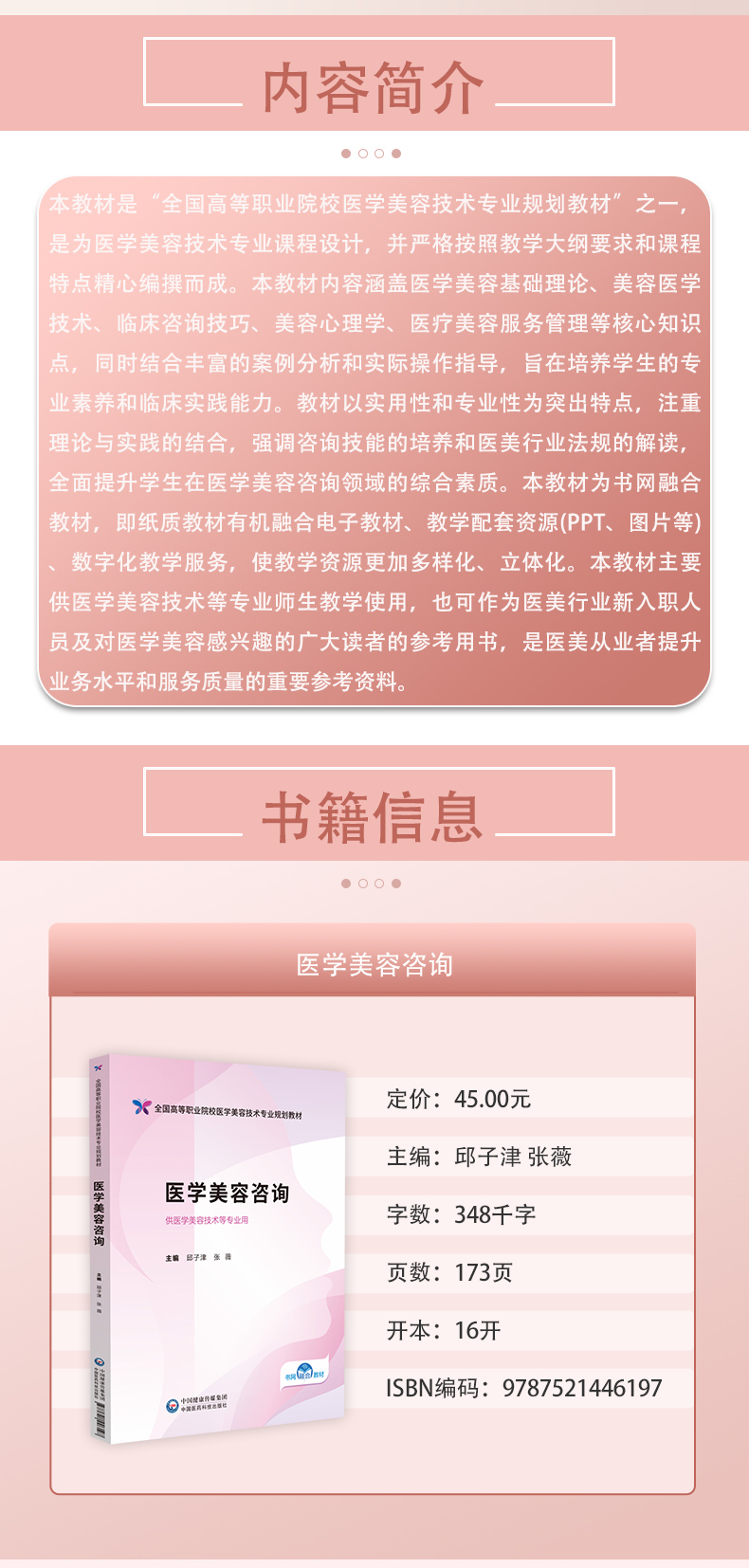 医学美容咨询 全国高等职业院校医学美容技术专业规划教材 邱子津 张薇 供医学美容技术等专业用 9787521446197中国医药科技出版社