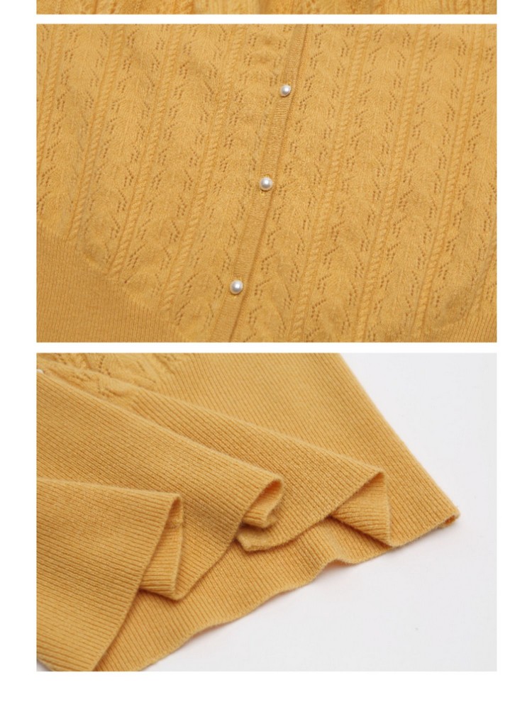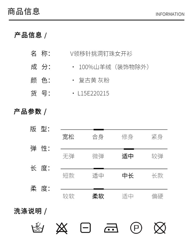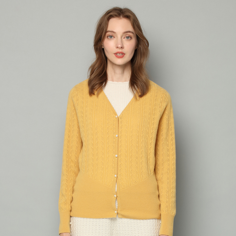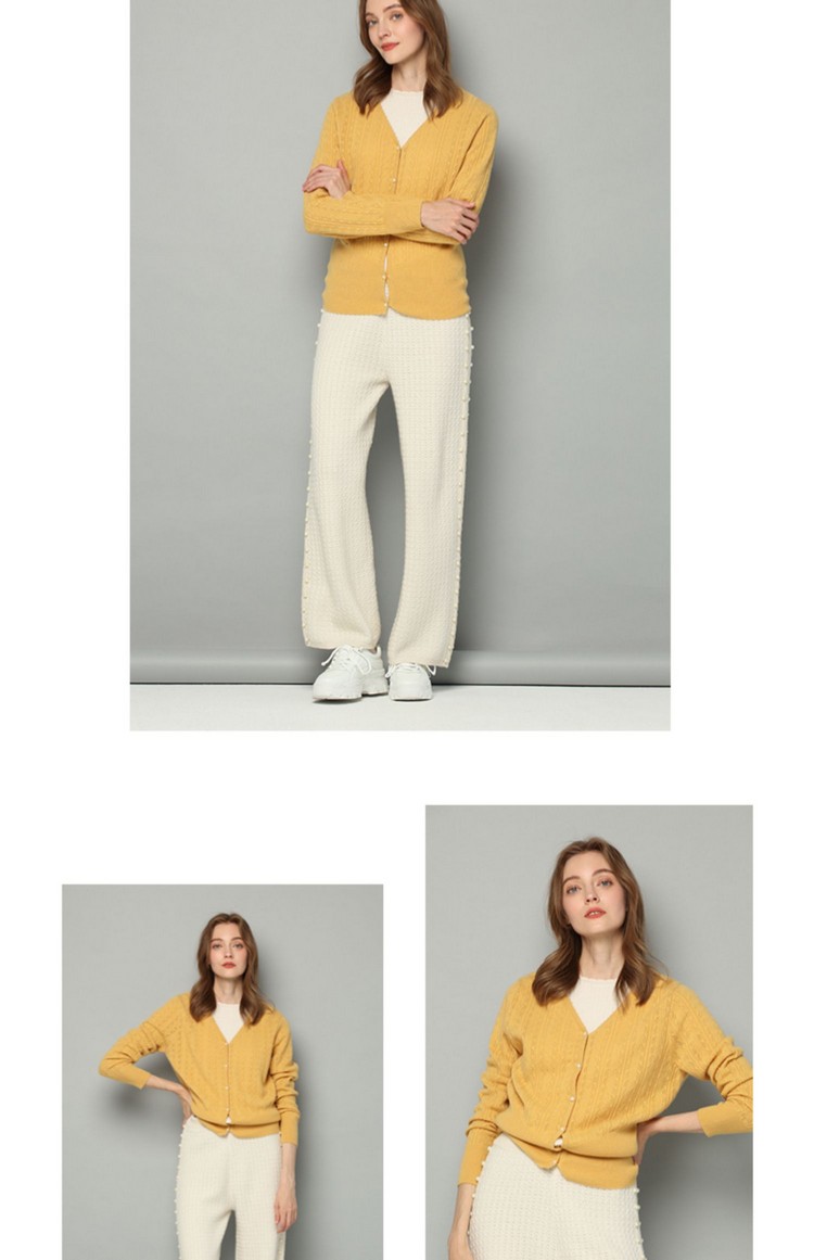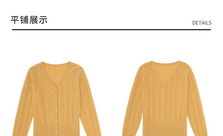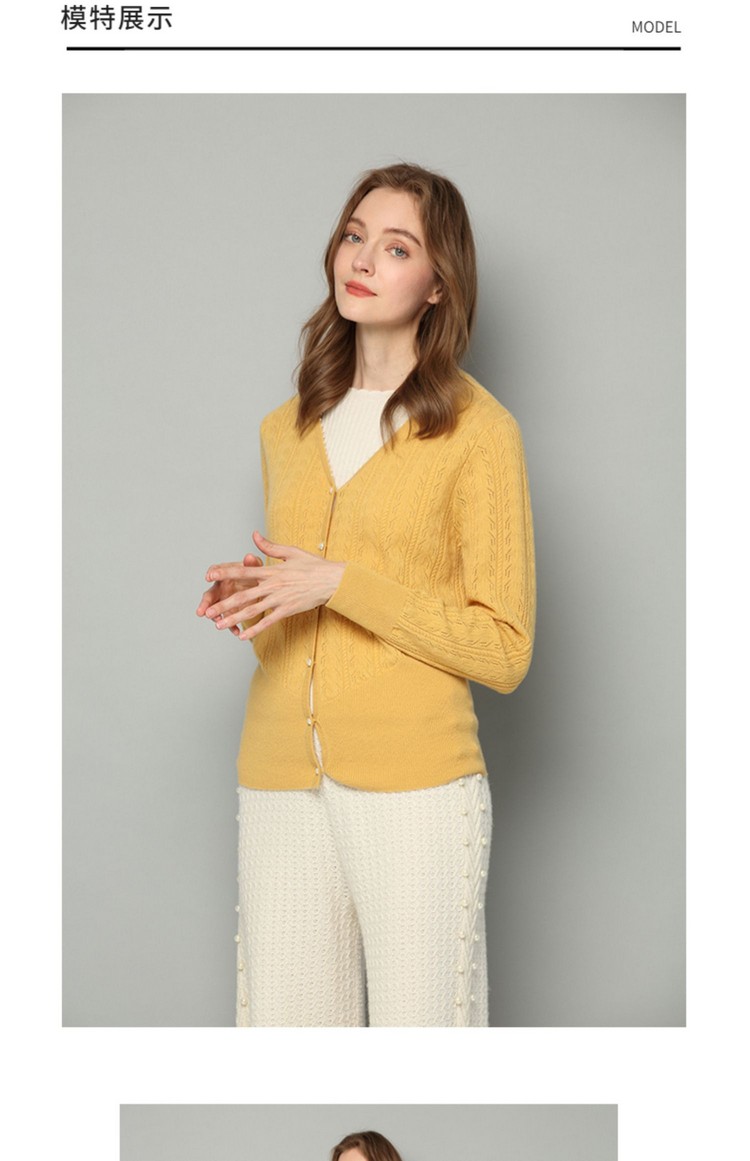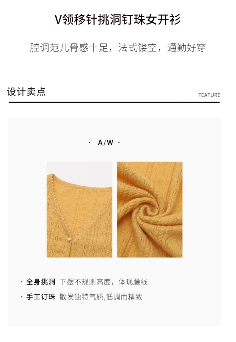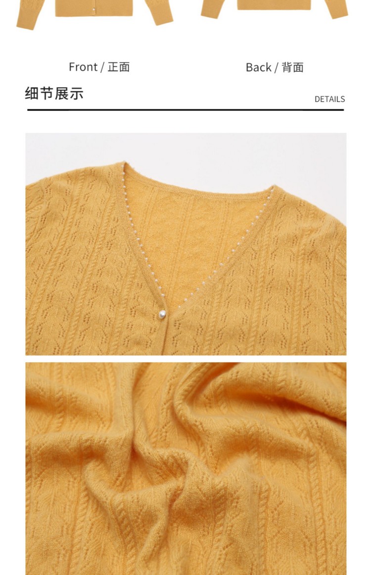 羚荌渼V领移针挑洞手工钉珠羊绒开衫