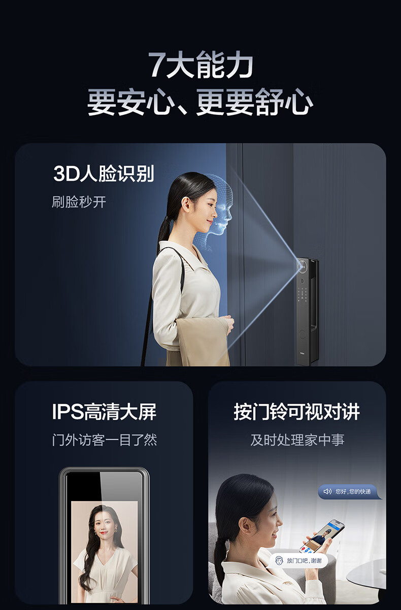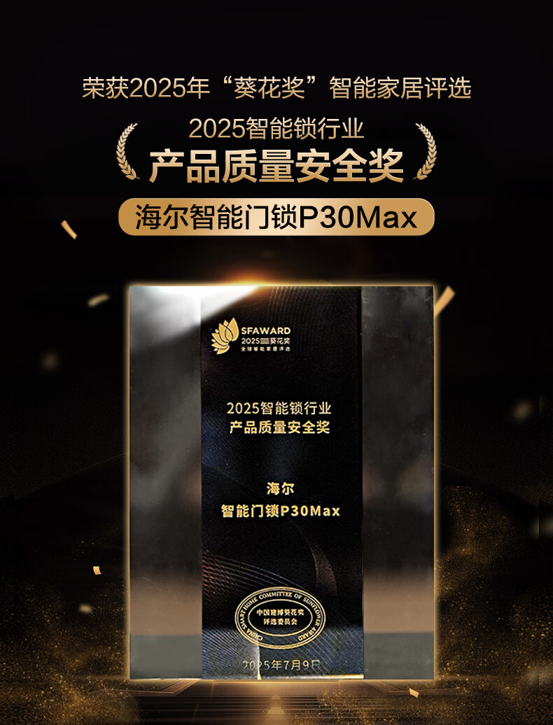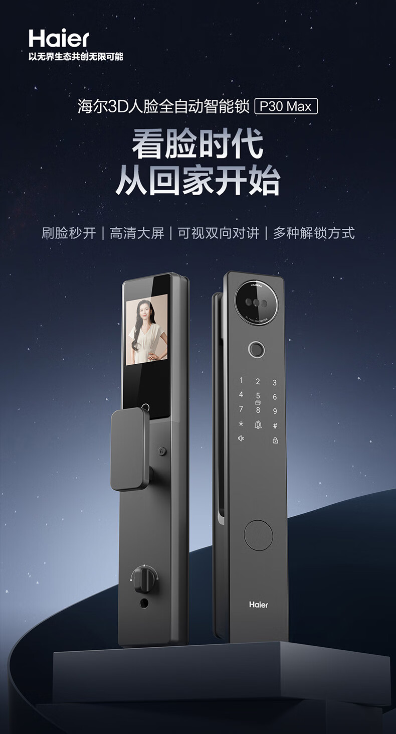 海尔电子锁 P30Max 智能门锁 人脸识别 指纹锁防盗门锁 全自动密码锁 标准锁体9种开锁方式