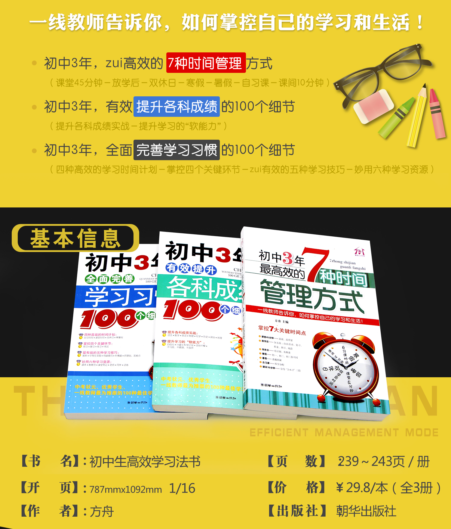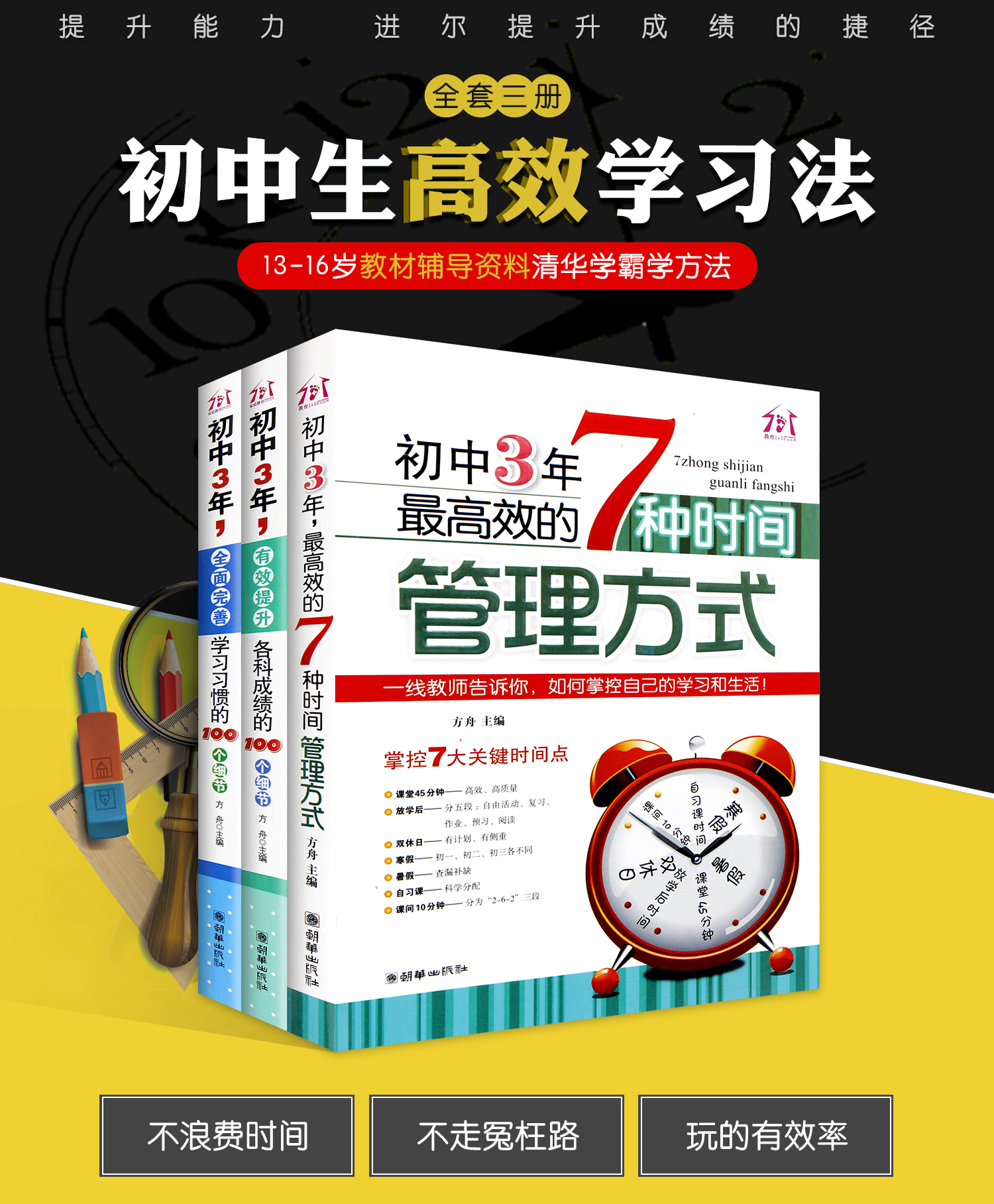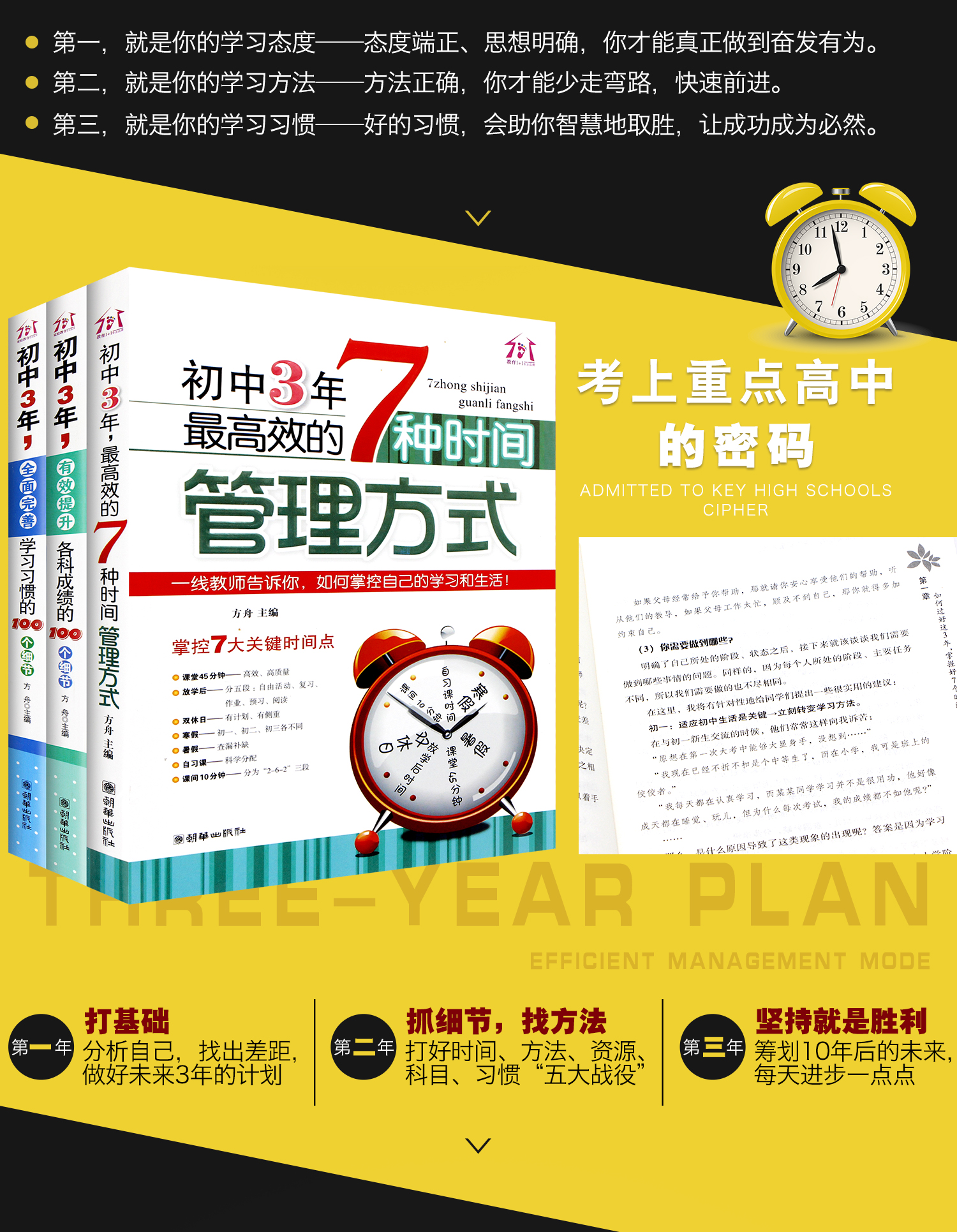 初中三年,提升学习法 (全3册)初一课外阅读书籍教材辅导资料 超级学霸学方法初中状元全套笔记数学七年级复习练习3年有效的7种时间管理方式