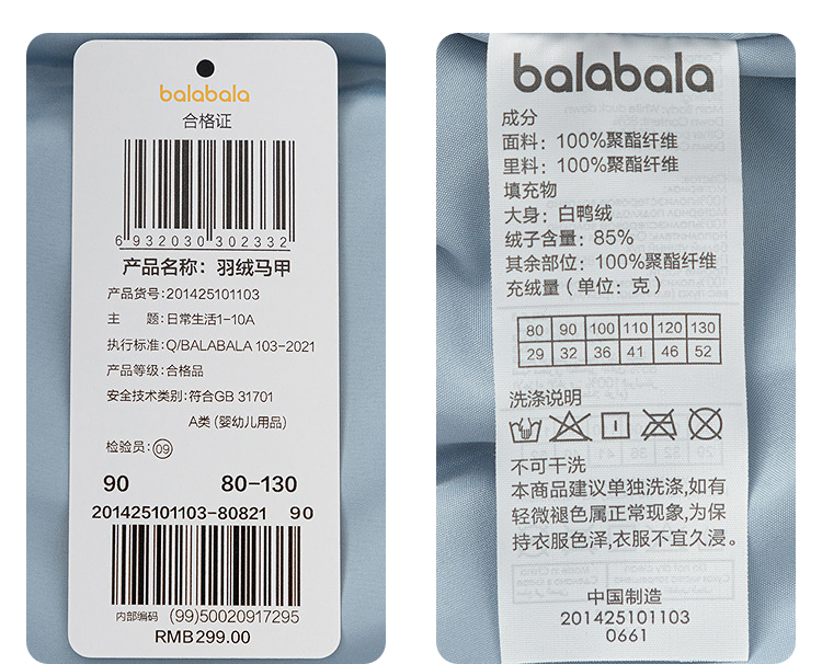 【商场同款】巴拉巴拉宝宝羽绒马甲男童宽松立领外套2025冬装新款