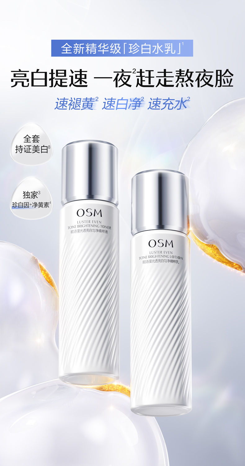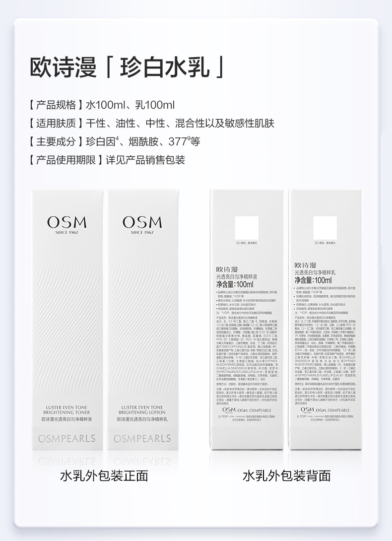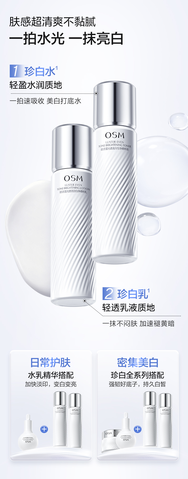 【新春限定】【拍1到手9件】欧诗漫光透亮白匀净珍白水乳美白淡斑