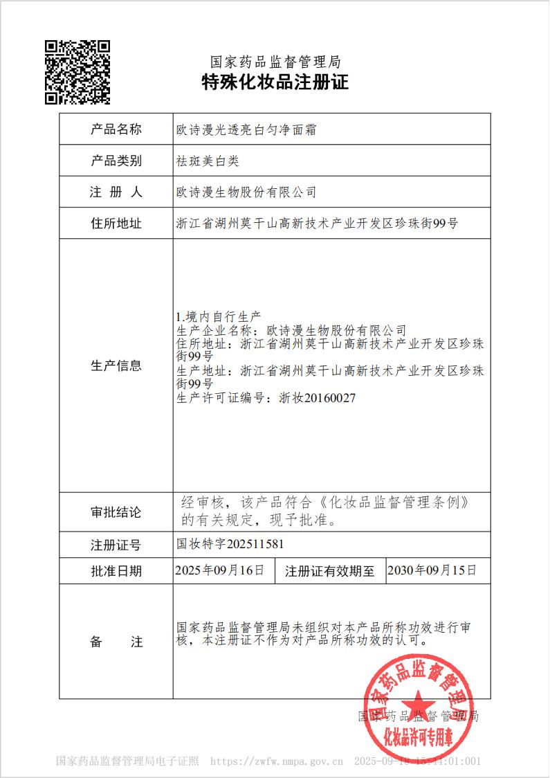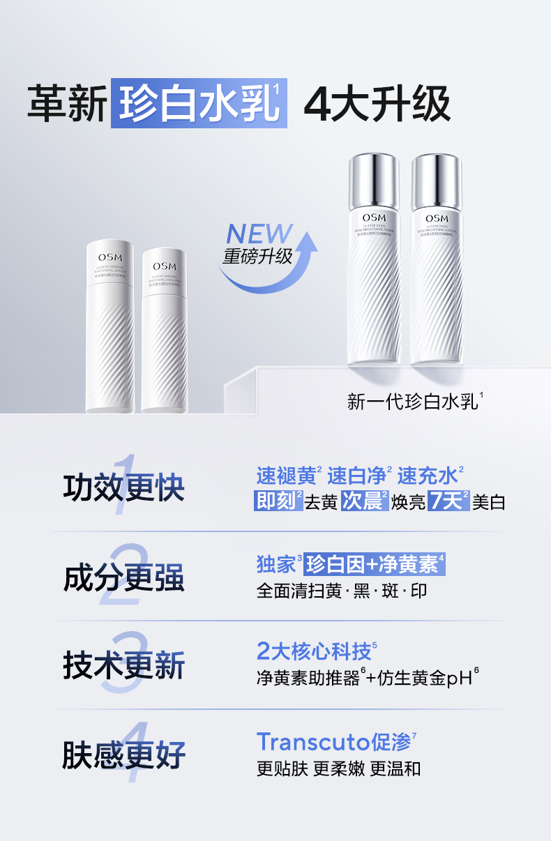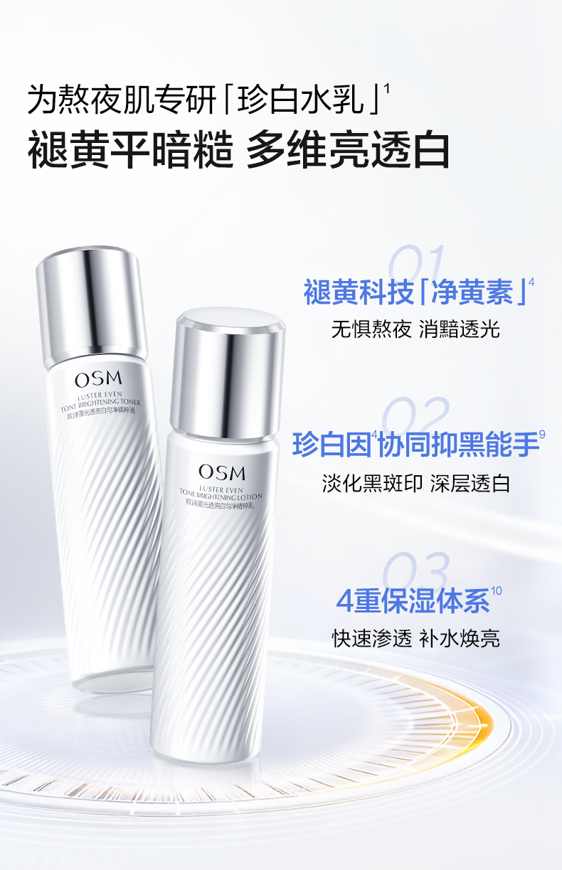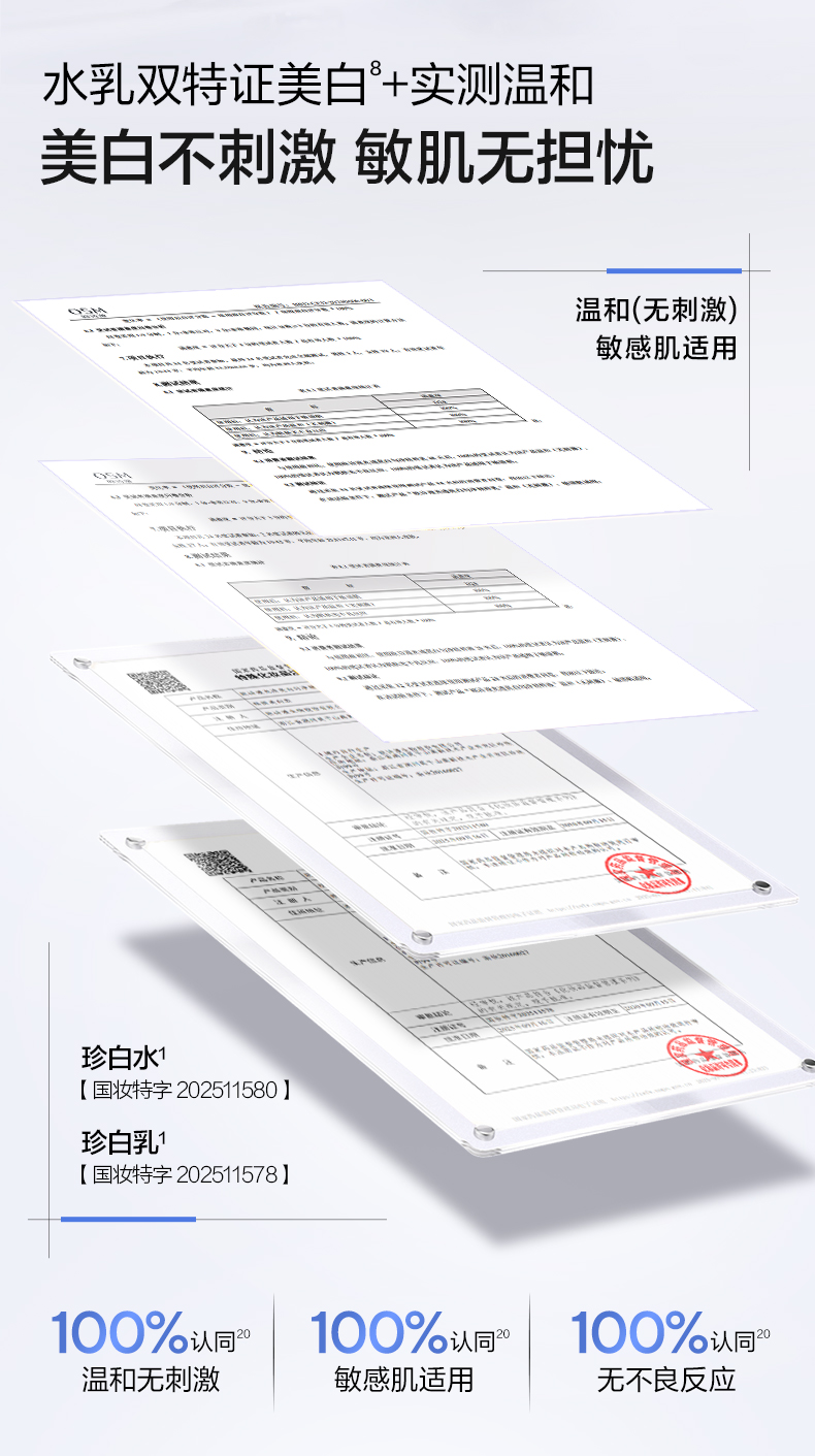 【新春限定】【拍1到手9件】欧诗漫光透亮白匀净珍白水乳美白淡斑