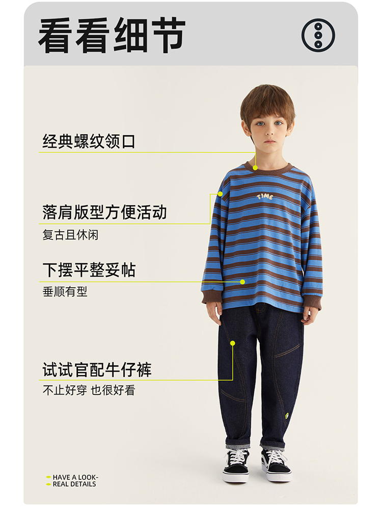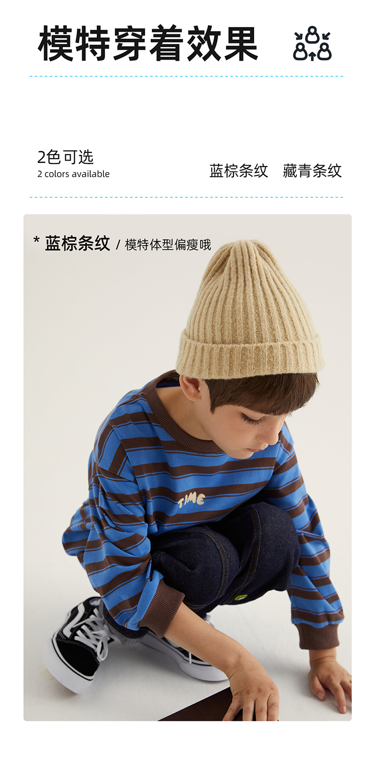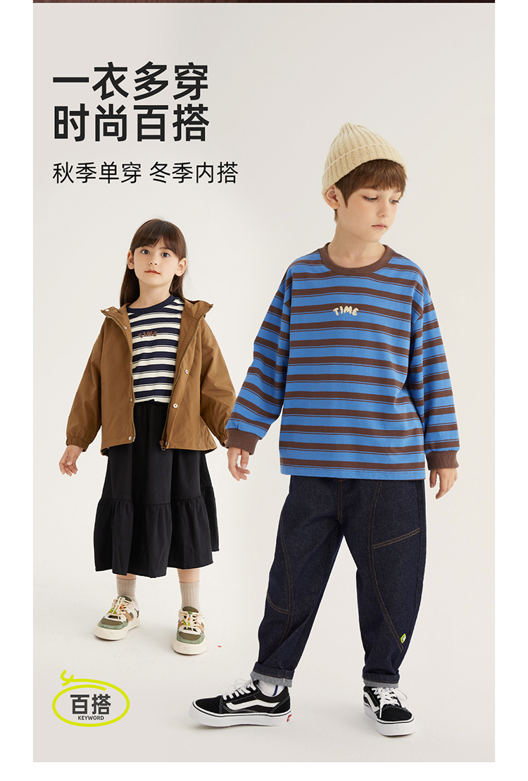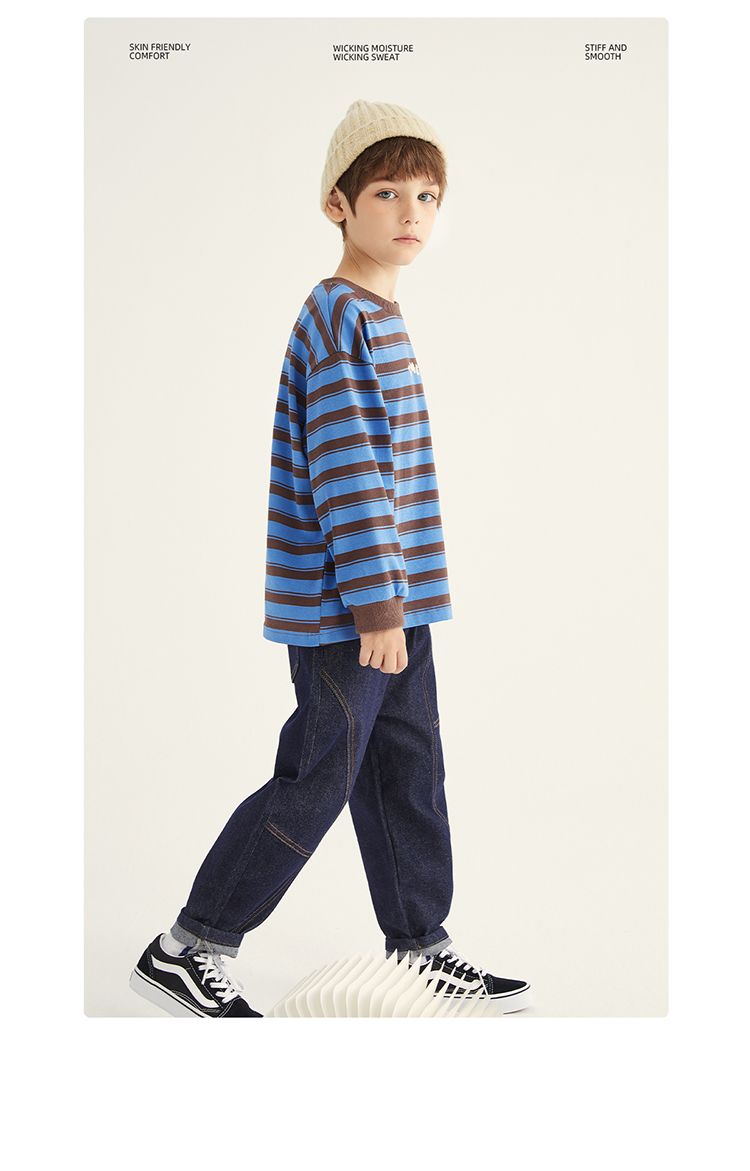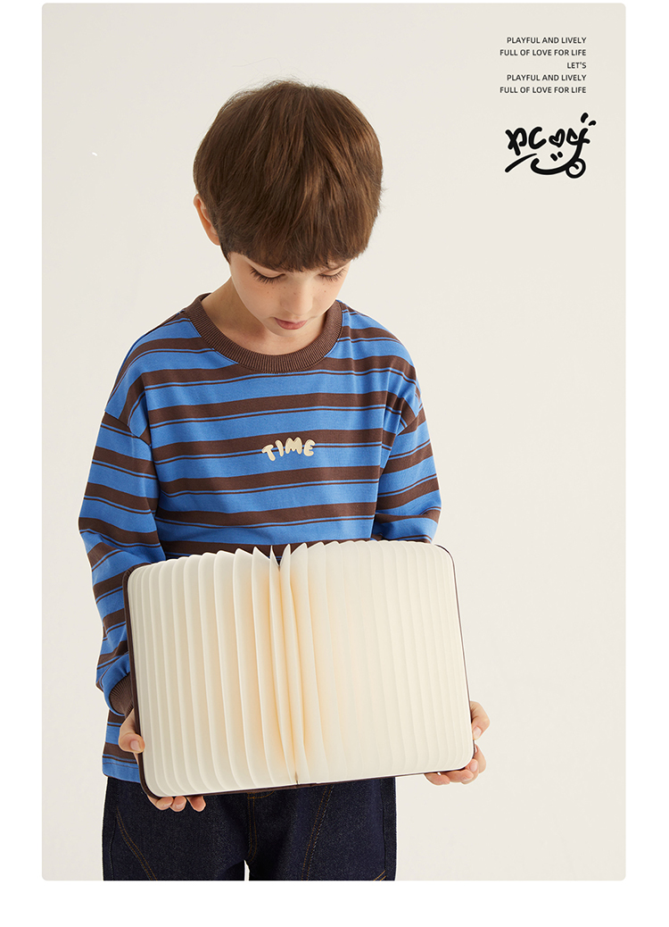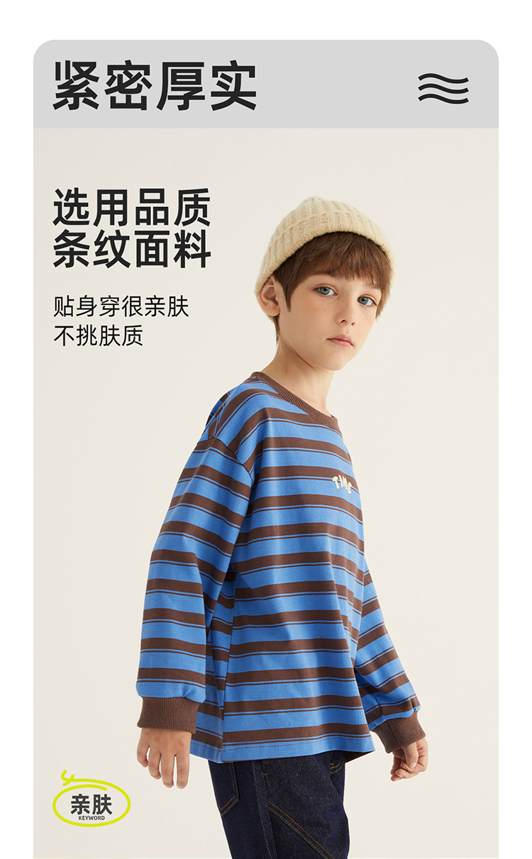 fx-【磨毛德绒 冬日保暖神器】儿童百搭德绒条纹打底T恤PDT2304