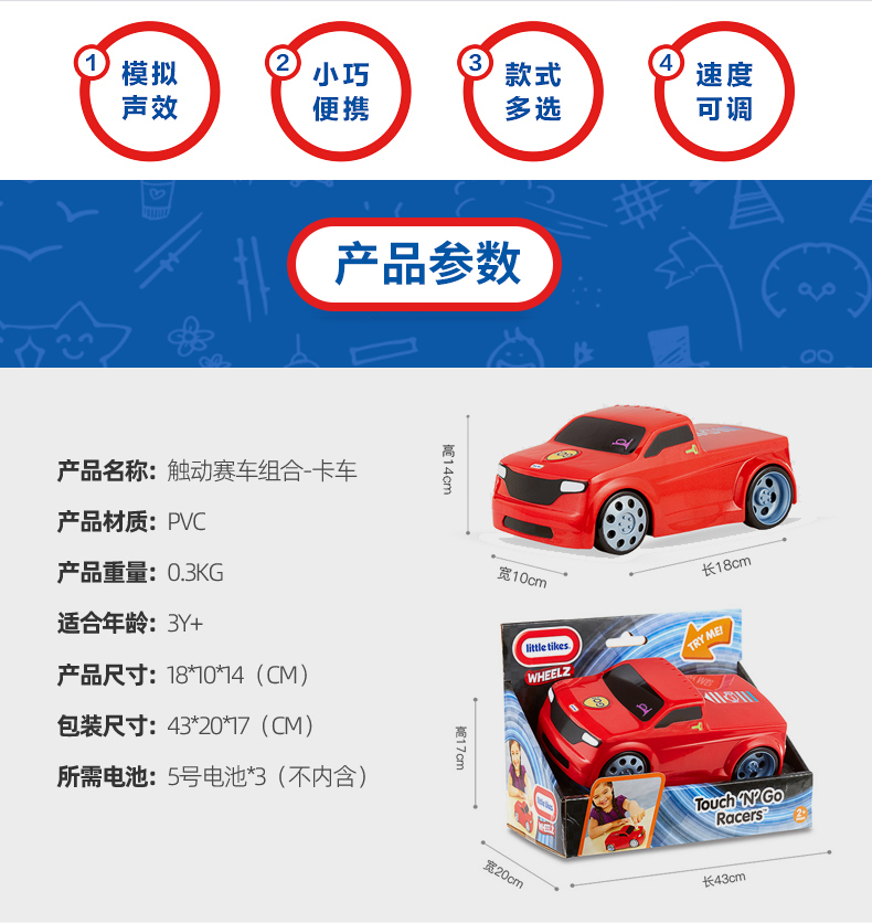 小泰克littletikes 触动赛车组合迷你玩具车幼儿汽车模型