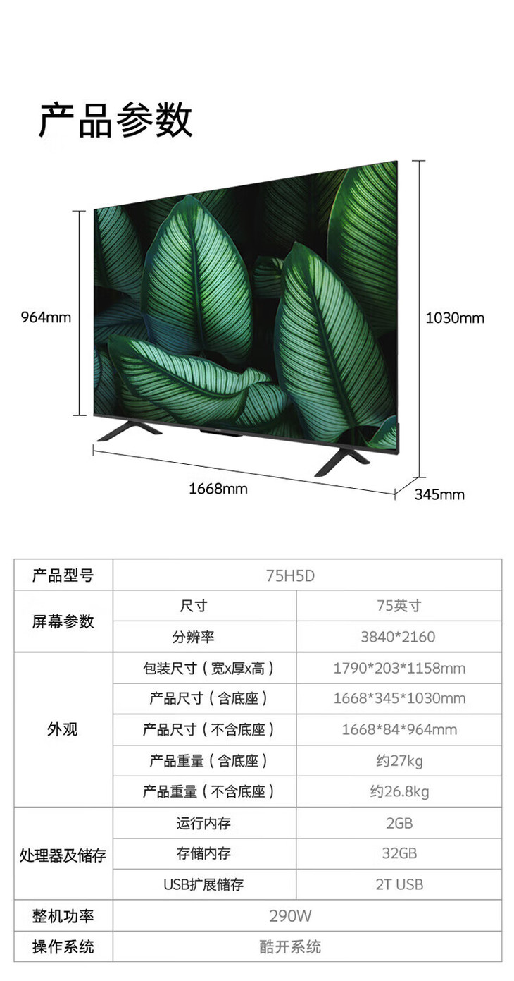创维(912667)75H5D 75吋/65/55英寸节能护眼智能电视机 线下商场同款85 75英寸 75H5D