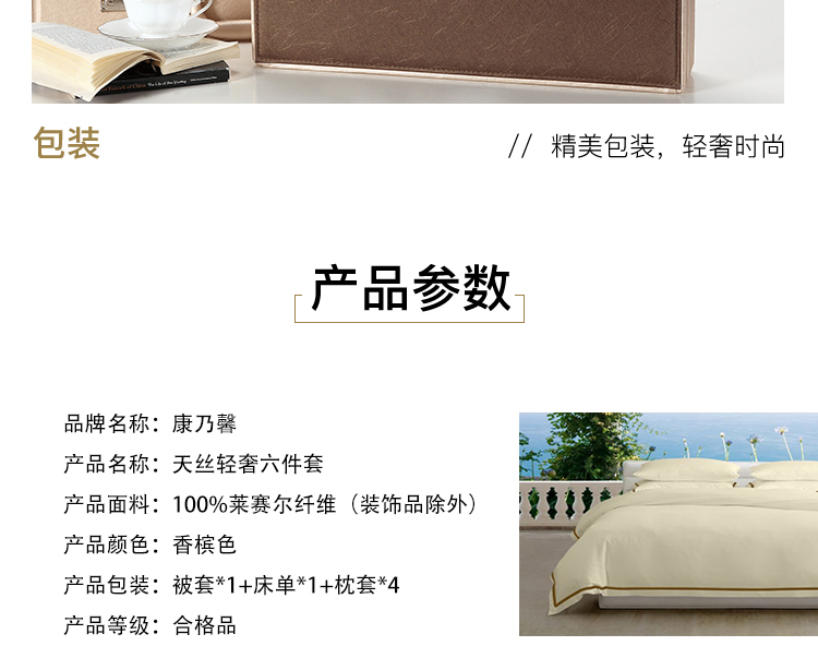 - 源自五星级酒店的奢华家纺品牌,康乃馨首次提出打造“酒店+家纺”的全新概念,将更为严格的五星级酒店纺织品品质标准与家纺相结合,完美诠释“酒店品质家纺”的舒适感受与奢华品味。