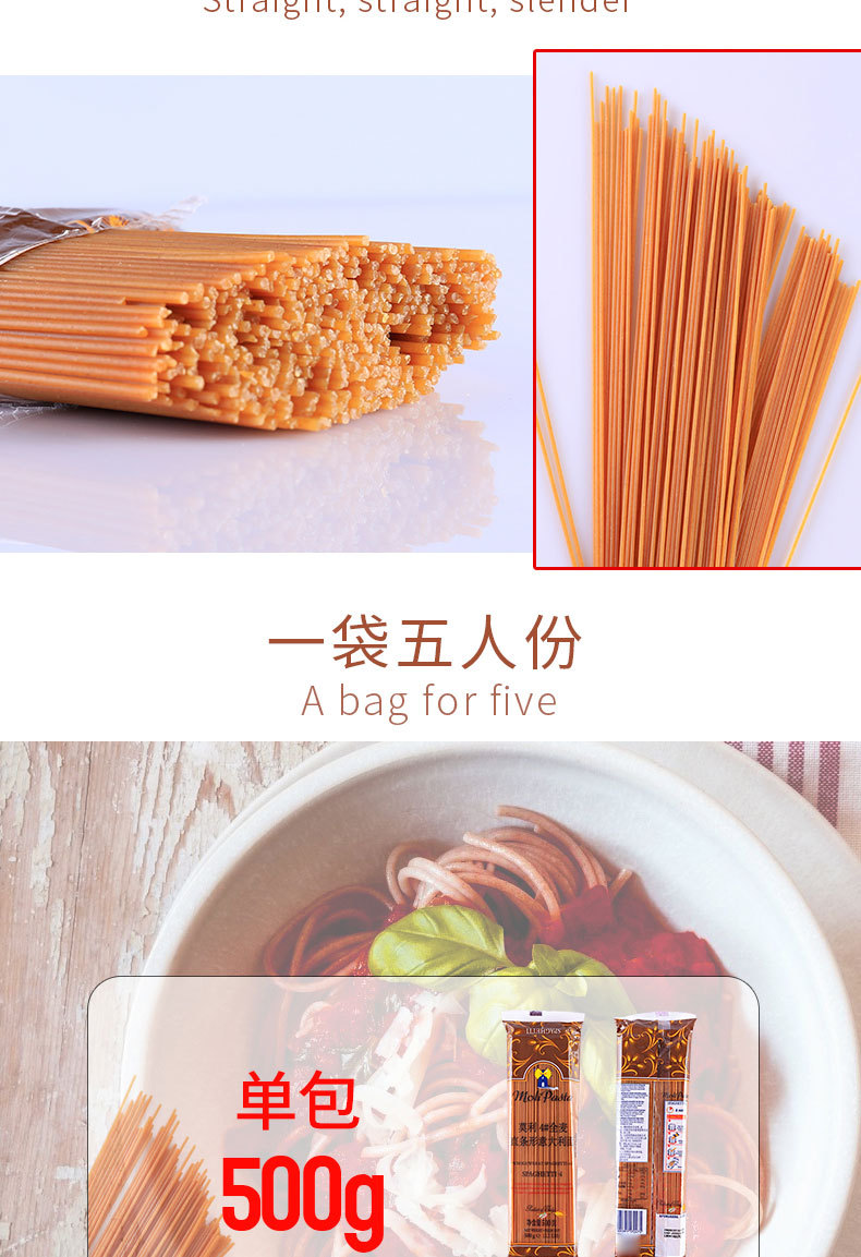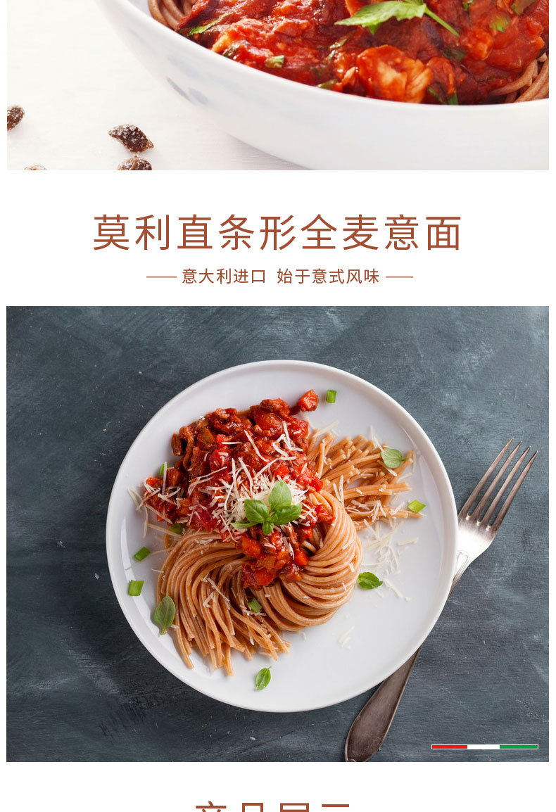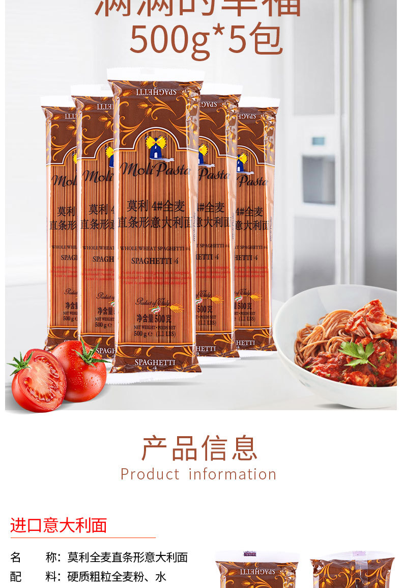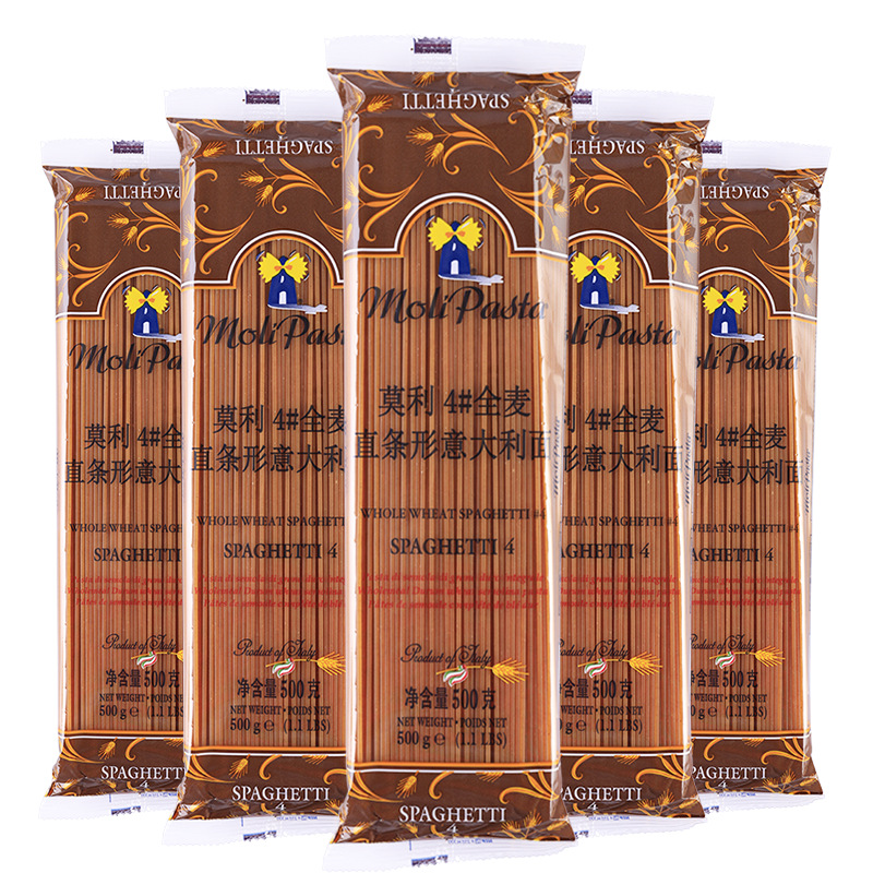 【中欧班列精选5袋】 意大利莫利全麦意大利面条 原装进口家用速食粗粮意面意粉通心粉意大利面条 500g/袋
