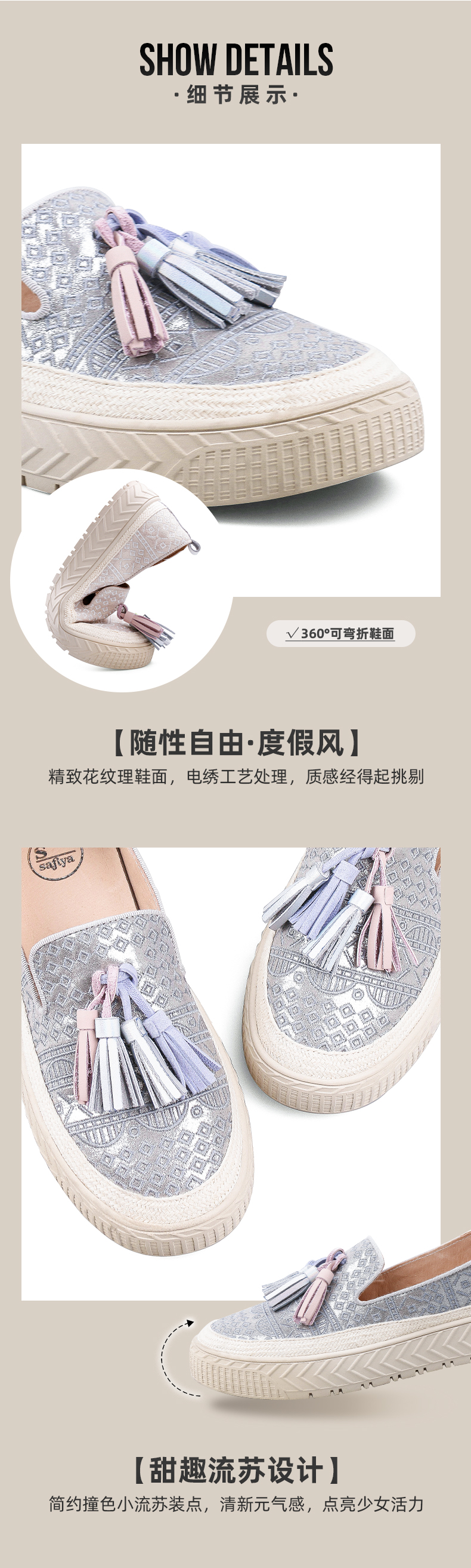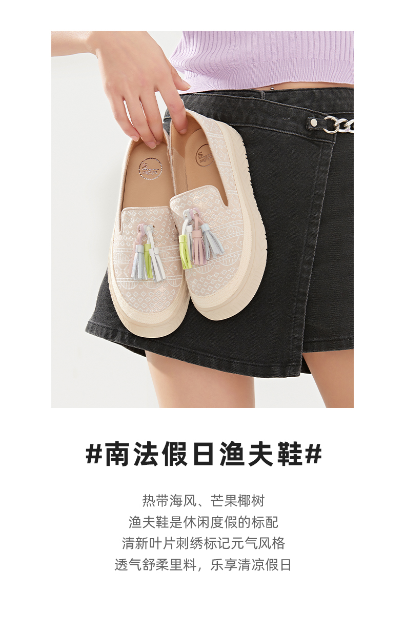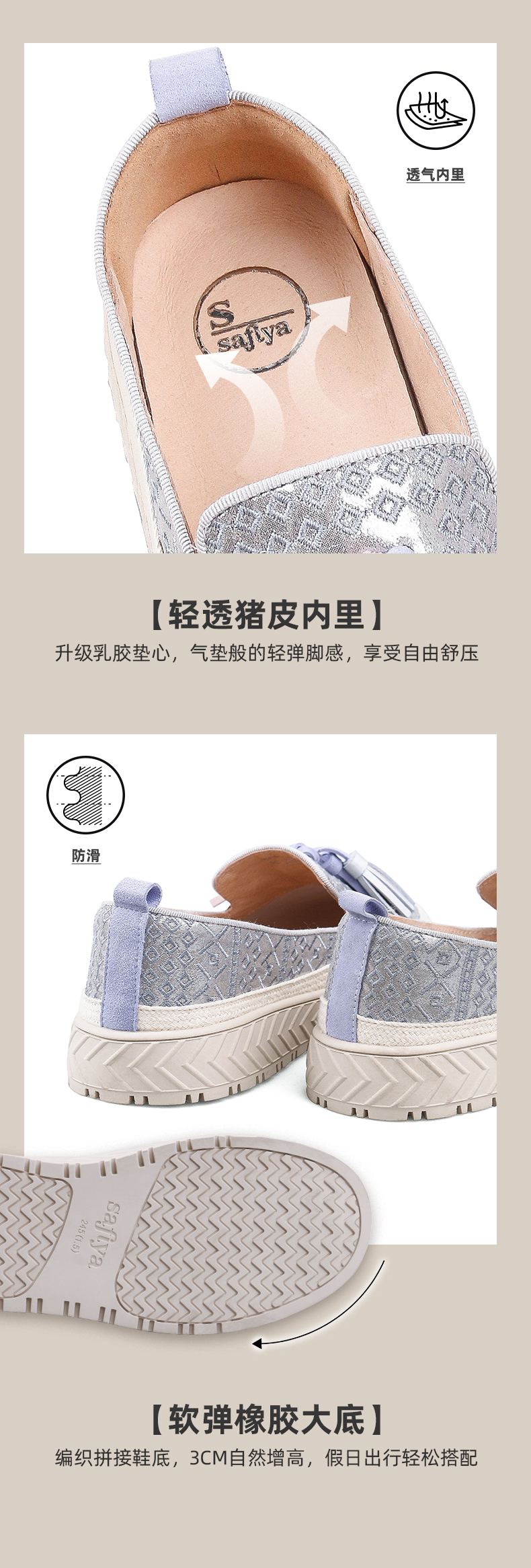 Safiya索菲娅 2023春季新品闲适度假风休闲流苏软底增高渔夫鞋 SF31111150
