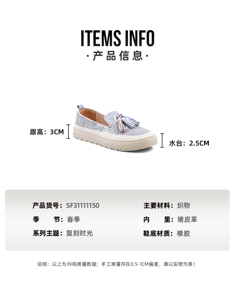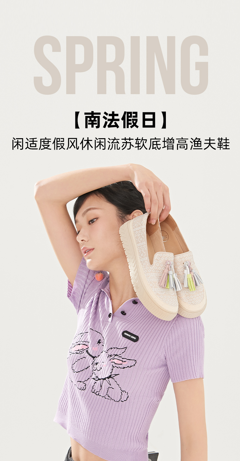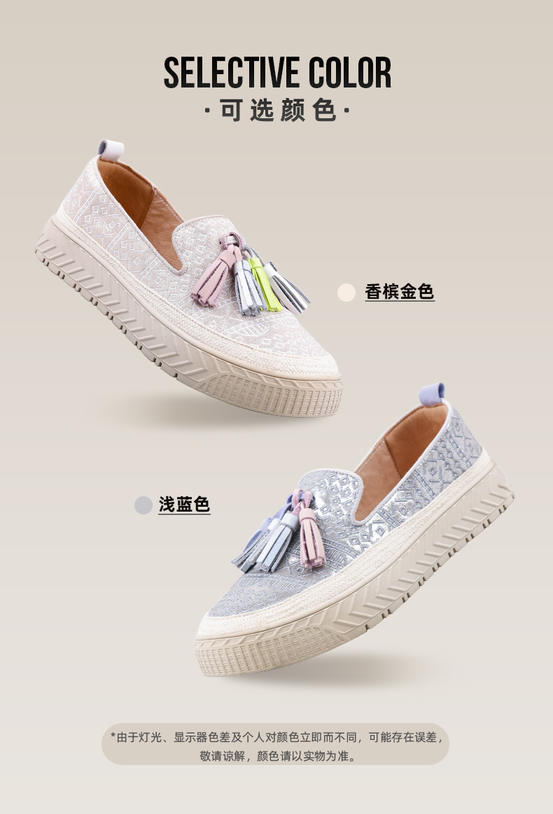 Safiya索菲娅 2023春季新品闲适度假风休闲流苏软底增高渔夫鞋 SF31111150