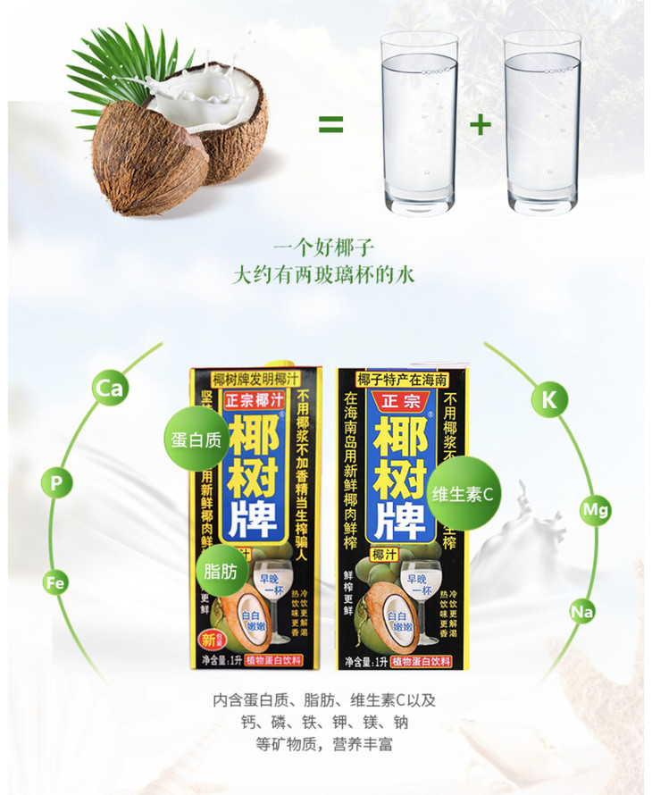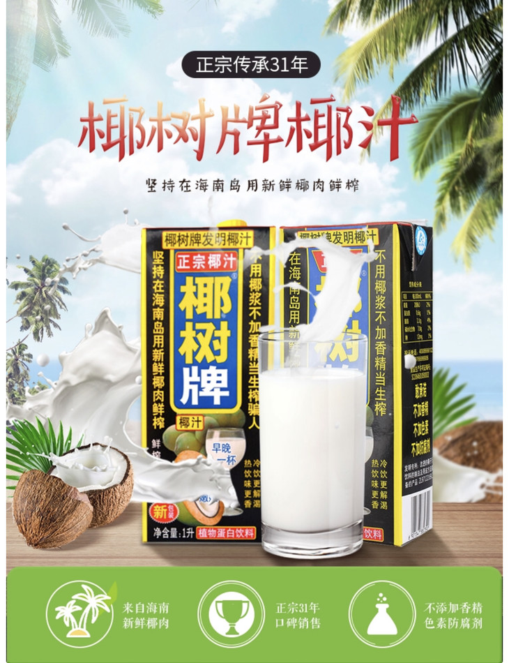 椰树椰汁1L天然健康饮品新鲜椰子原汁