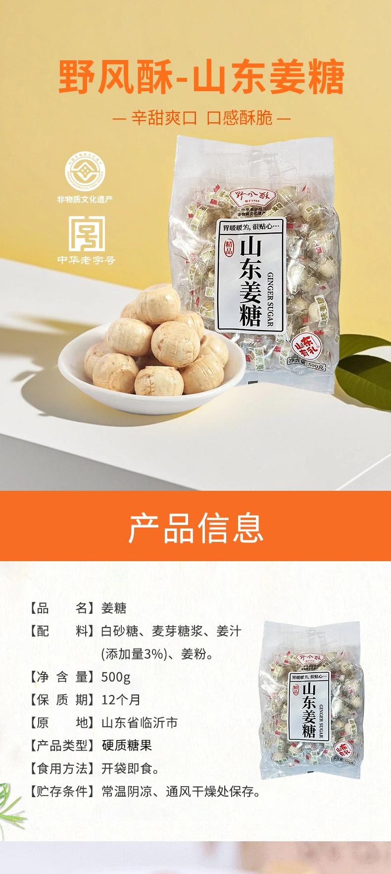 野风酥姜糖500g