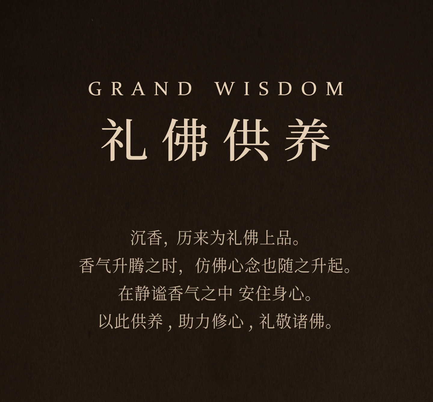 - 以沉香为媒,大智慧沉香述说中国人香事生活中的美与智慧。 将沉香与生俱来的雅与趣、净美的生活禅意, 融入现代人的生活场景。