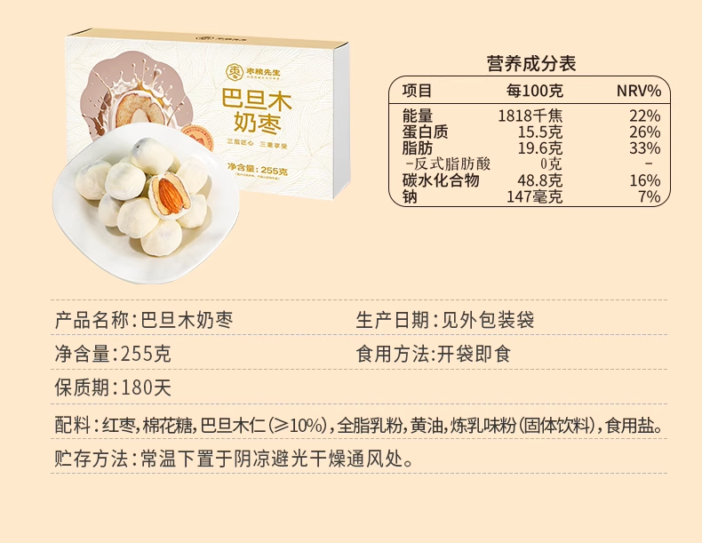 【2025.12.19】枣粮先生巴旦木奶枣255g/盒*3