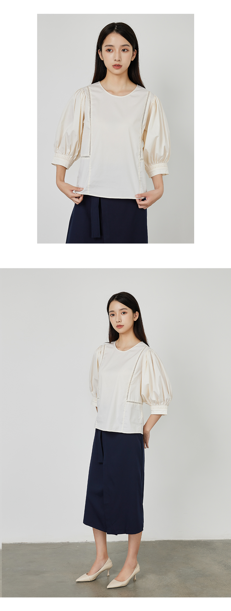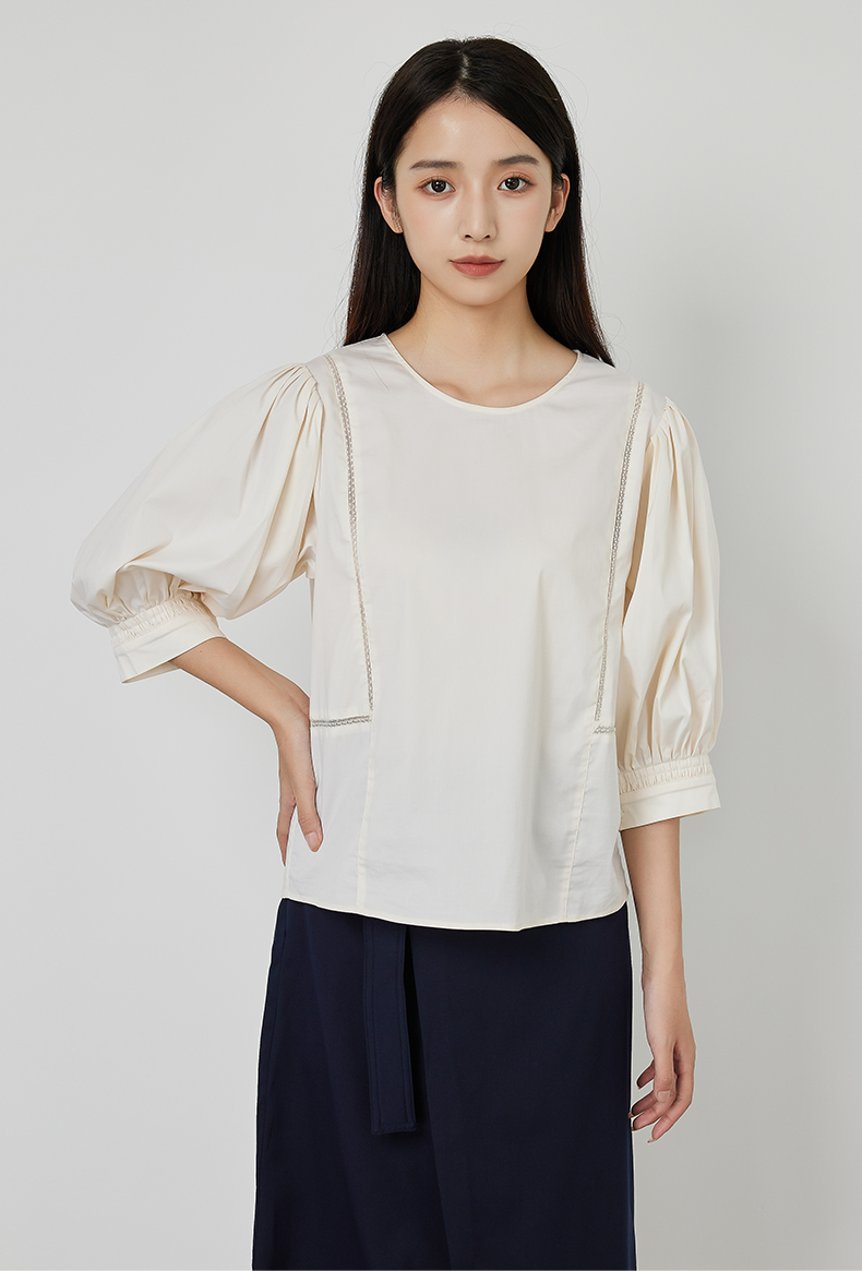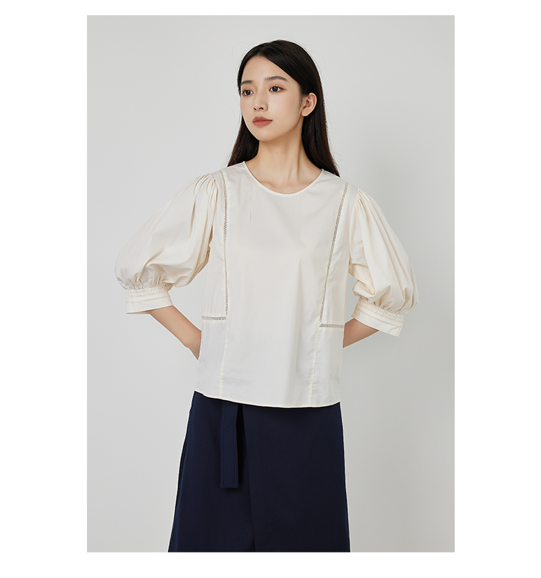 NUTS商场同款夏款时尚圆领气质宽松中袖套头衫女231012190B