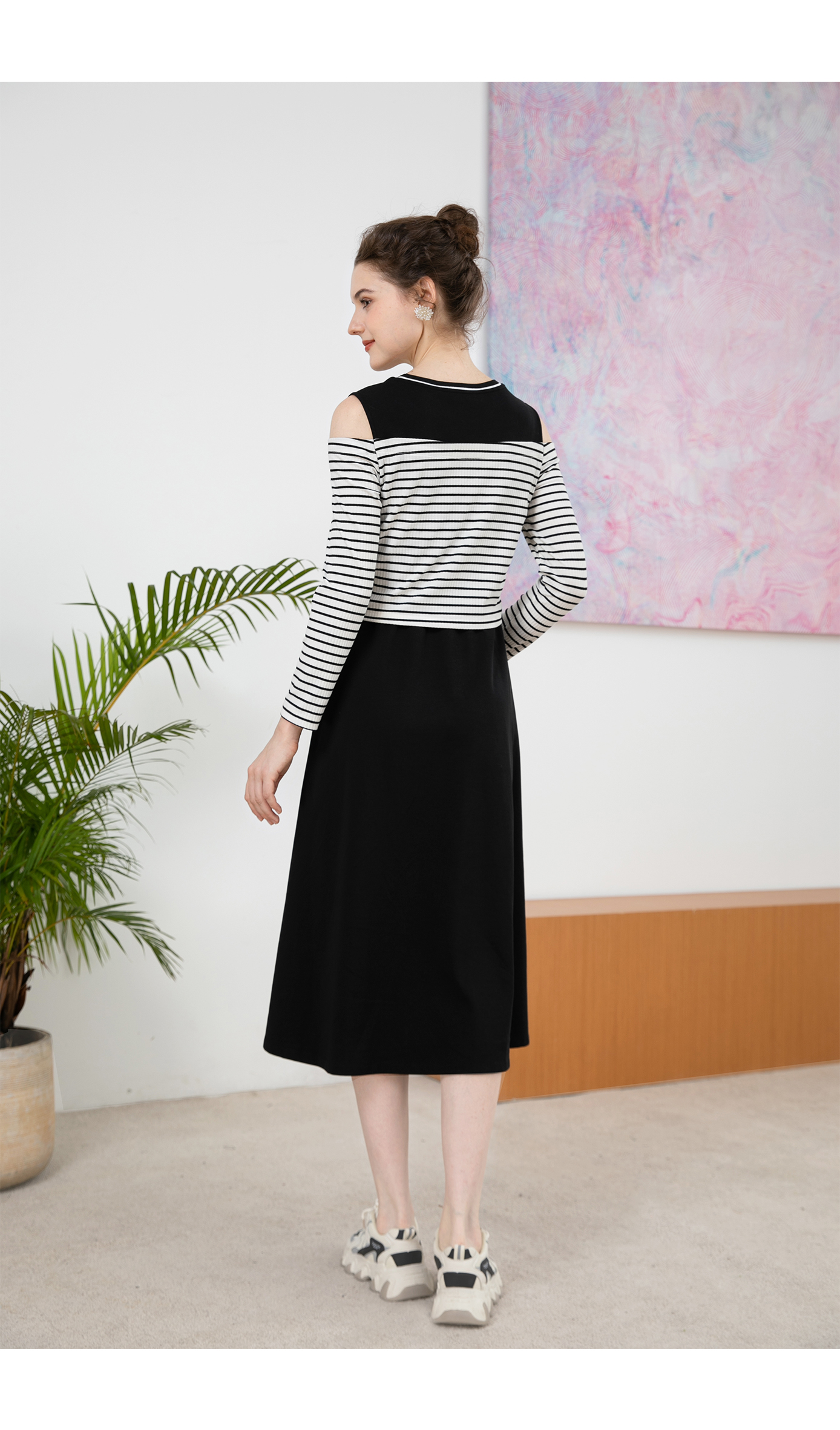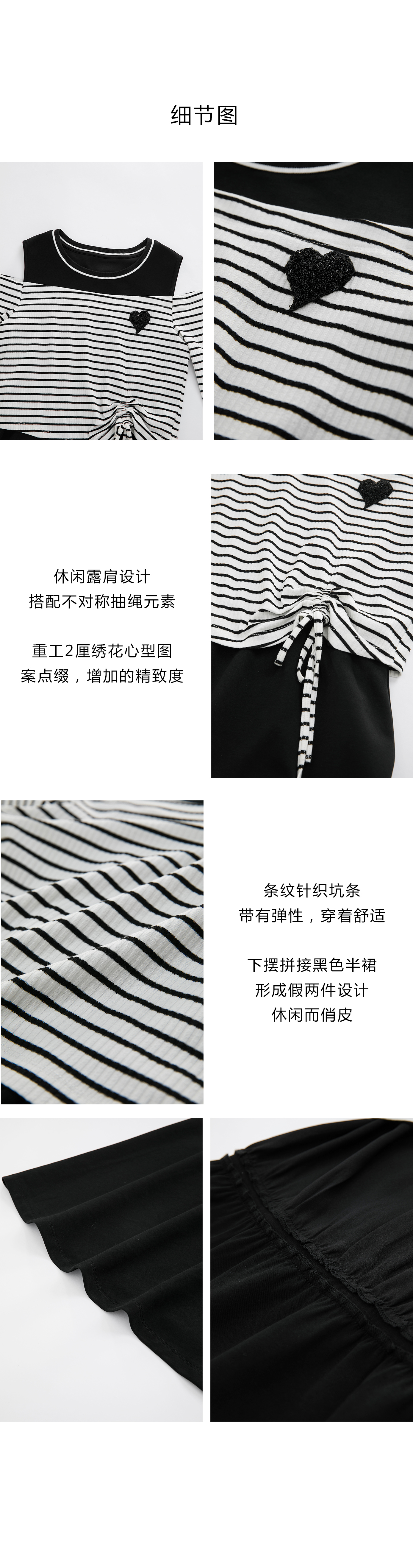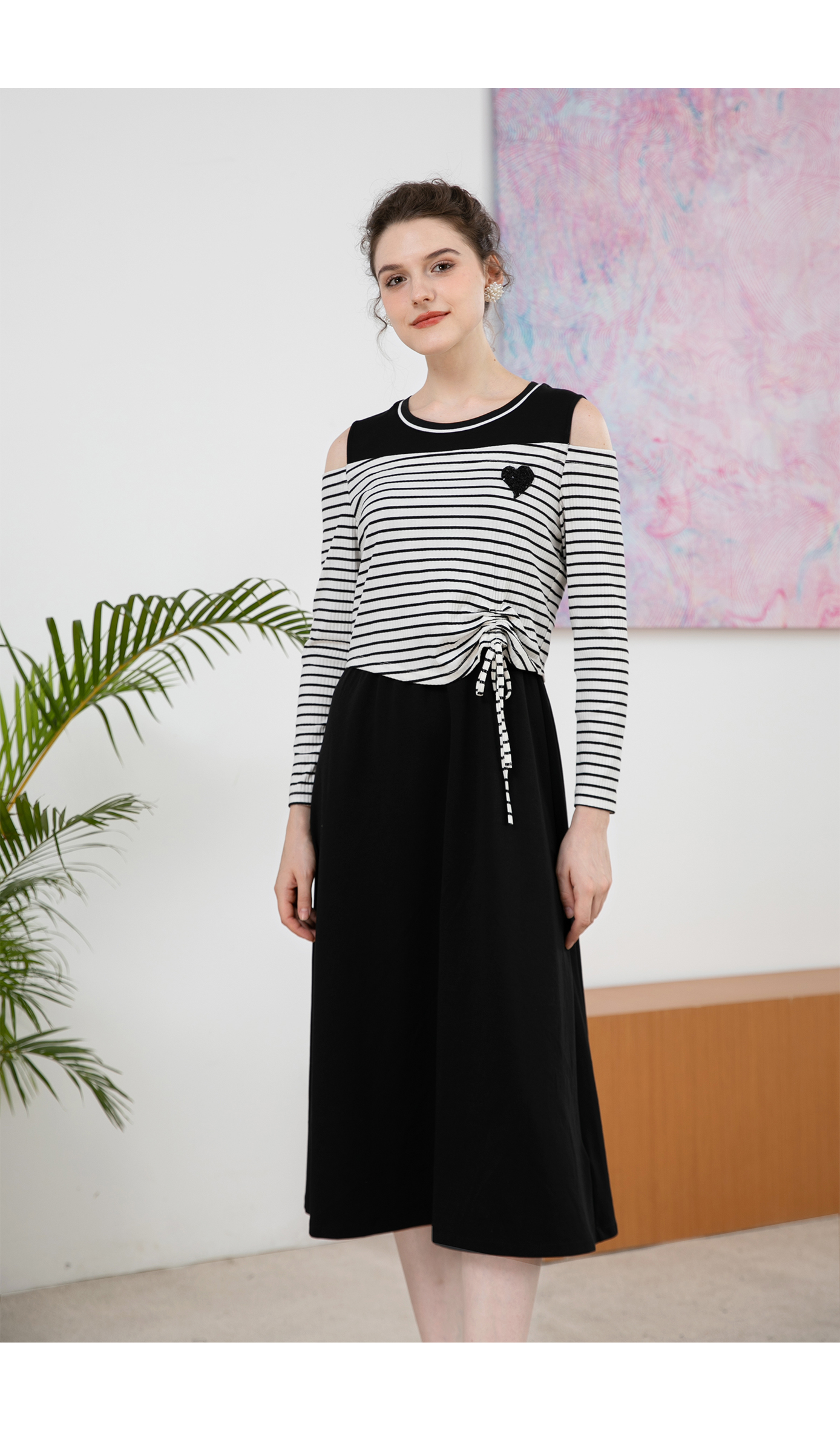 司歌时尚休闲假两件连衣裙露肩长袖弹力拼接A901004Y