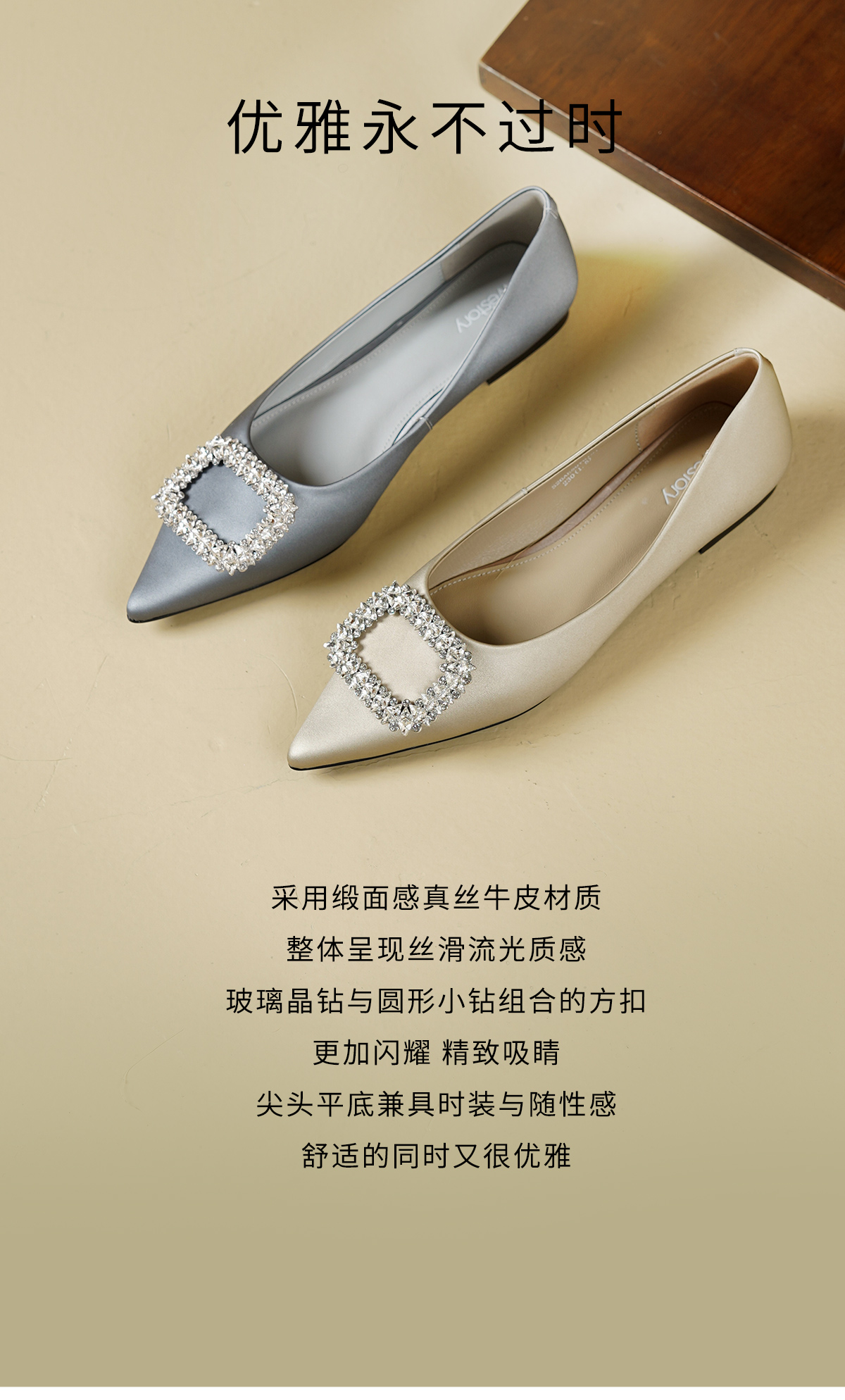 Westory2026年春季尖头平底真丝牛皮单鞋通勤休闲百搭浅口鞋S26AE50761