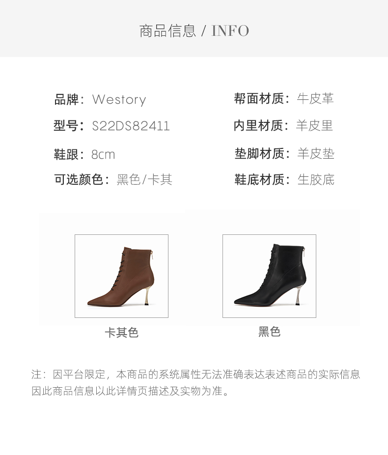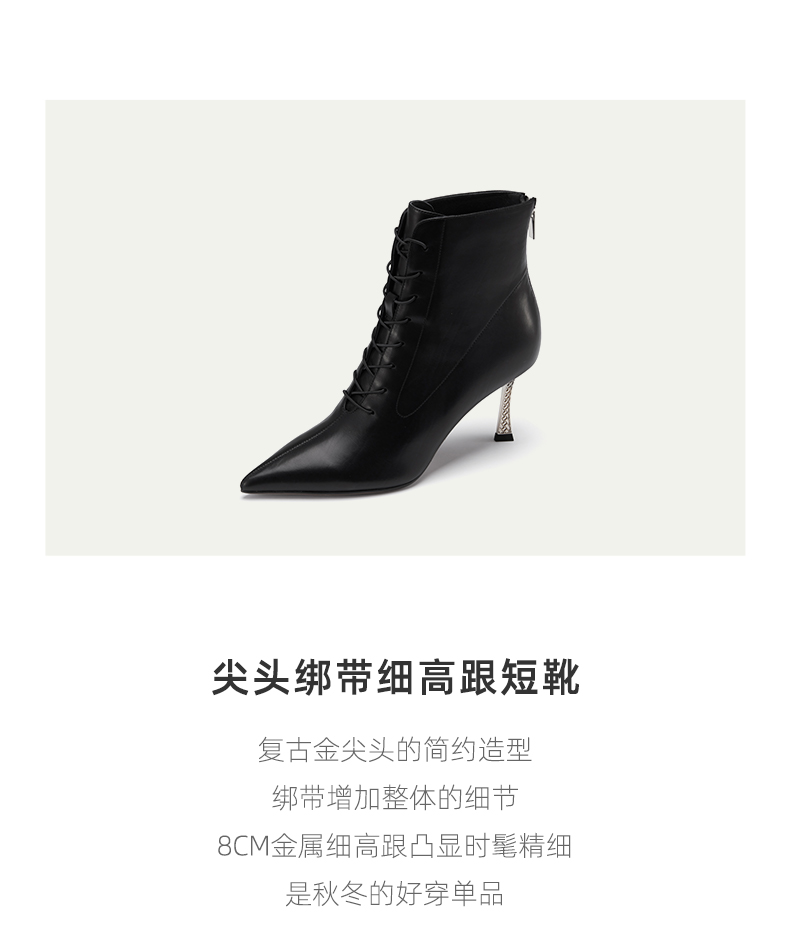 westory超火冬尖头洋气绑带瘦瘦靴法式小短靴显高及踝靴82181
