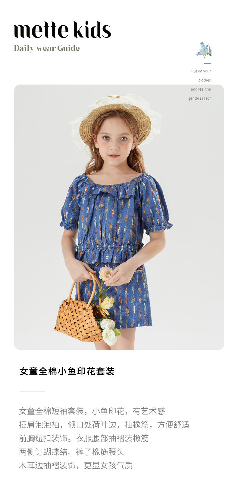 mettekids女童装时髦套装洋气2022新款儿童炸街短袖T恤夏季短裤