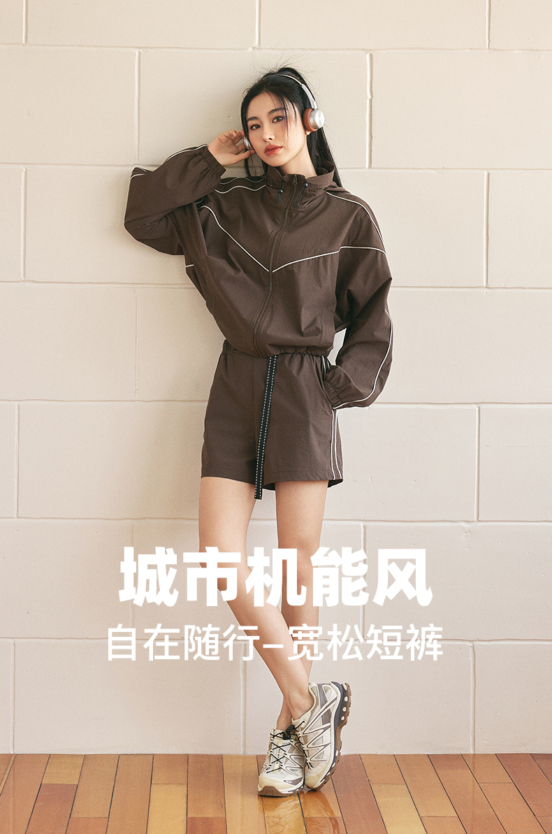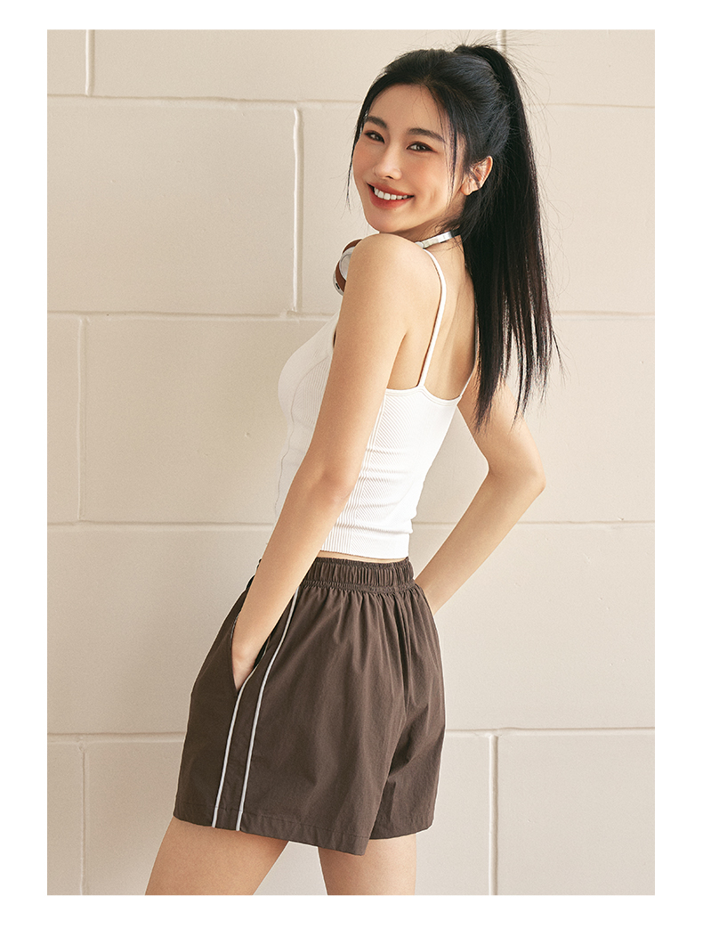 Leorrey/乐拉休闲复古简约宽松高腰工装裤跑步运动裤短裤DK6189