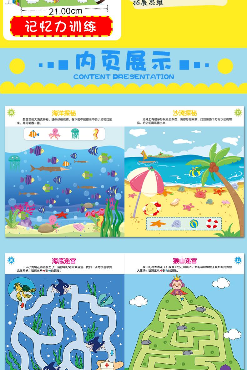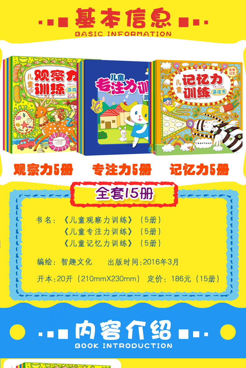 15册儿童专注力观察力记忆逻辑思维能力训练书图画捉迷藏找不同迷宫书益智游戏书3-4-5-6岁宝宝启蒙早教书全脑开发数学培养幼儿书