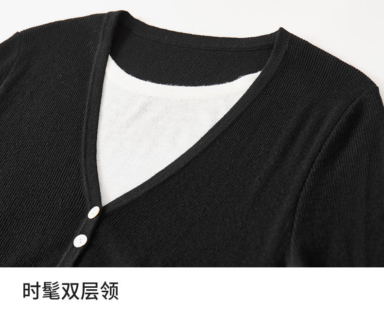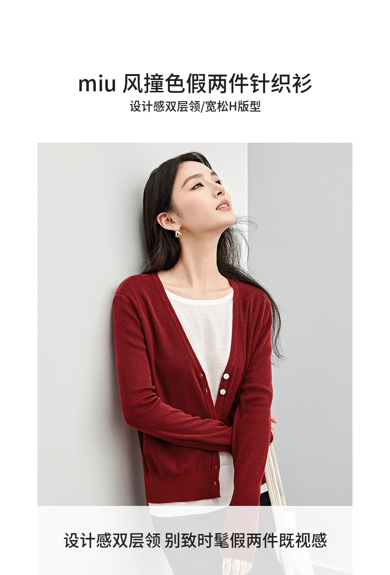 【内购】尚都比拉时髦知识分子miu风撞色假两件含绵羊毛针织假两件上衣-W51H57986