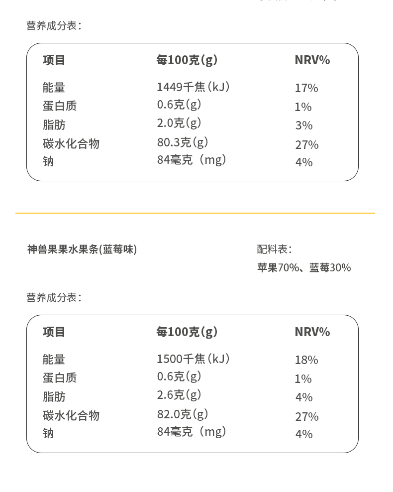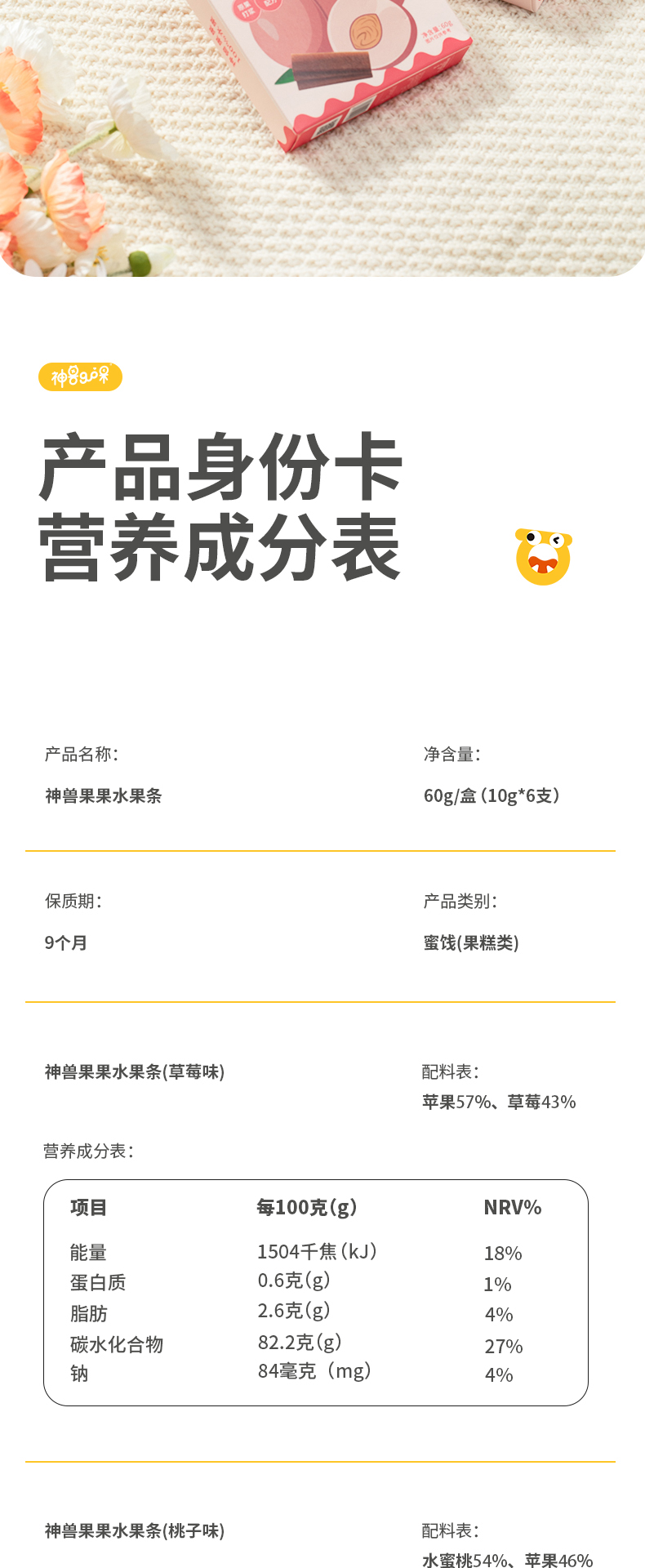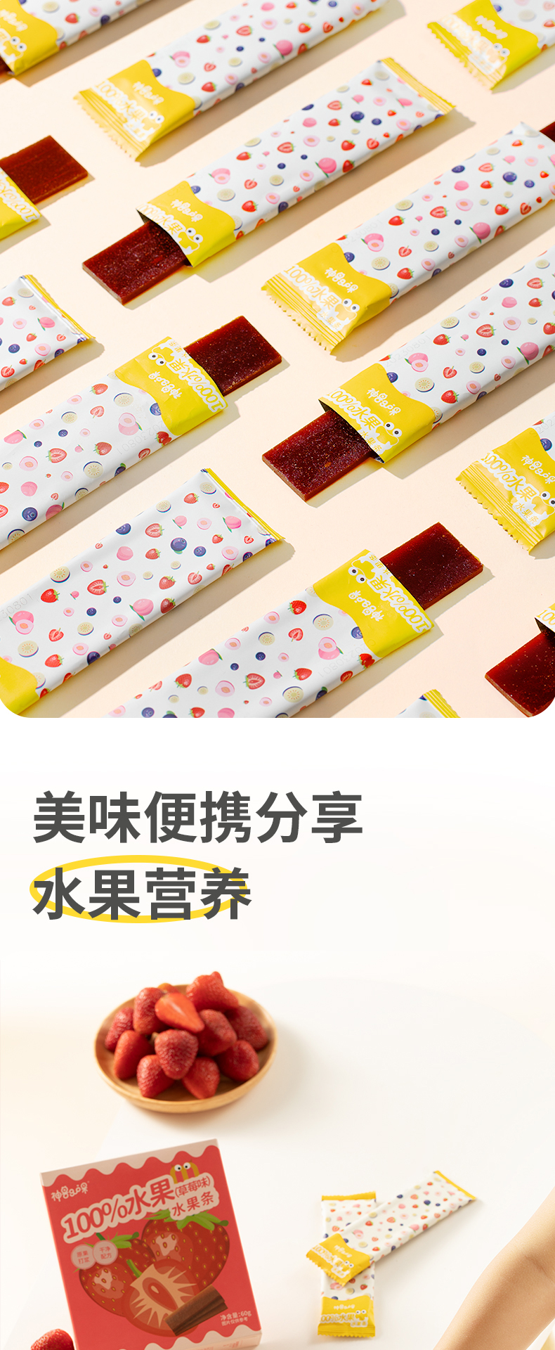 神兽果果 水果条 宝宝健康果肉脯条婴儿童幼儿 60g 1岁+(新旧包装随机发)
