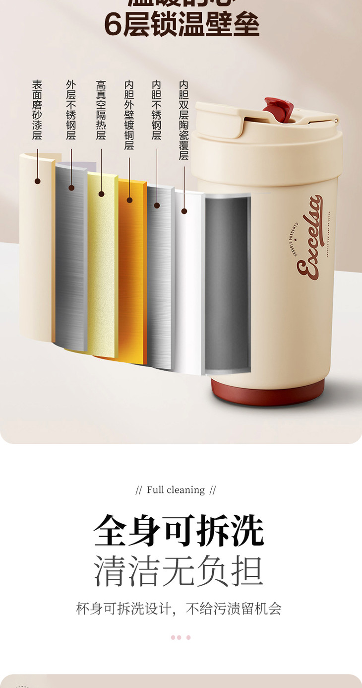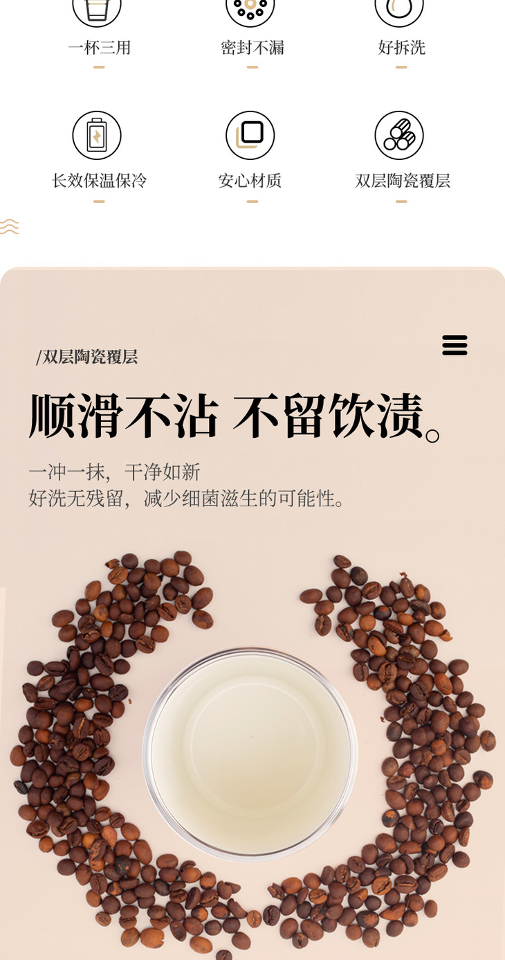 【苏泊尔】晶瓷一盖双饮杯保温杯摩登