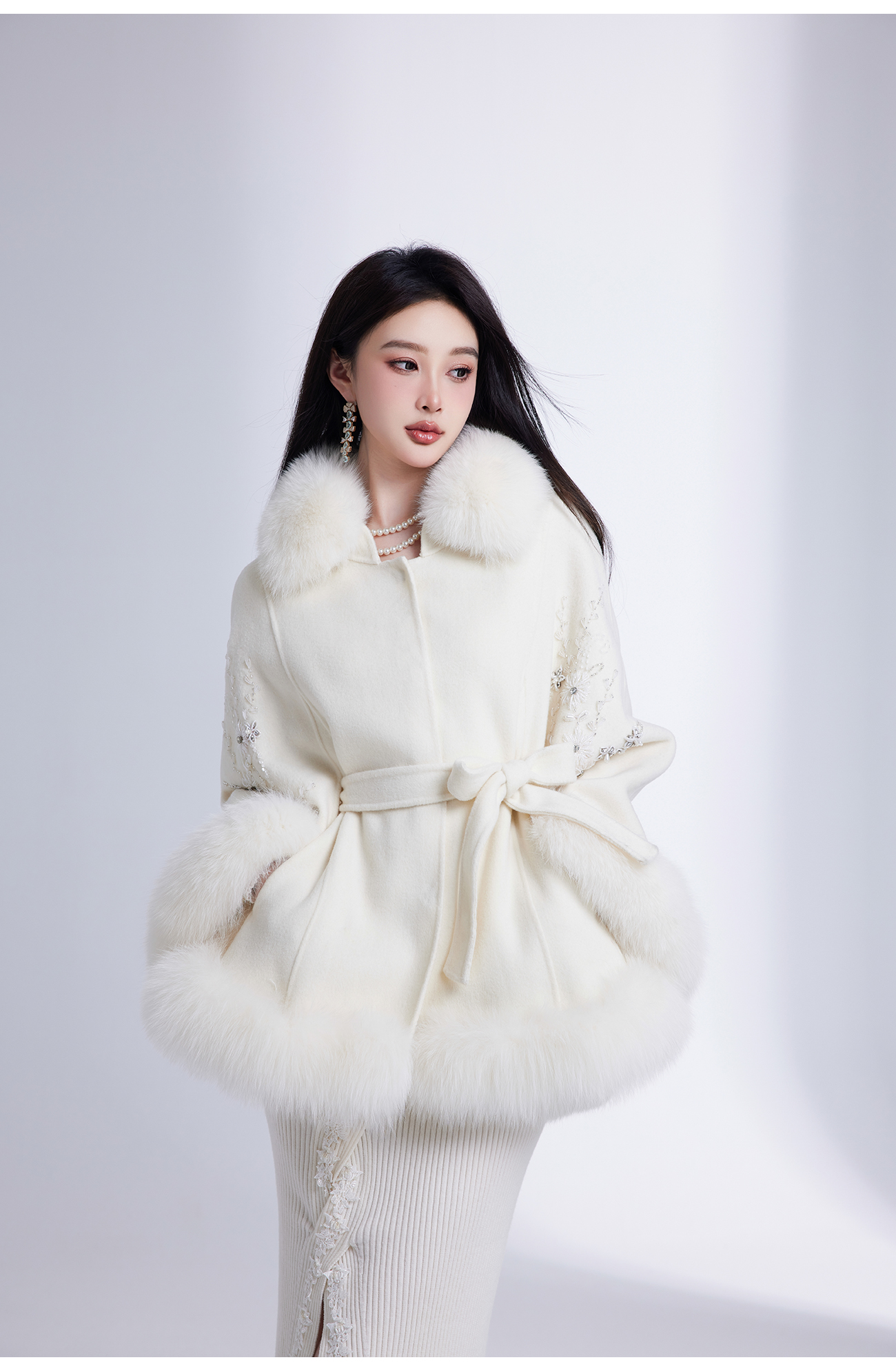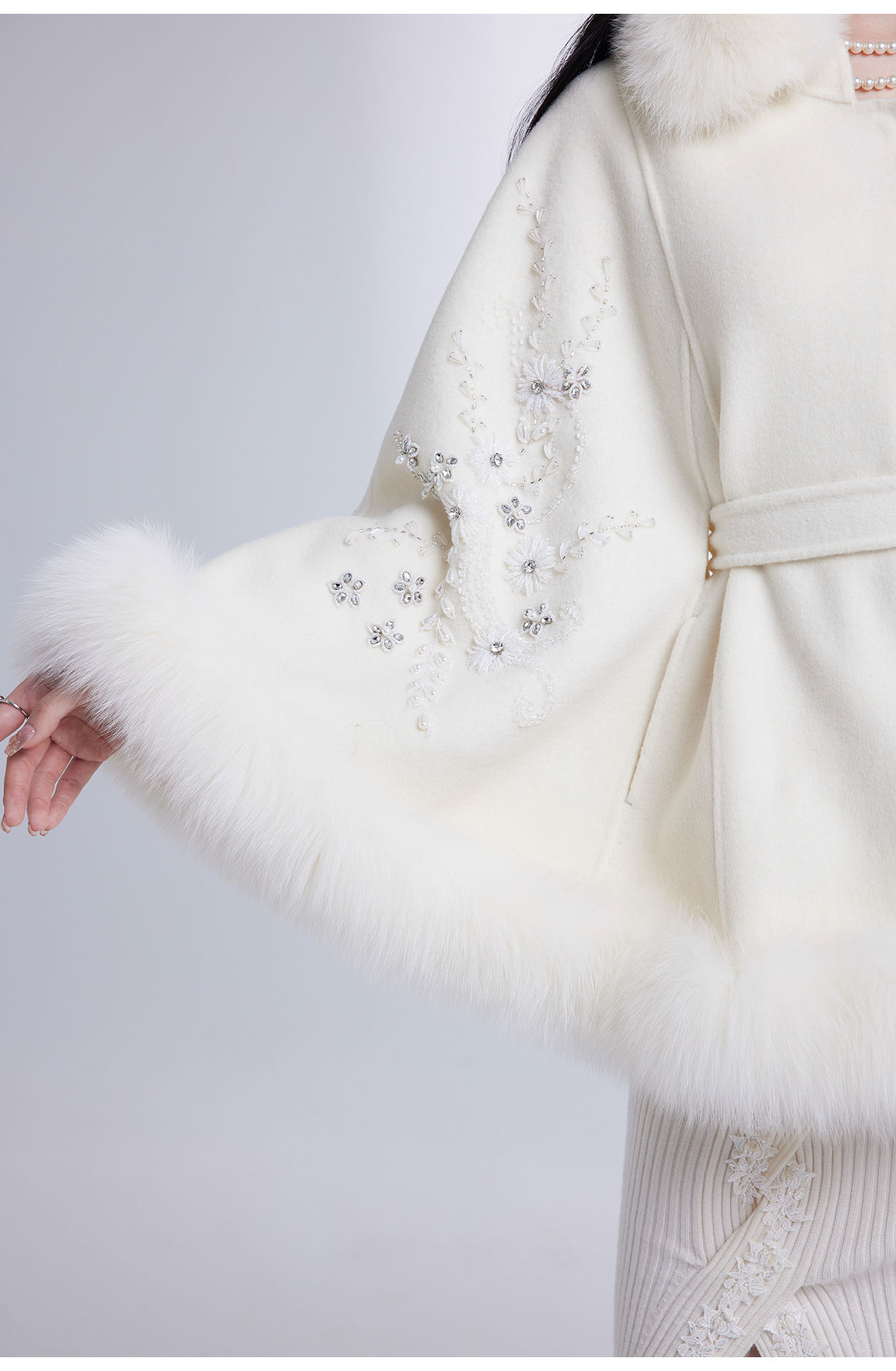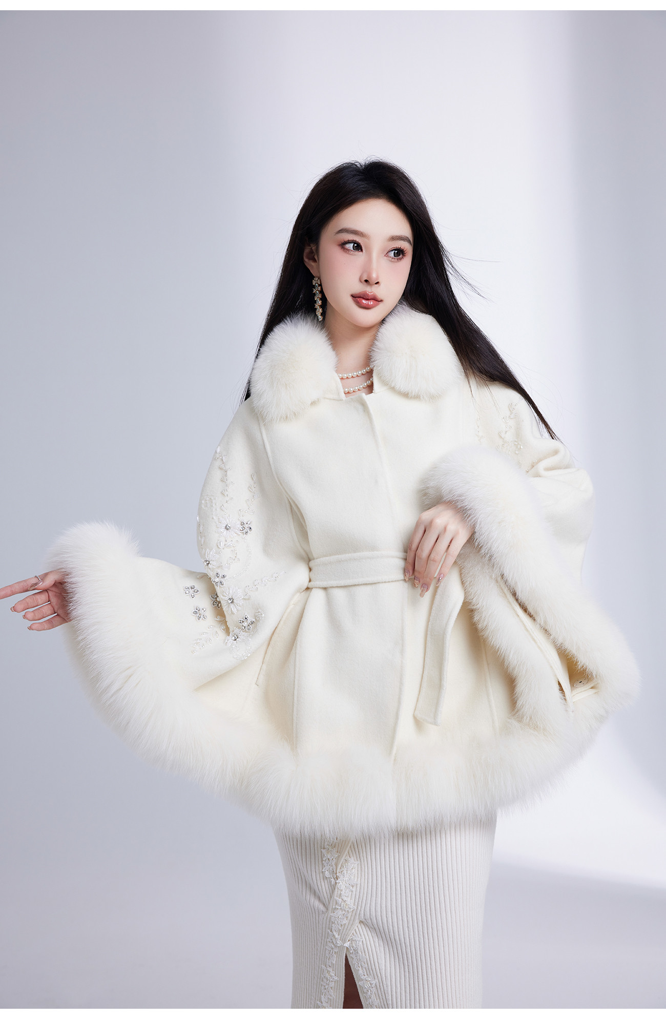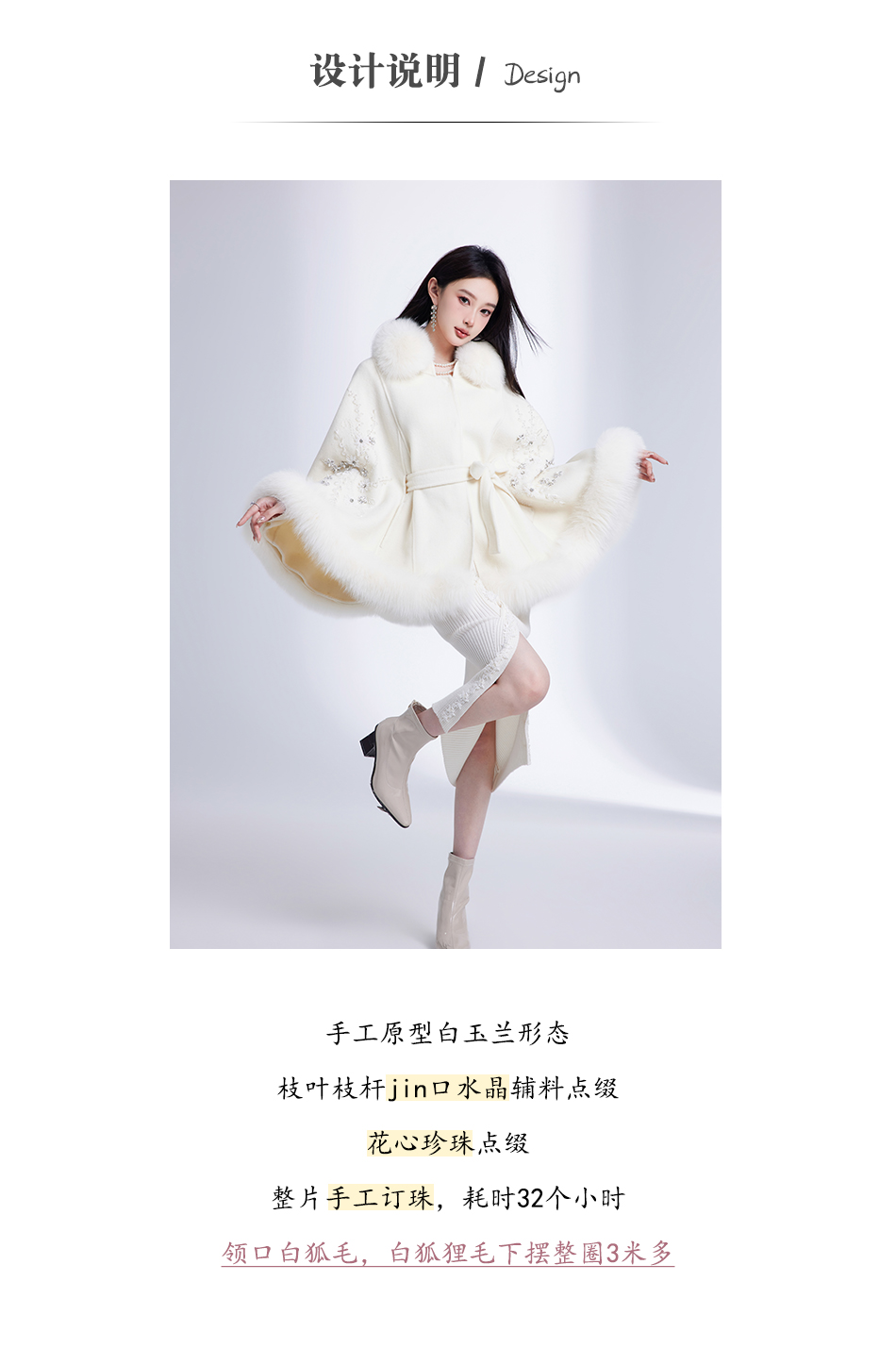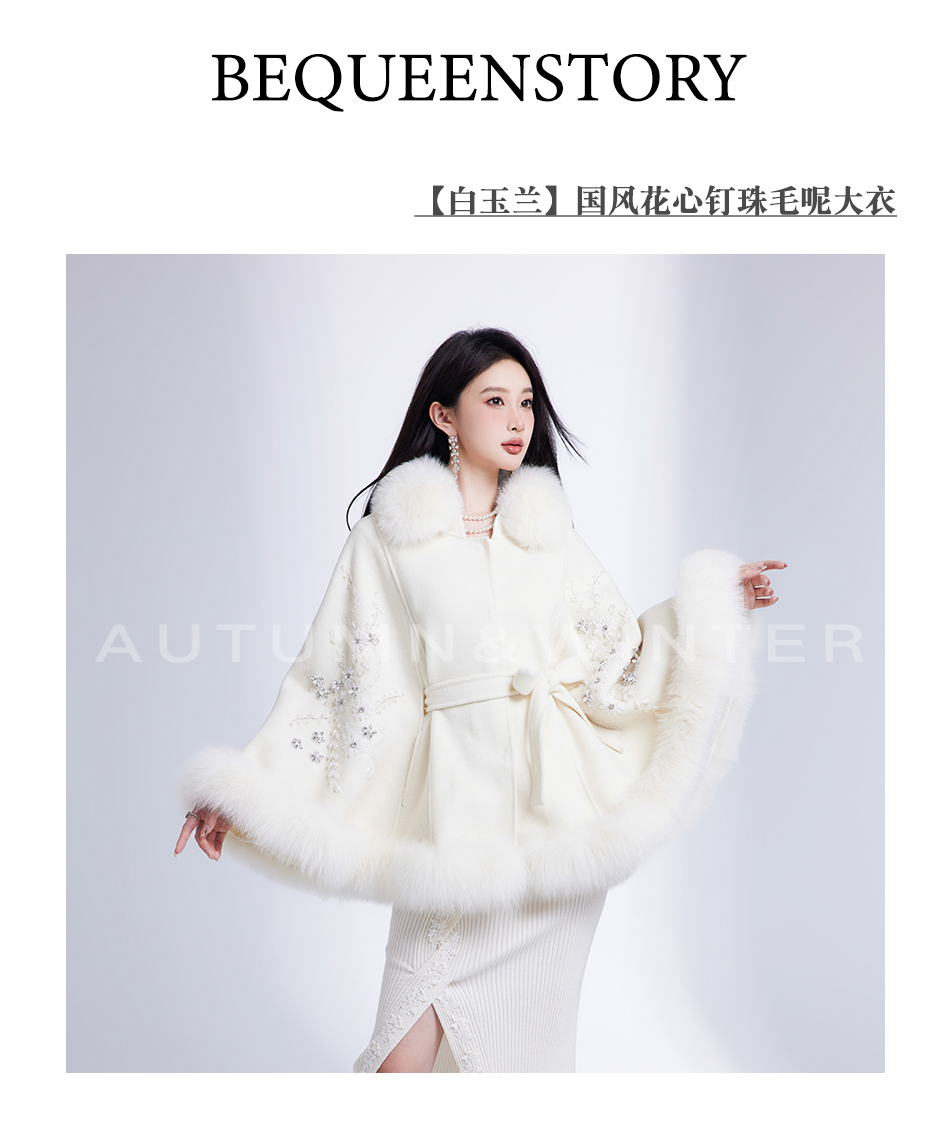 【年终福利,不退不换】【白玉兰】国风花心钉珠宽松毛呢大衣