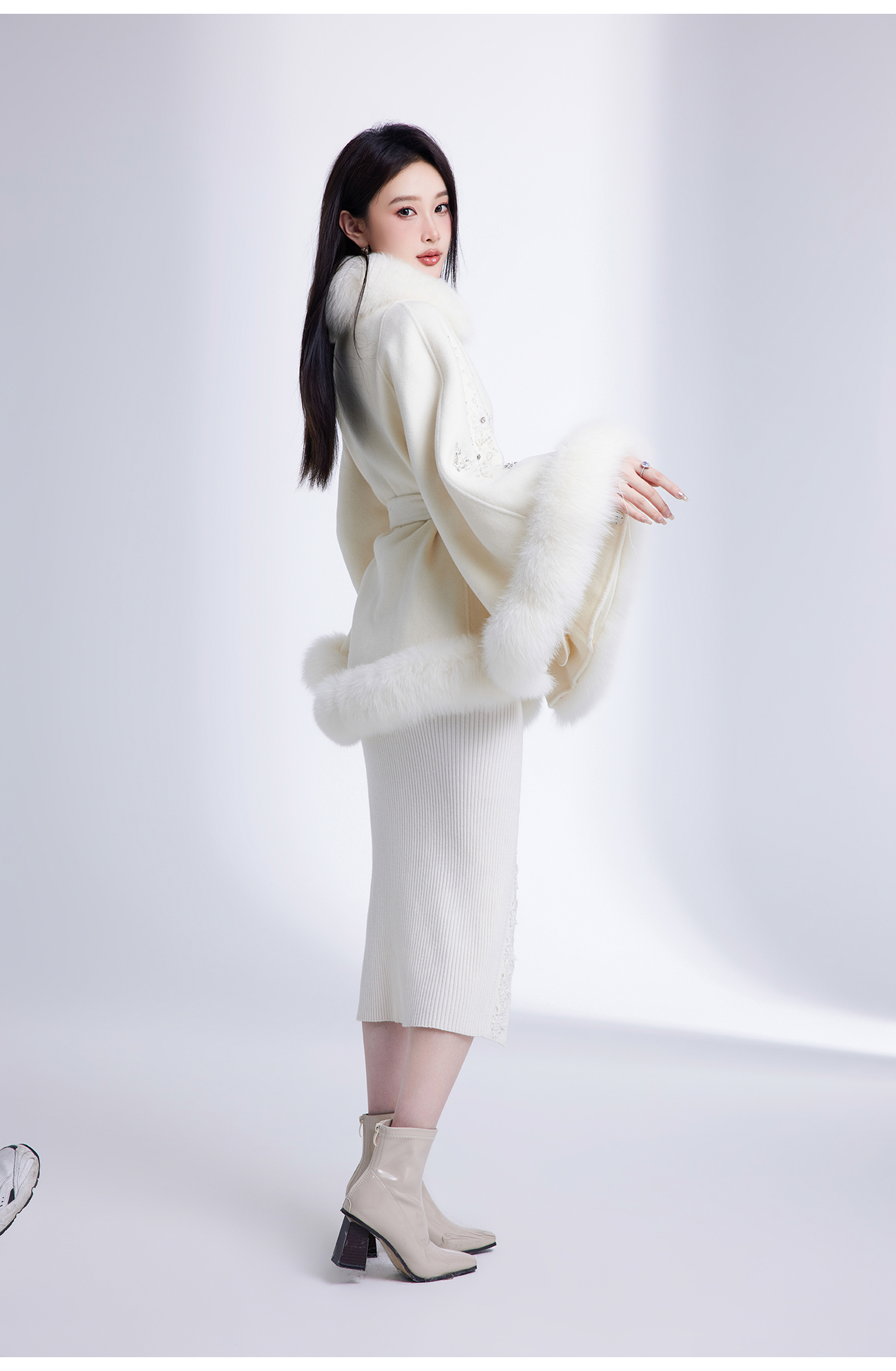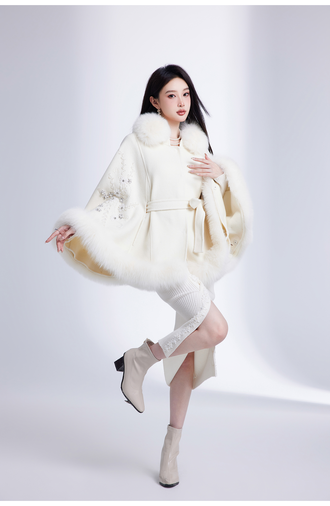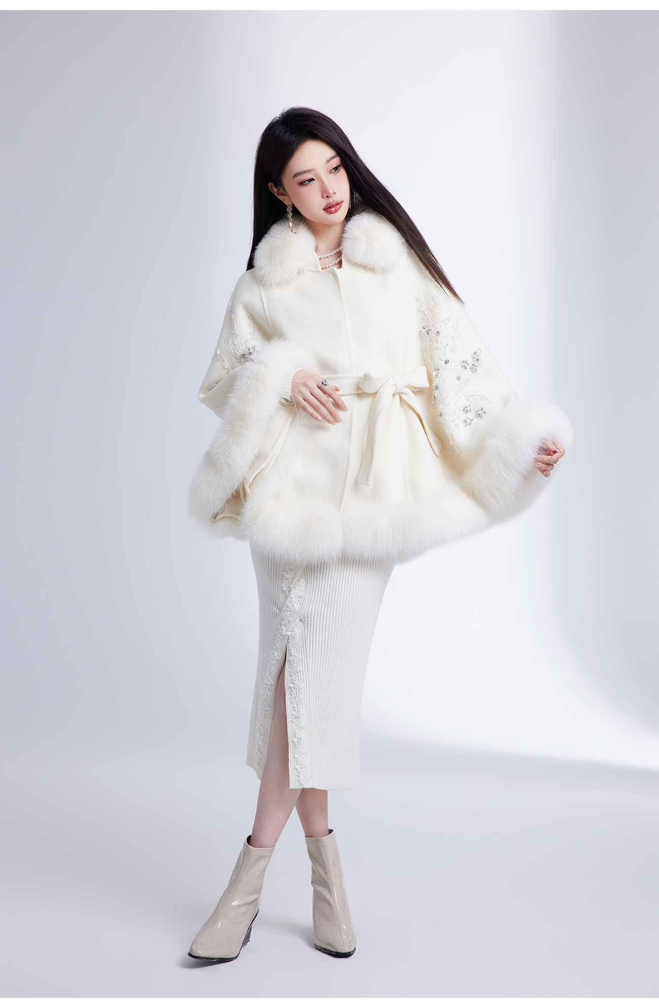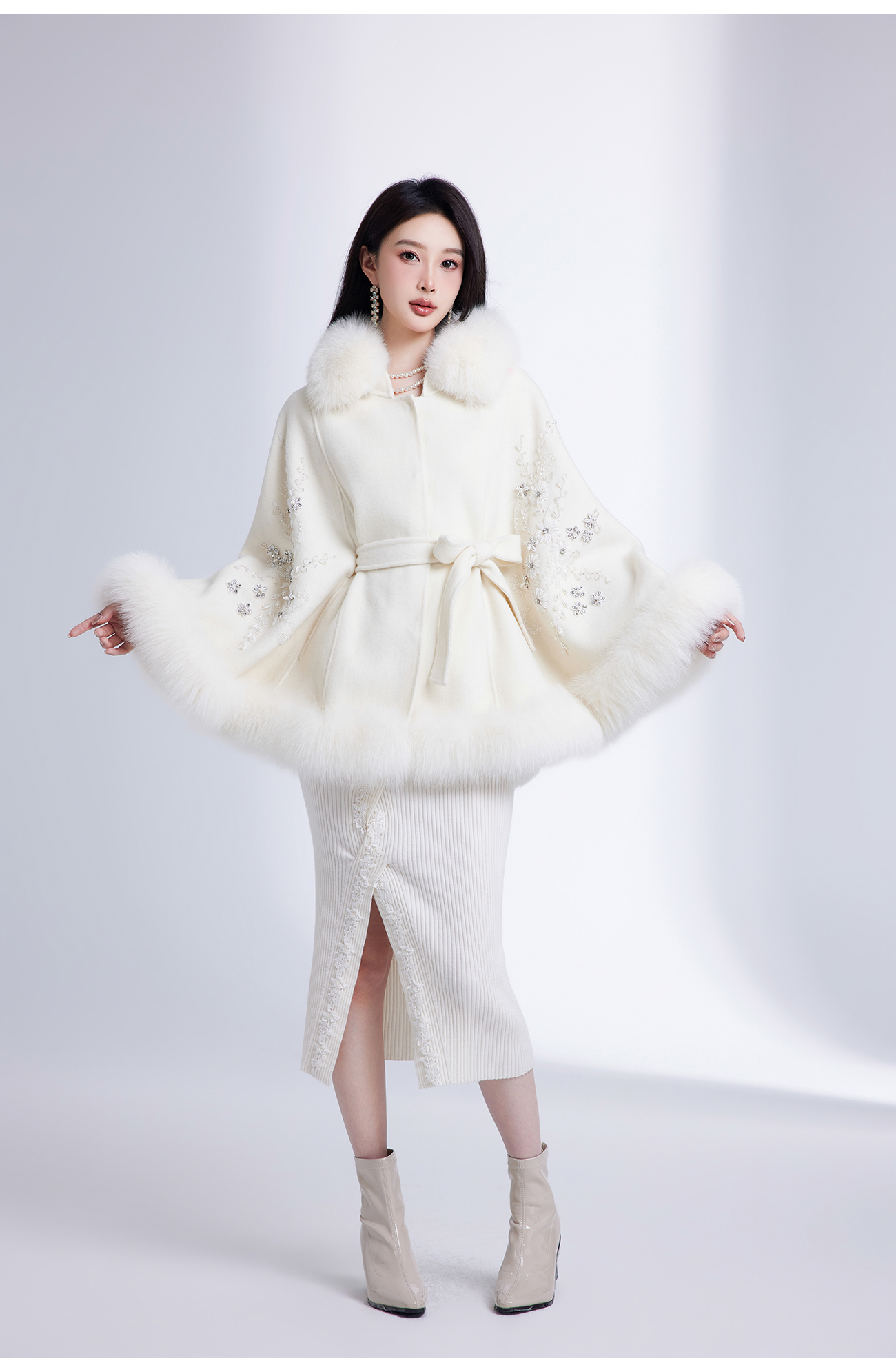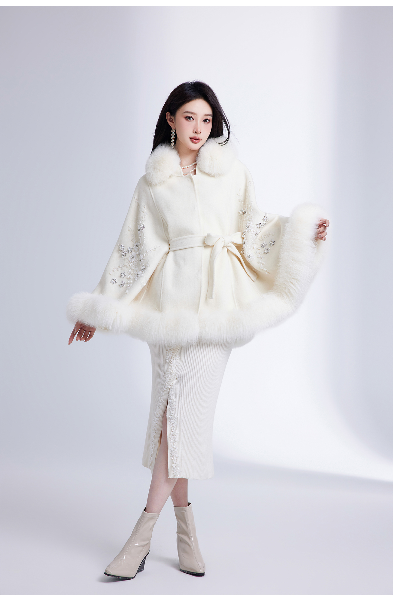 【年终福利,不退不换】【白玉兰】国风花心钉珠宽松毛呢大衣